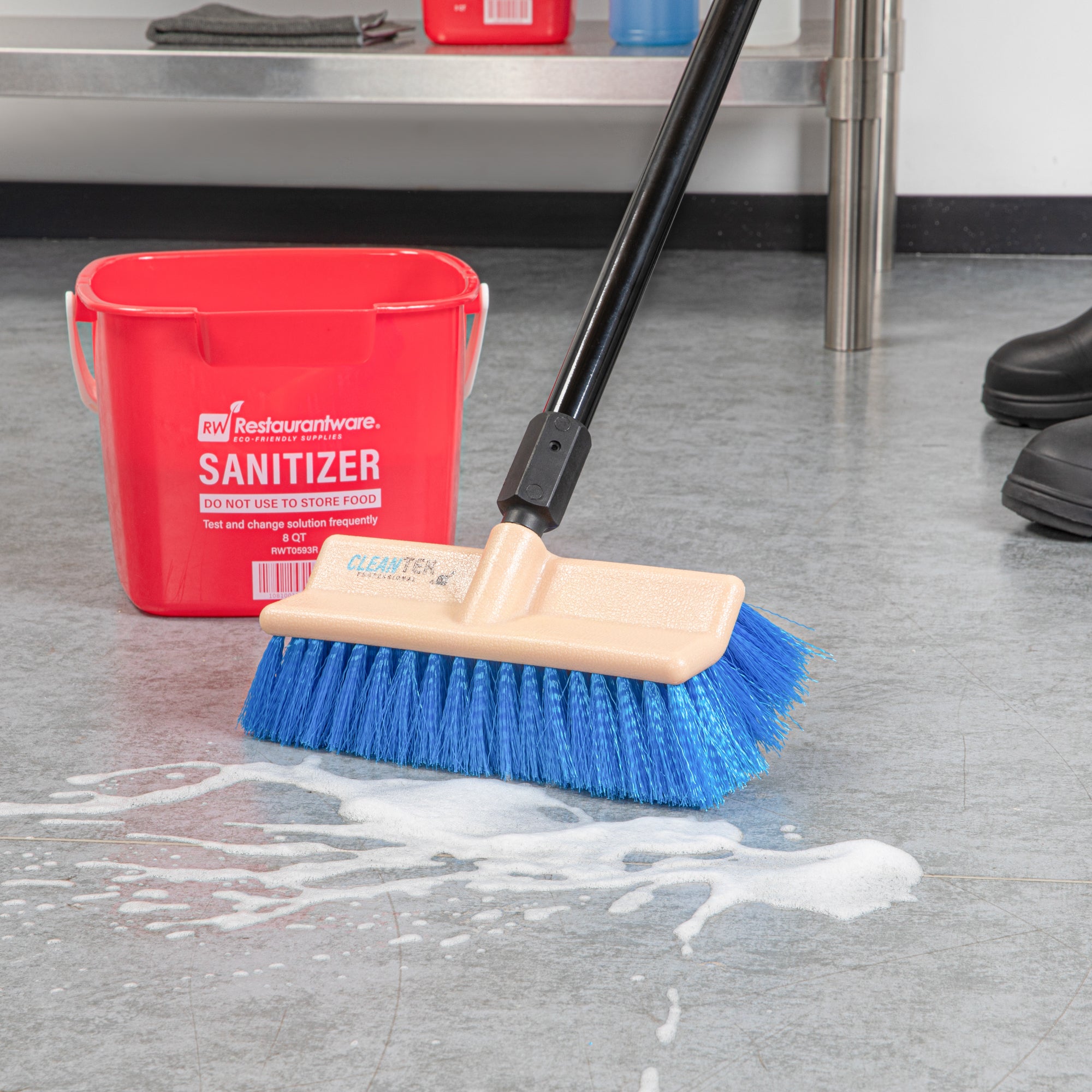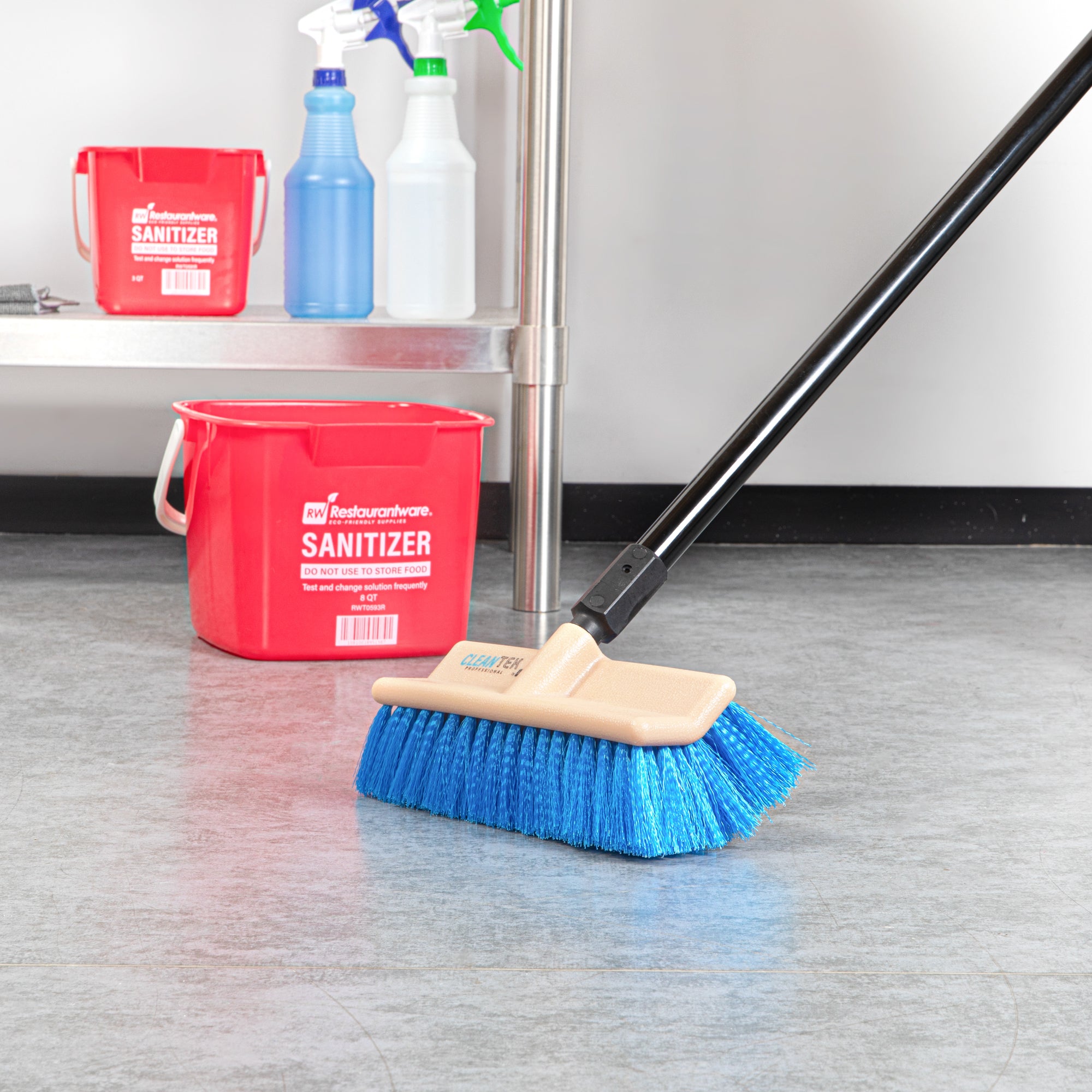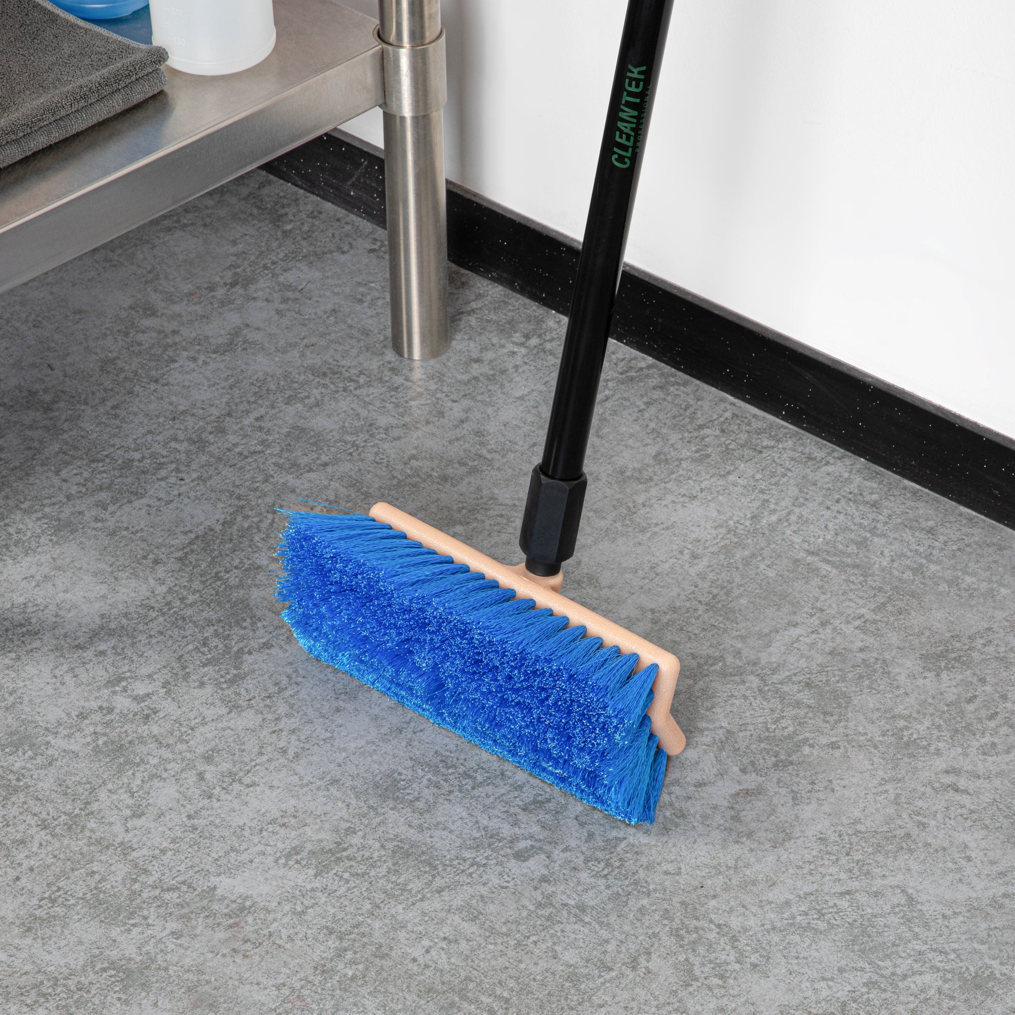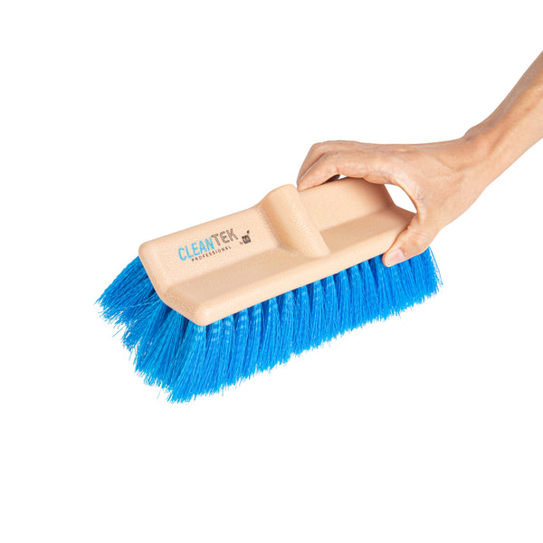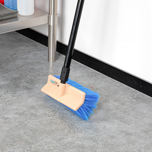 Transform your cleaning routine with our Clean Tek Professional 9 1/2-inch Beige Bi-Level Floor Scrub Brush Head. Designed with a bi-level structure, this floor brush effectively cleans both flat surfaces and uneven flooring or tile. Pair this floor scrub brush with its compatible handle (SKU: RWT1877B) for robust cleaning performance. The durable plastic block of this floor cleaning brush is resistant to splitting or delaminating, ensuring long-lasting use. Equipped with sturdy bristles, this brush head scrubs away persistent messes and stains without scratching or damaging your floors. Measuring 9.45 inches in length by 5.51 inches in width by 4.53 inches in height, this tile floor scrubber is designed for optimal coverage and efficiency. Sold in a 1 count box. Handle is available and sold separately.