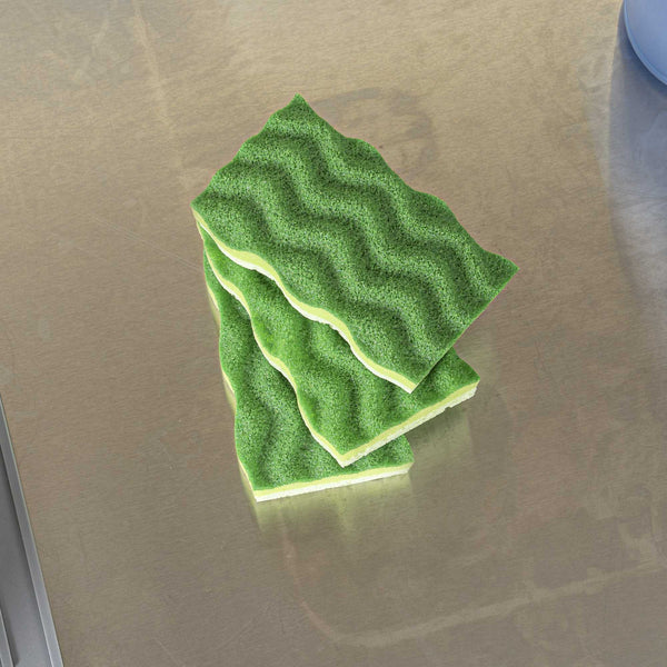 ALL-PURPOSE LIGHT AND DARK GREEN CELLULOSE SCOURING SPONGE - GROOVED