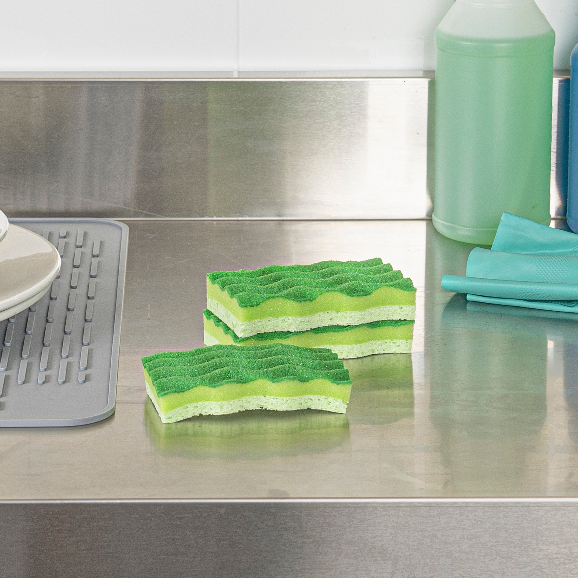 ALL-PURPOSE LIGHT AND DARK GREEN CELLULOSE SCOURING SPONGE - GROOVED