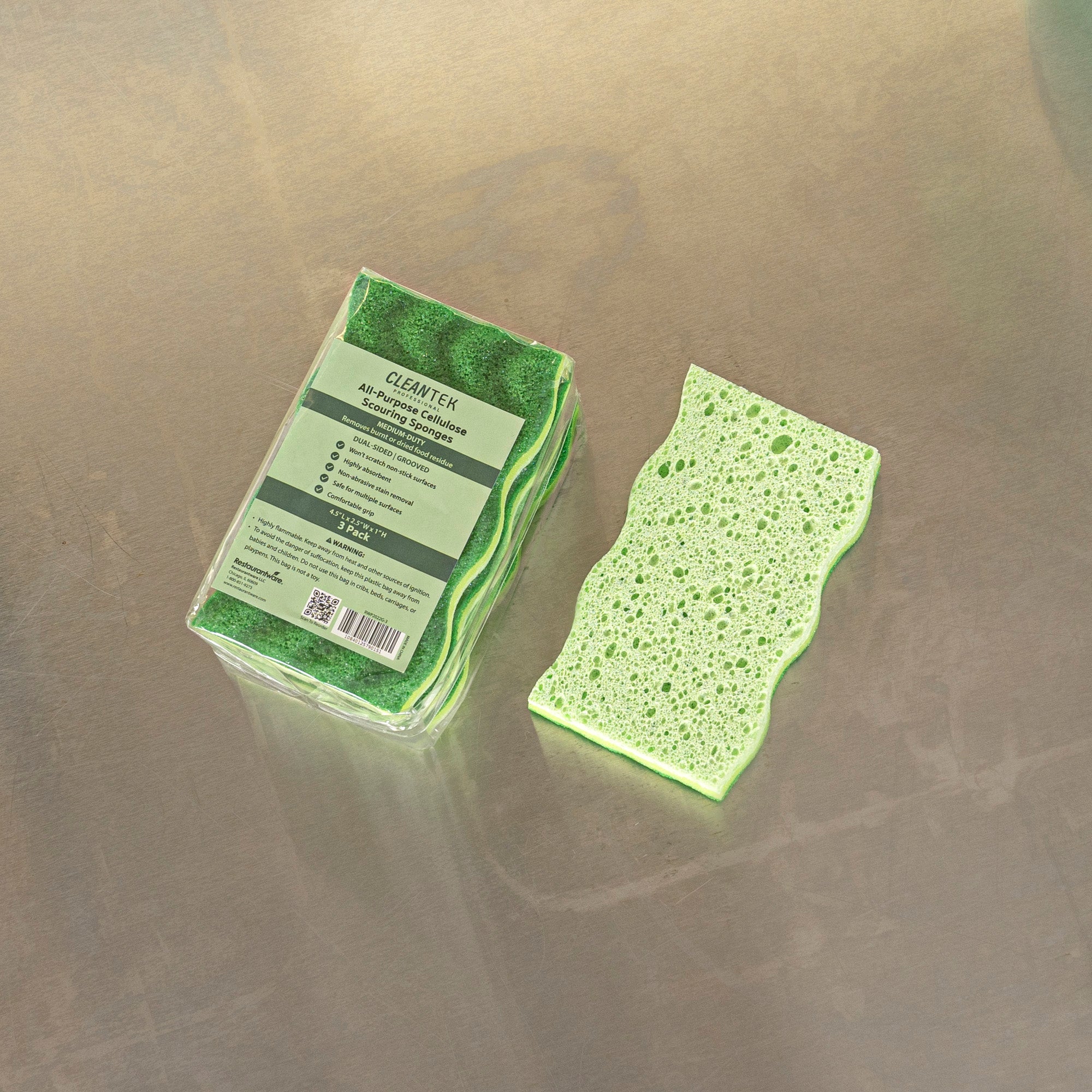 Efficiently tackle tough cleaning tasks with our Clean Tek Professional Non-Abrasive Cleaning Sponge. Engineered to protect cookware in busy kitchens, this cellulose sponge will not scratch non-stick surfaces, ensuring your cookware remains pristine. Designed with deep grooves, this kitchen sponge maintains constant contact with scrubbing surfaces, efficiently removing all debris from pots, pans, and countertops. Made of cellulose, this sponge supports foodservice operations, perfect for establishments committed to sustainability. Measuring 4.53 inches in length, 2.56 inches in width, and 0.91 inches in height, its compact design allows for easy handling and storage in any kitchen setting. Enhance your cleaning routine while minimizing ecological impact with this versatile cleaning sponge. Each order includes 60 Clean Tek Professional Non-Abrasive Cleaning Sponges.