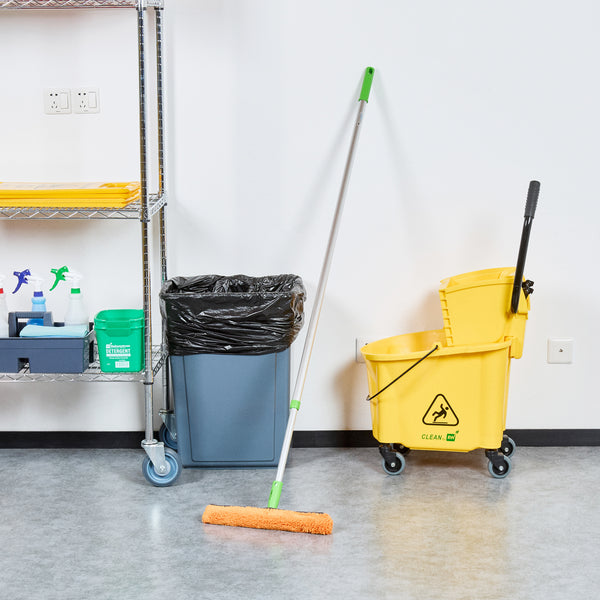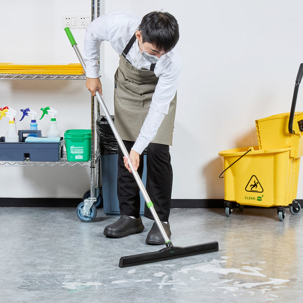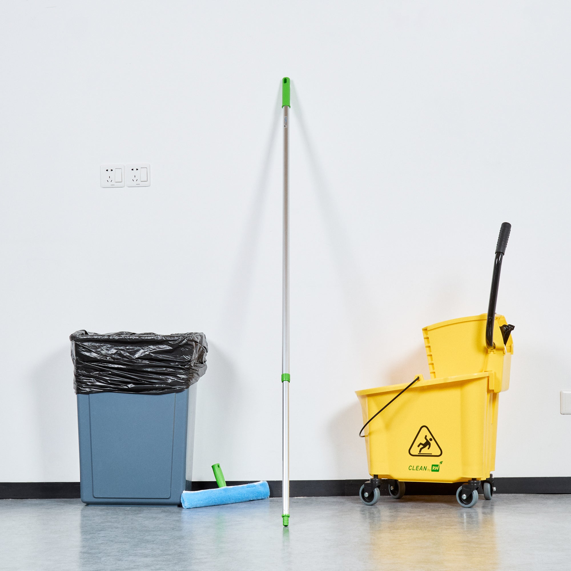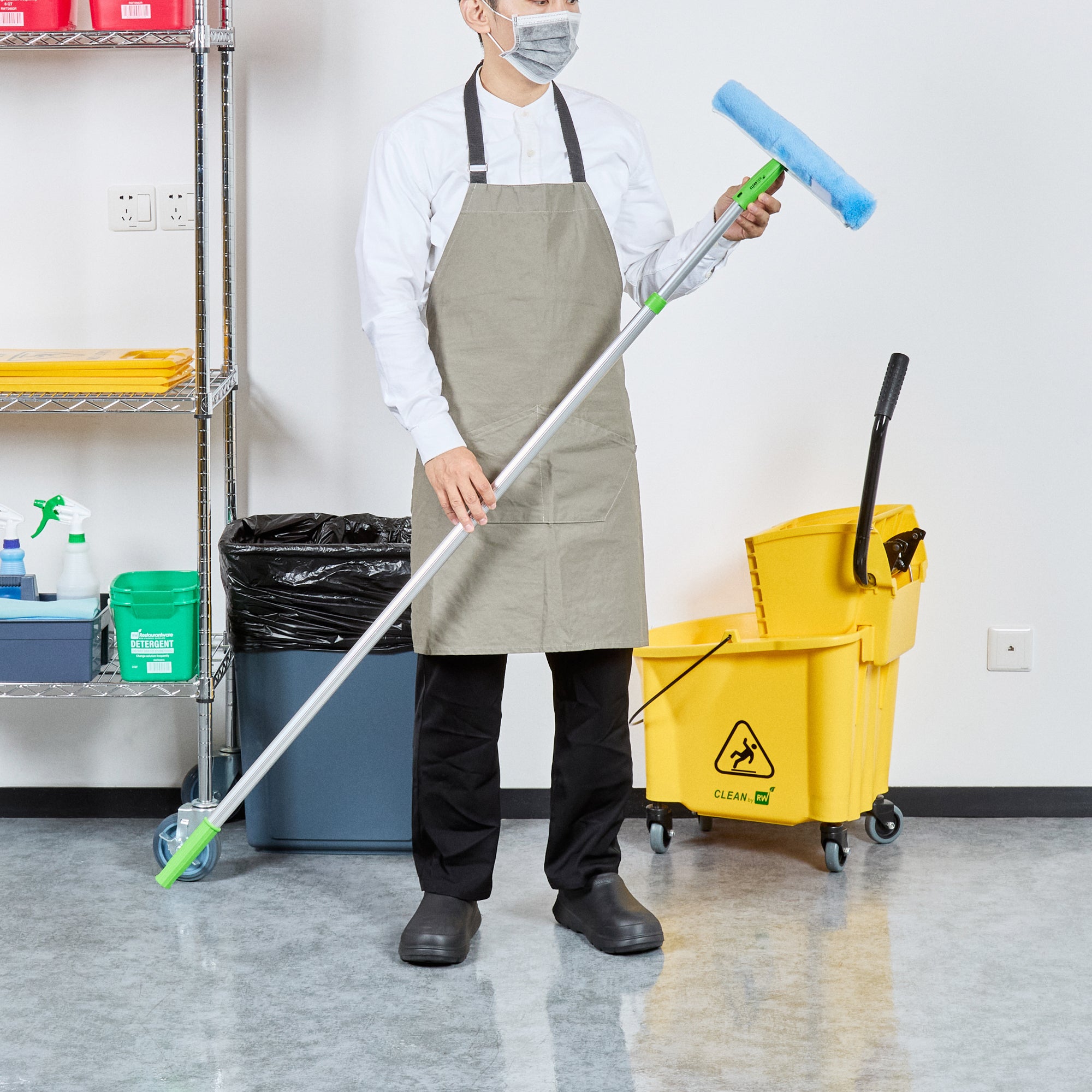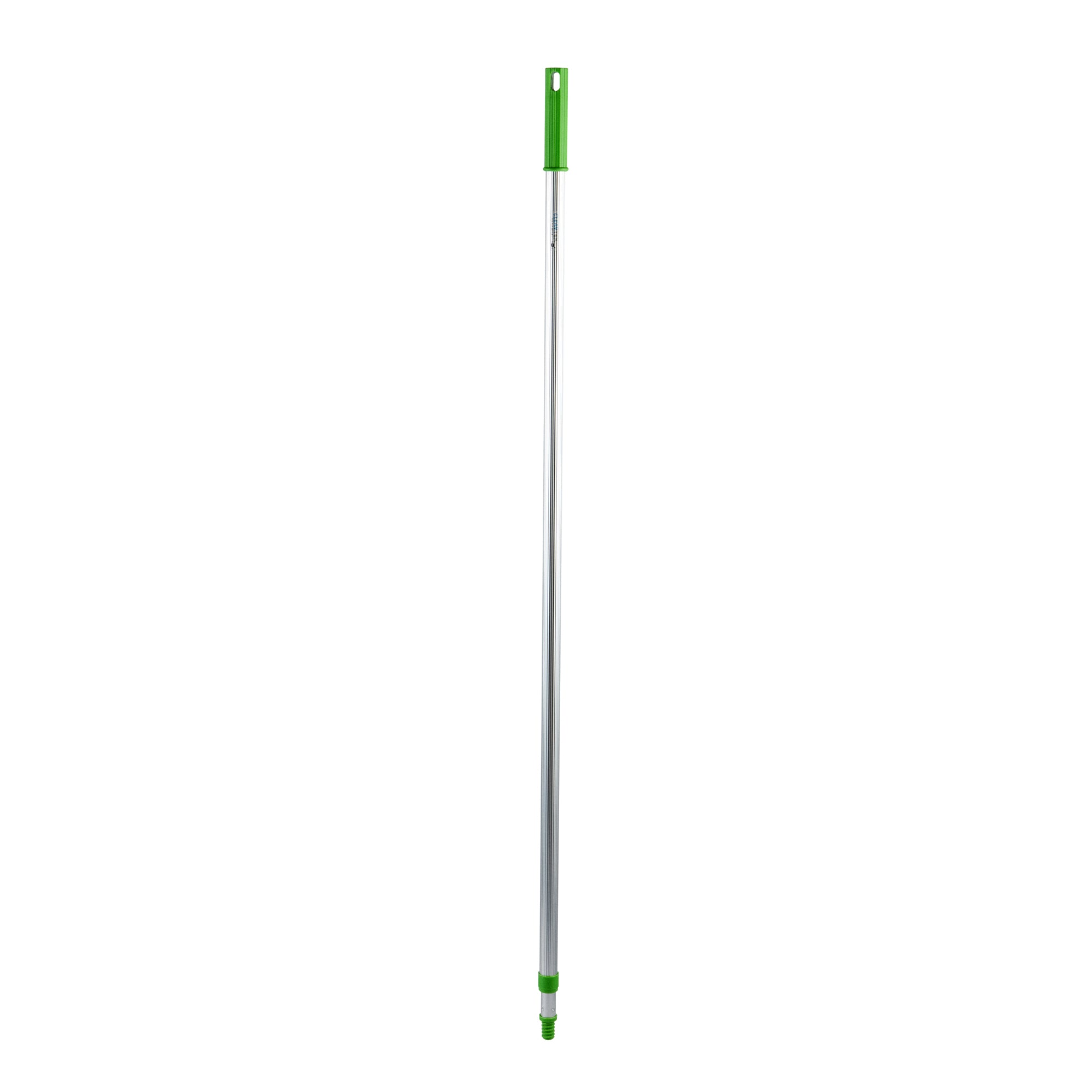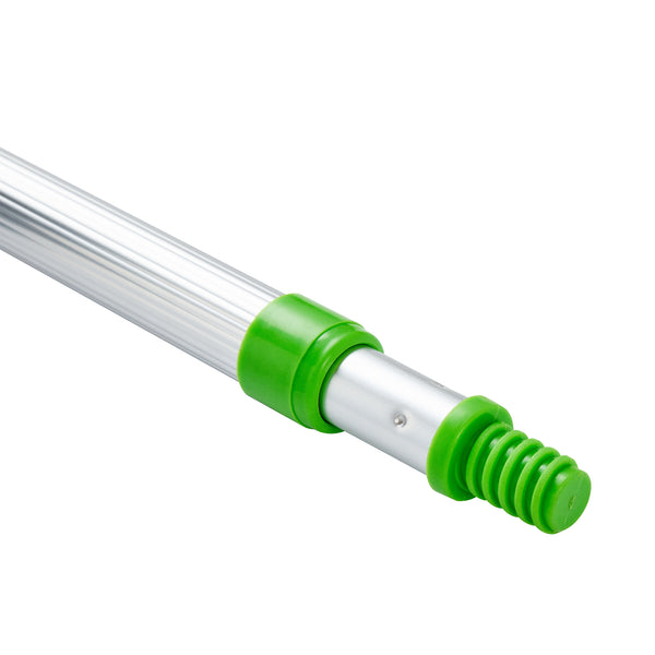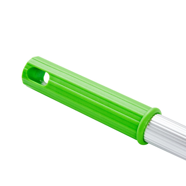 Streamline your cleaning process with our Clean Tek Professional Aluminum 2-Section Telescopic Handle. This long handle is designed to be used with our collection of compatible floor squeegees and window strip washers, providing versatility and ease for various cleaning tasks. The telescoping design of this squeegee handle extends from 48" to 96", making it easy to clean hard-to-reach floors or tall windows. Crafted from heavy-duty aluminum, this telescopic handle ensures long-lasting use in your busy establishment. Featuring an ergonomic design, this aluminum handle offers a comfortable grip, reducing strain during prolonged cleaning sessions. The integrated hanging hole on this handle for squeegee provides convenient storage and easy access, keeping it organized and within reach. Measuring 51.18 inches in length, this green aluminum handle perfectly suits the needs of any foodservice business. Sold in a 1 count box. Squeegee and window strip washers are available and sold separately.