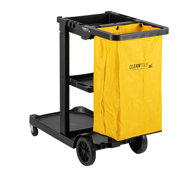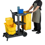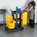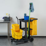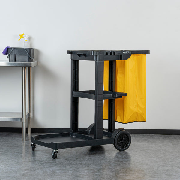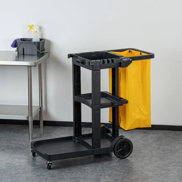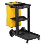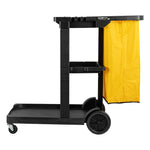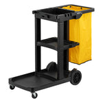 BLACK 3-SHELF JANITOR CART - 18 GAL BAG