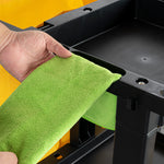 This 3-shelf janitor cart comes with a detachable, durable plastic bag that simplifies waste collection and disposal. Its rugged design ensures it can handle heavy loads, making cleanup efficient.