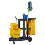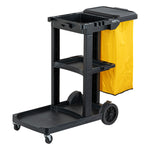 BLACK 3-SHELF JANITOR CART - 18 GAL BAG, LID
