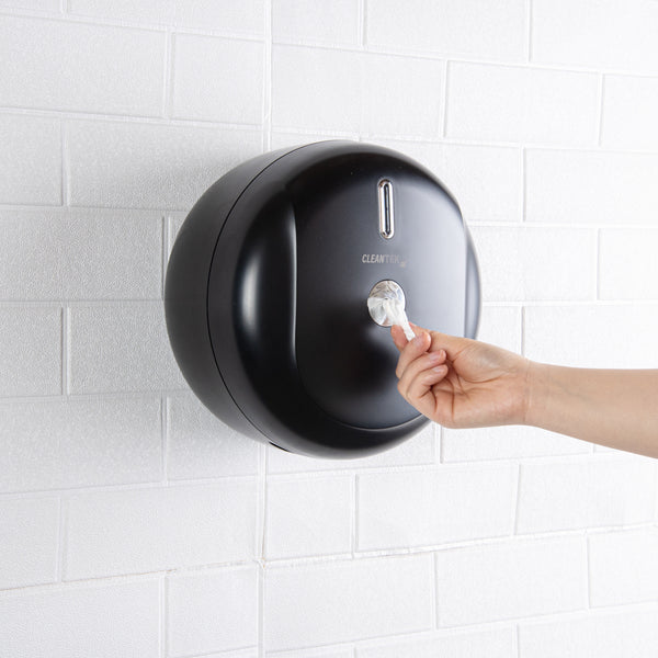 These toilet paper dispensers are available in either black or white colors to complement any washroom setting. Perfect for high-traffic restrooms or toilets.