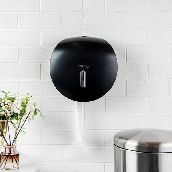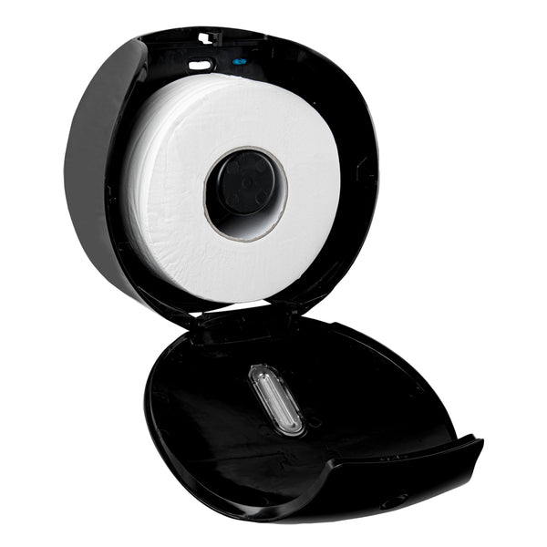 These toilet paper dispensers are available in either black or white colors to complement any washroom setting. Perfect for high-traffic restrooms or toilets.
