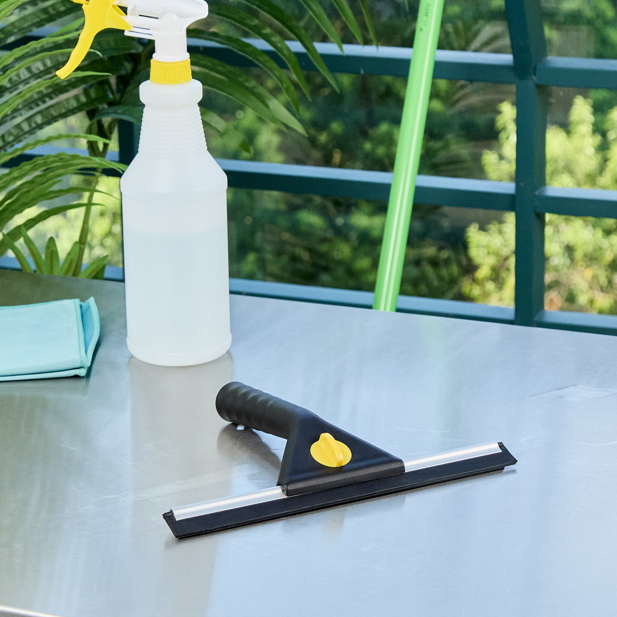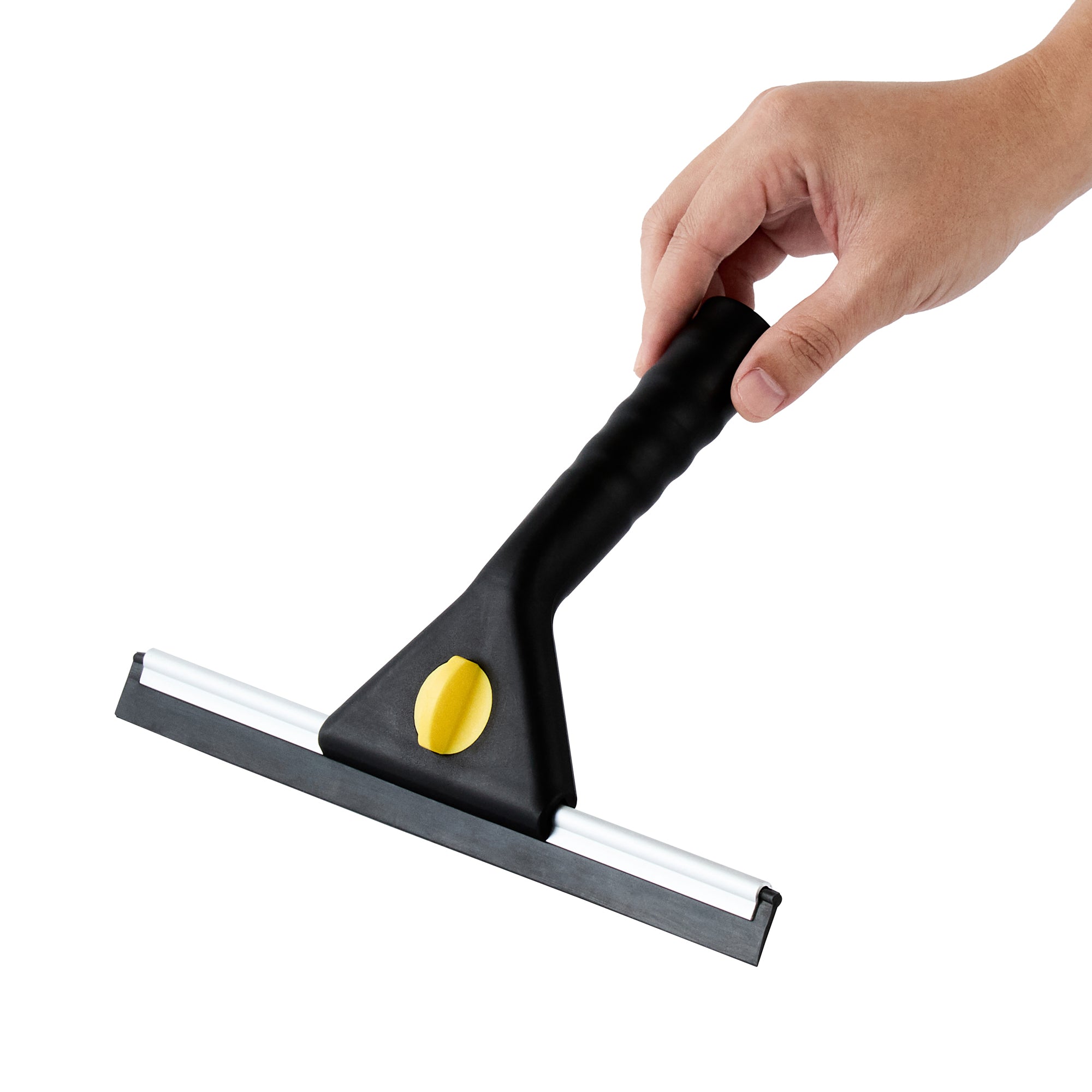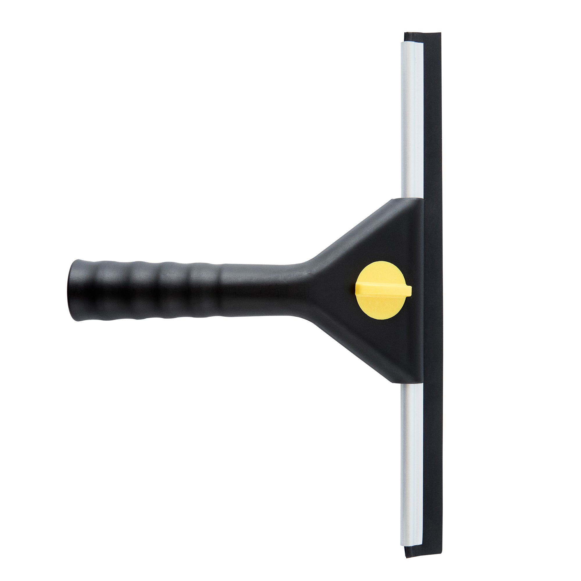 Enhance your cleaning routine with our Clean Tek Professional Black Plastic Window Squeegee. This car squeegee has a rubber blade that provides a smooth, streak-free cleaning experience, effectively removing water and residue from glass surfaces. Featuring an aluminum frame, this commercial squeegee offers durability, ensuring long-lasting performance and a sleek, modern look. The ergonomic handle of this window squeegee is designed for a comfortable grip and reduced strain during extended use, enhancing overall efficiency and ease of operation. This window washing squeegee is ideal for washing windows in both residential and commercial settings, ensuring a pristine finish. Measuring 9.84 inches in length by 5.91 inches in width by 1.18 inches in height, this windshield squeegee is compact yet powerful. Sold in a 1 count box.