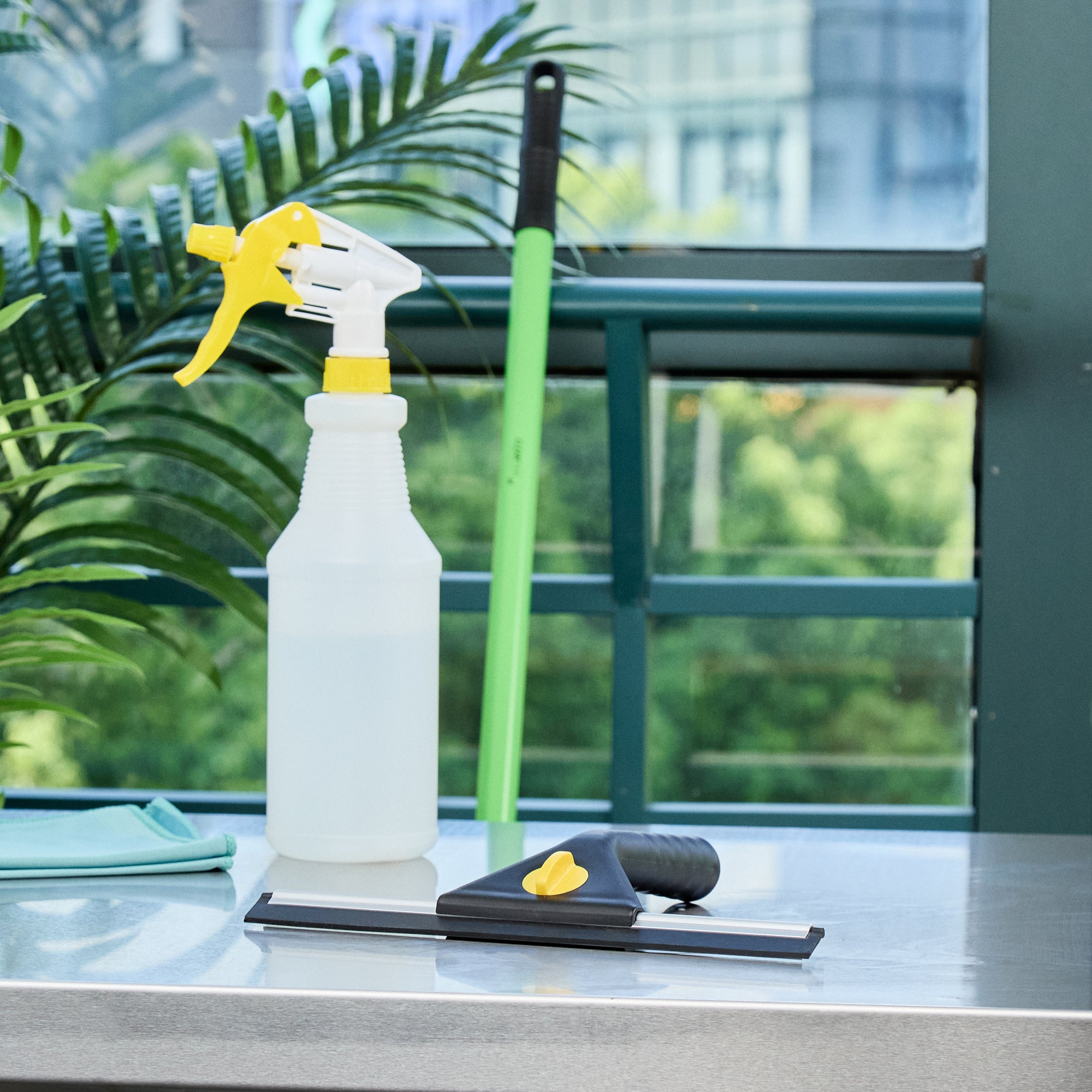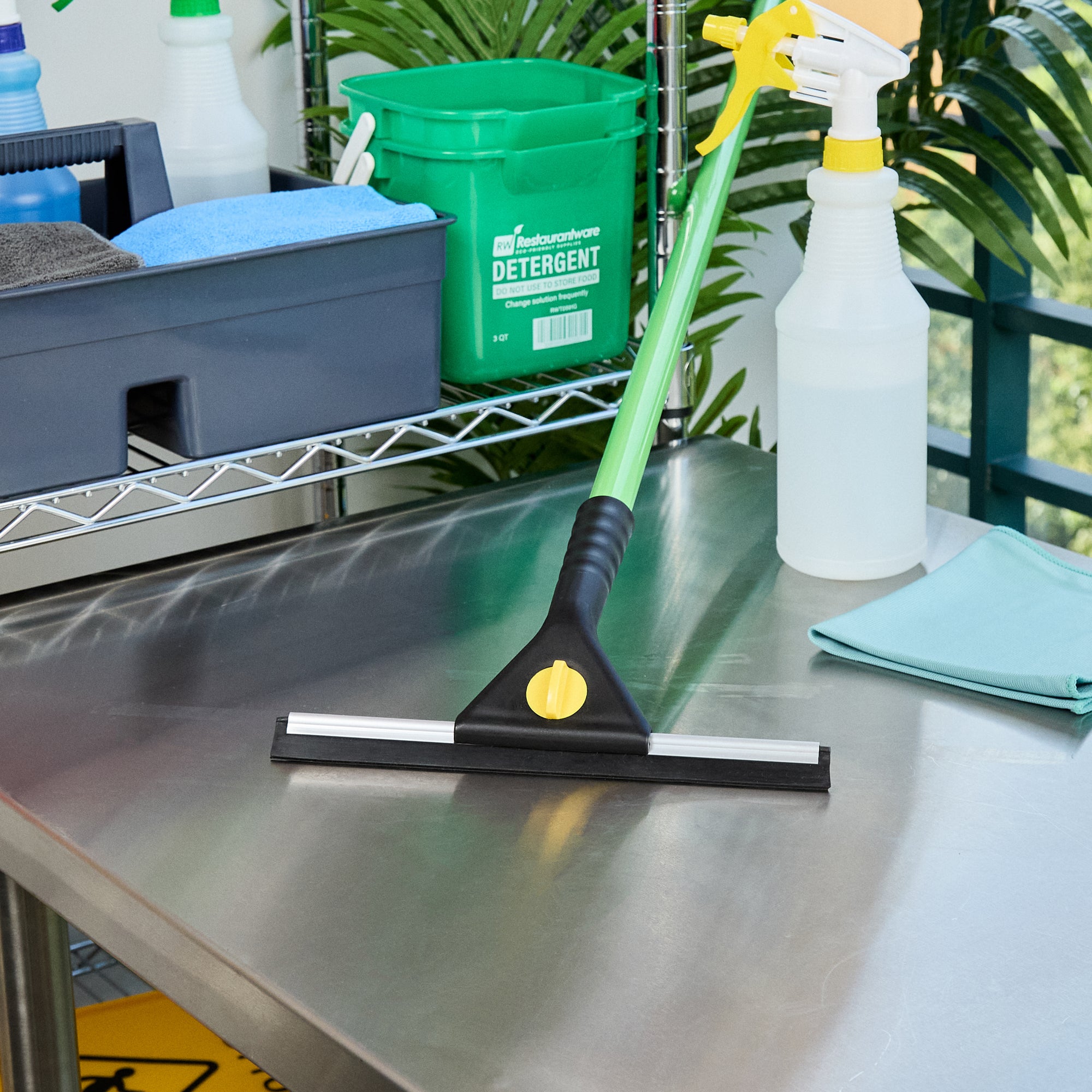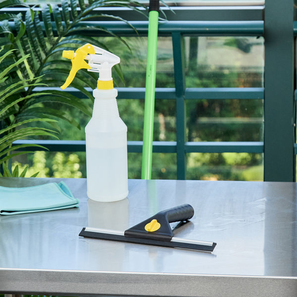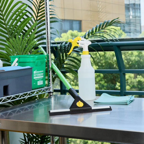Enhance your cleaning routine with our Clean Tek Professional Black Plastic Window Squeegee. This car squeegee has a rubber blade that provides a smooth, streak-free cleaning experience, effectively removing water and residue from glass surfaces. Featuring an aluminum frame, this commercial squeegee offers durability, ensuring long-lasting performance and a sleek, modern look. The ergonomic handle of this window squeegee is designed for a comfortable grip and reduced strain during extended use, enhancing overall efficiency and ease of operation. This window washing squeegee is ideal for washing windows in both residential and commercial settings, ensuring a pristine finish. Measuring 9.84 inches in length by 5.91 inches in width by 1.18 inches in height, this windshield squeegee is compact yet powerful. Sold in a 1 count box.