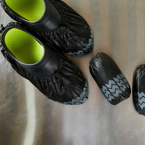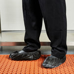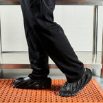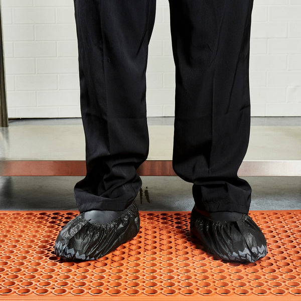 Maintain spotless floors with our Clean Tek Professional Black Shoe Covers. These professional shoe covers prevent outside debris from being brought in and spread on your floors. Equipped with non-skid soles, these high-quality shoe covers prevent dangerous slips and falls to maintain a safe work environment. Designed with an elastic band, these protective shoe covers securely fit up to size 12 shoes to provide a comfortable walk during busy shift hours. These work boot covers prevent footprints while mopping to make it easier to maintain the quality of your floors. The black finish of these premium shoe booties provides a sleek look that seamlessly complements your establishment's uniform. These disposable shoe covers can help streamline and shorten the time it takes to clean floors at your food manufacturing company. When stretched out, these safety shoe covers measure 15.5 inches long and fit up to size 12 shoes. Sold in a 100 count box.