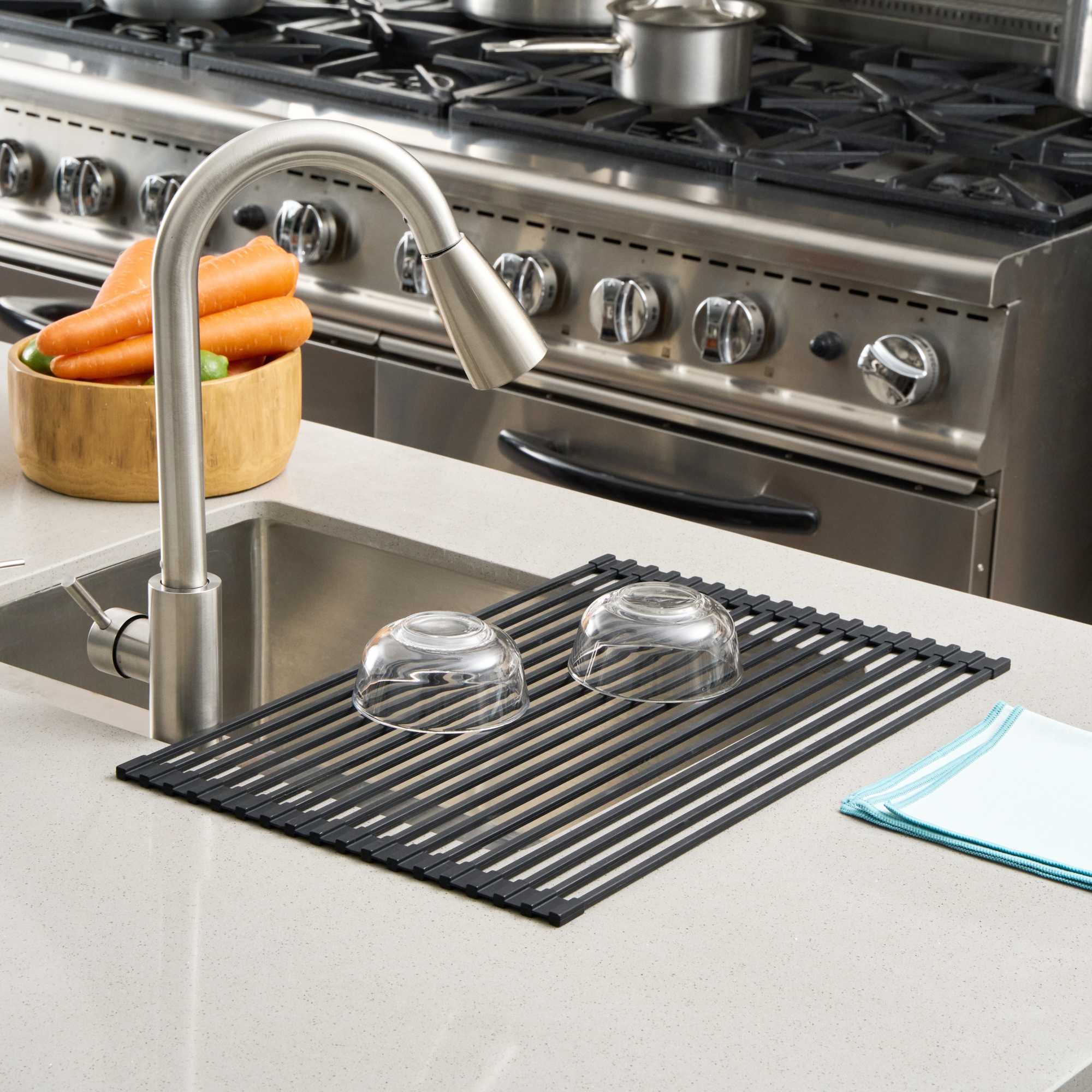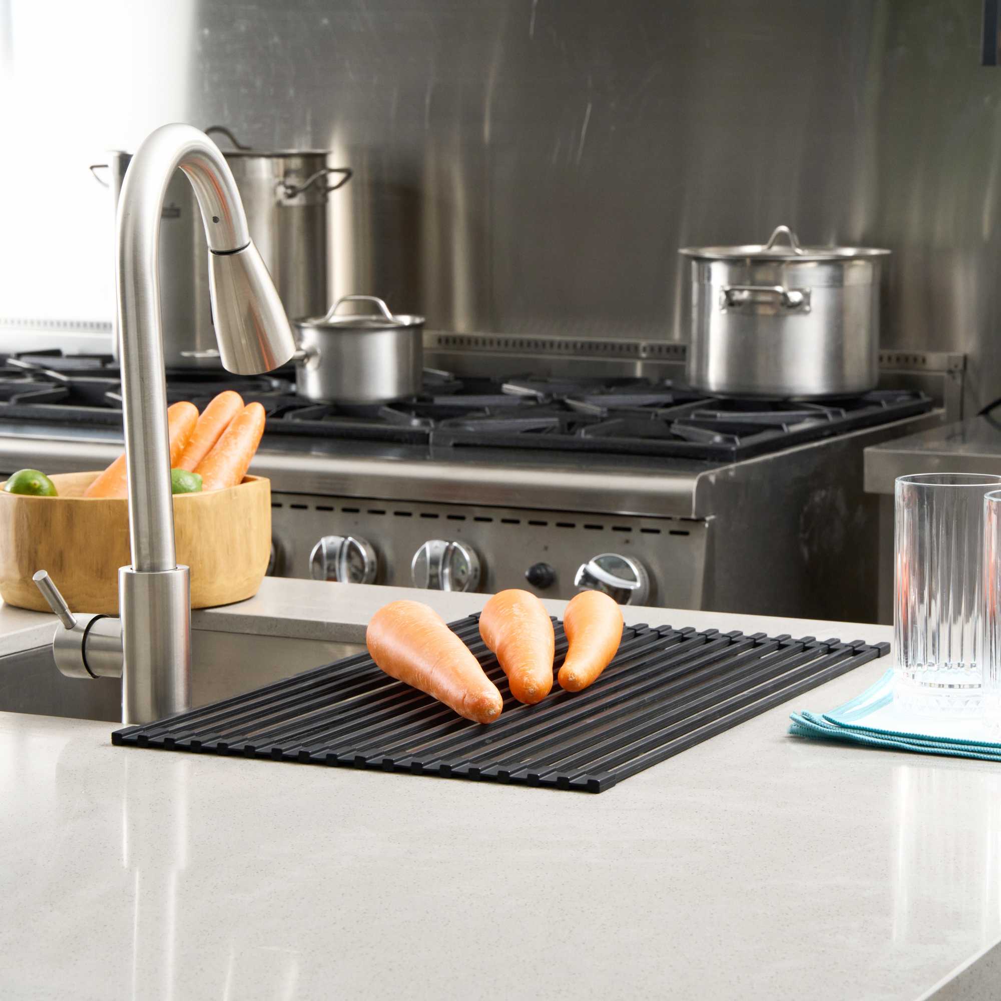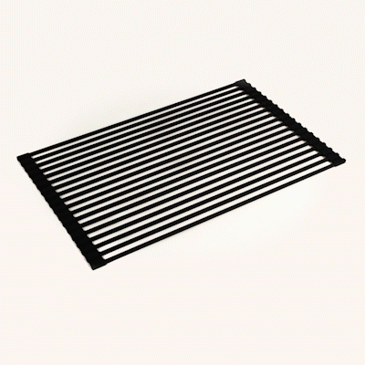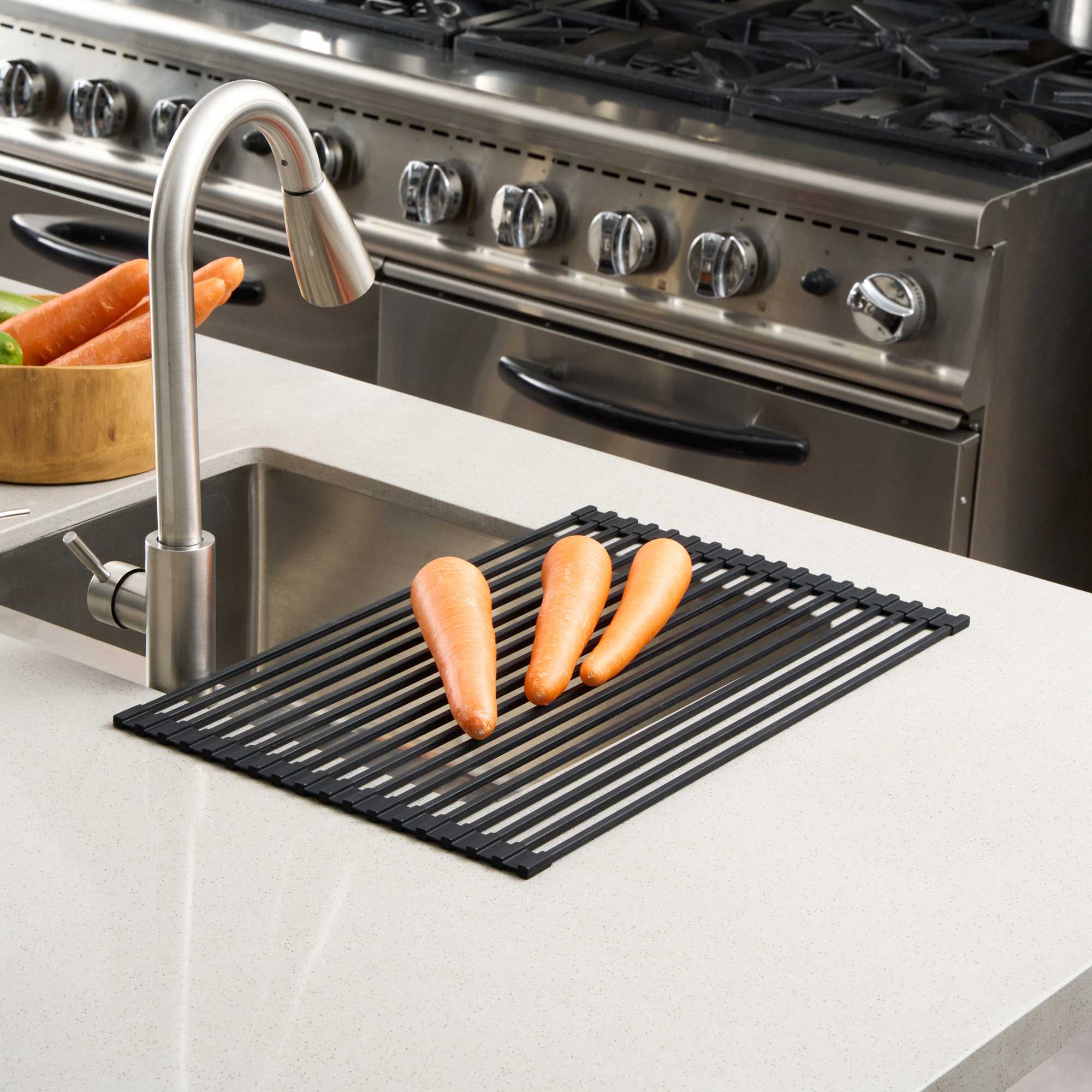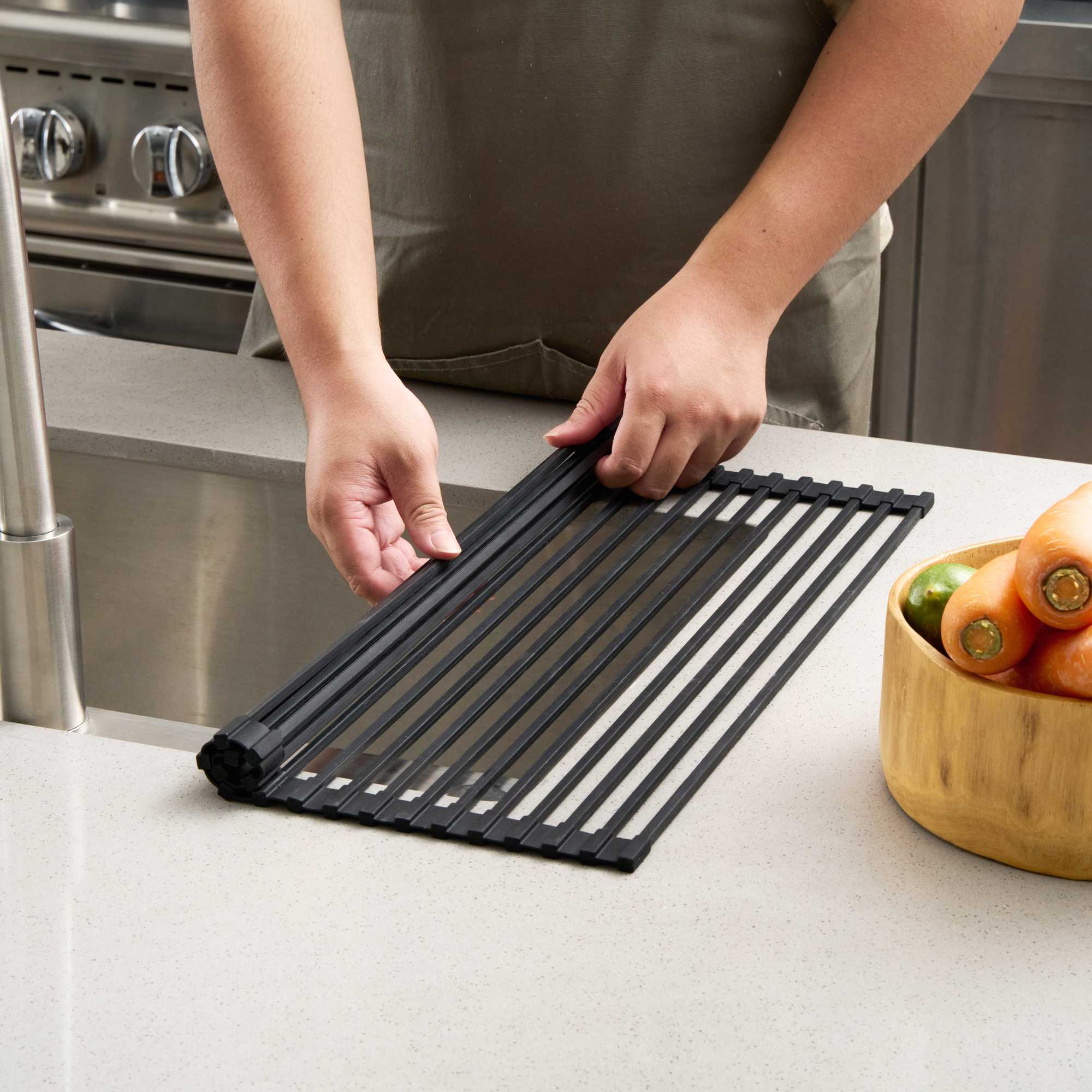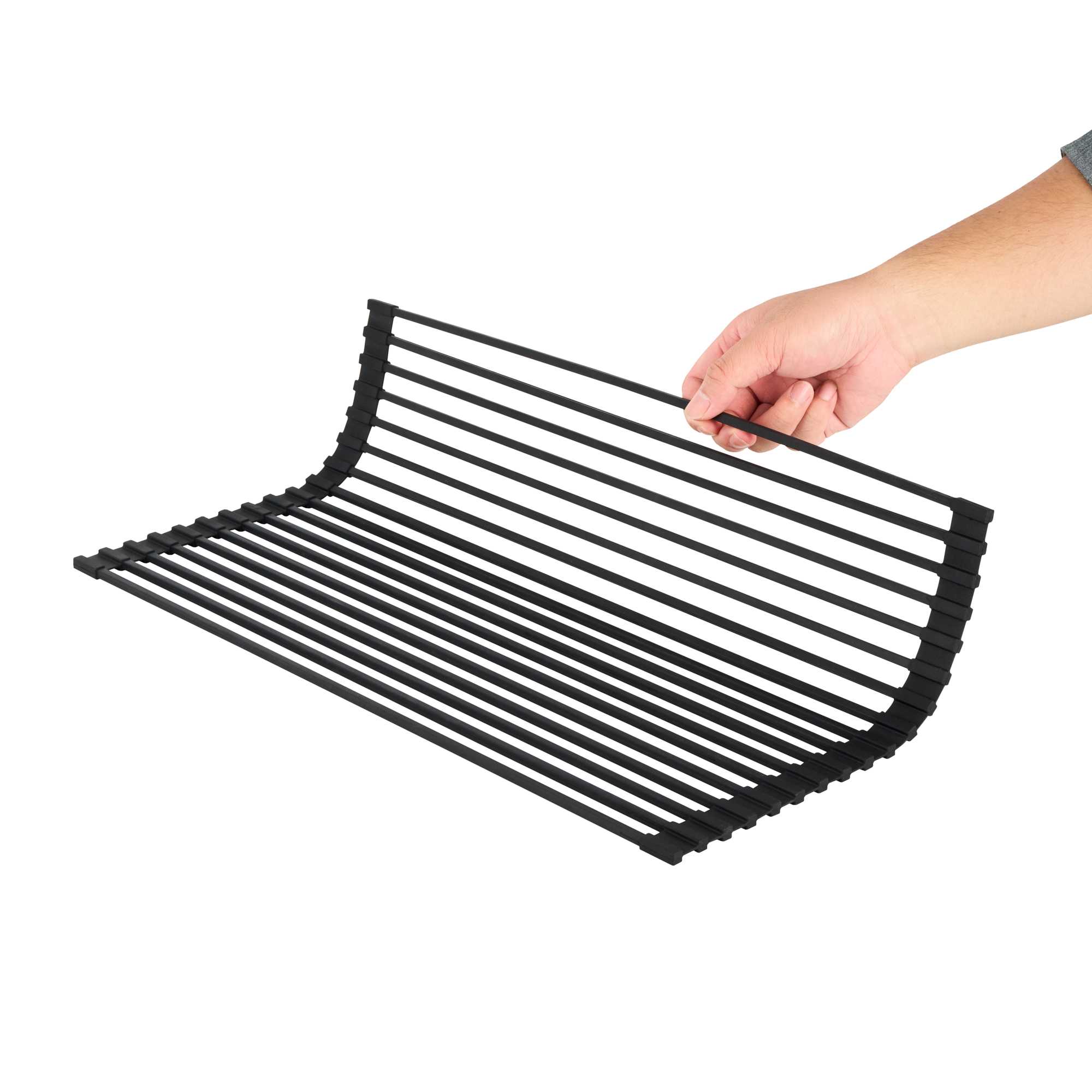 PROFESSIONAL BLACK STEEL OVER-SINK ROLL-UP DRYING RACK - NON-SLIP