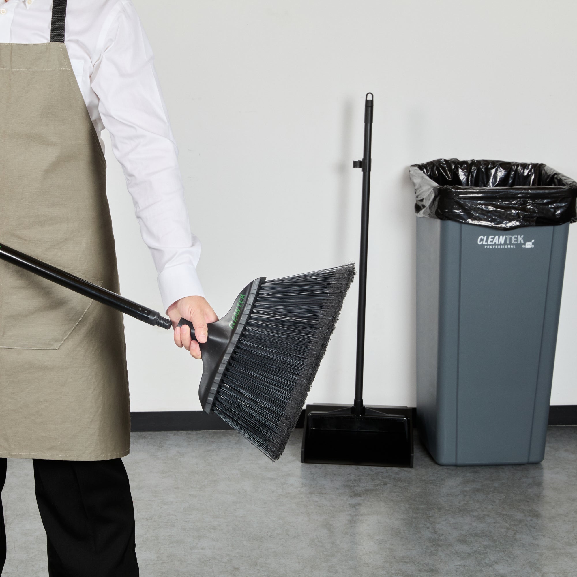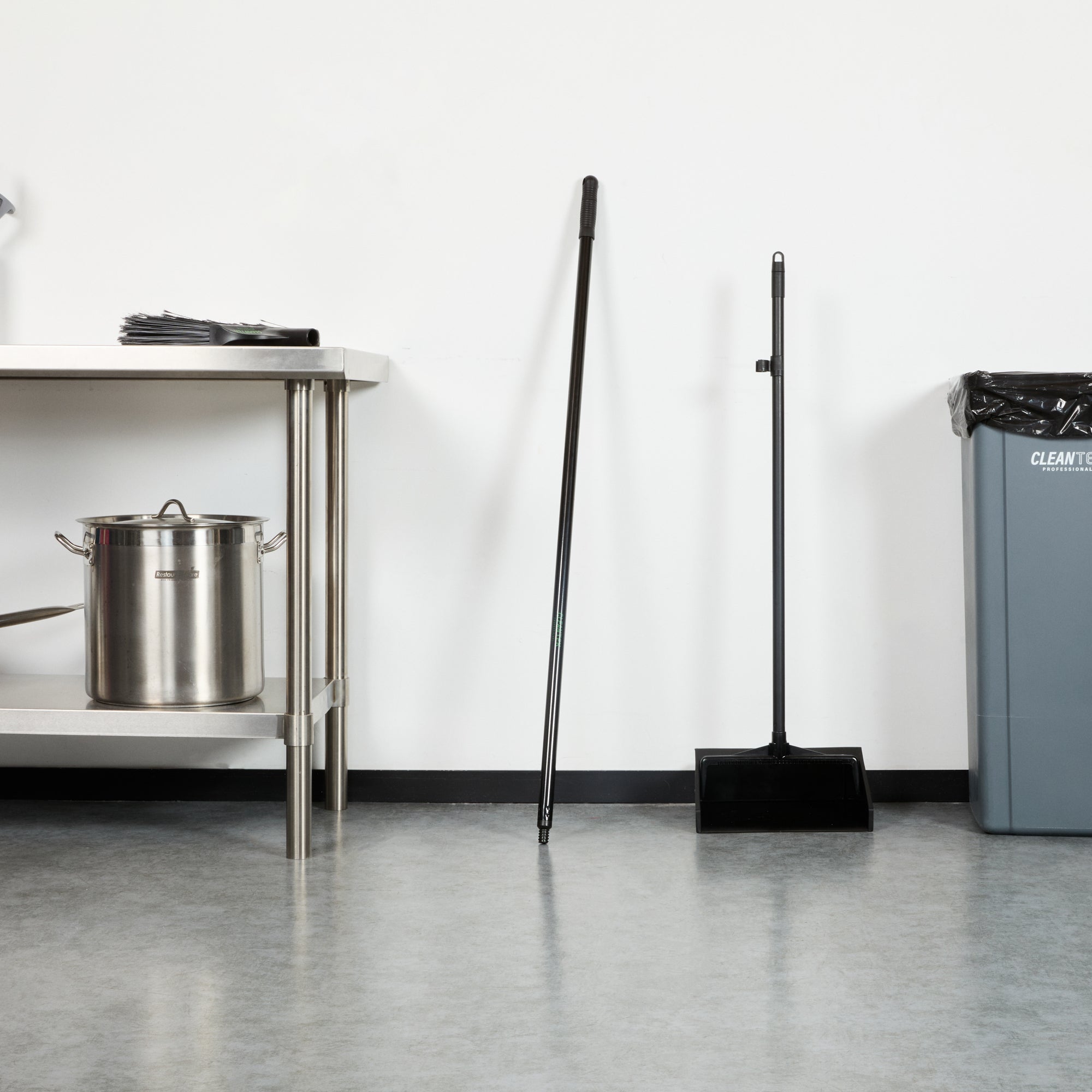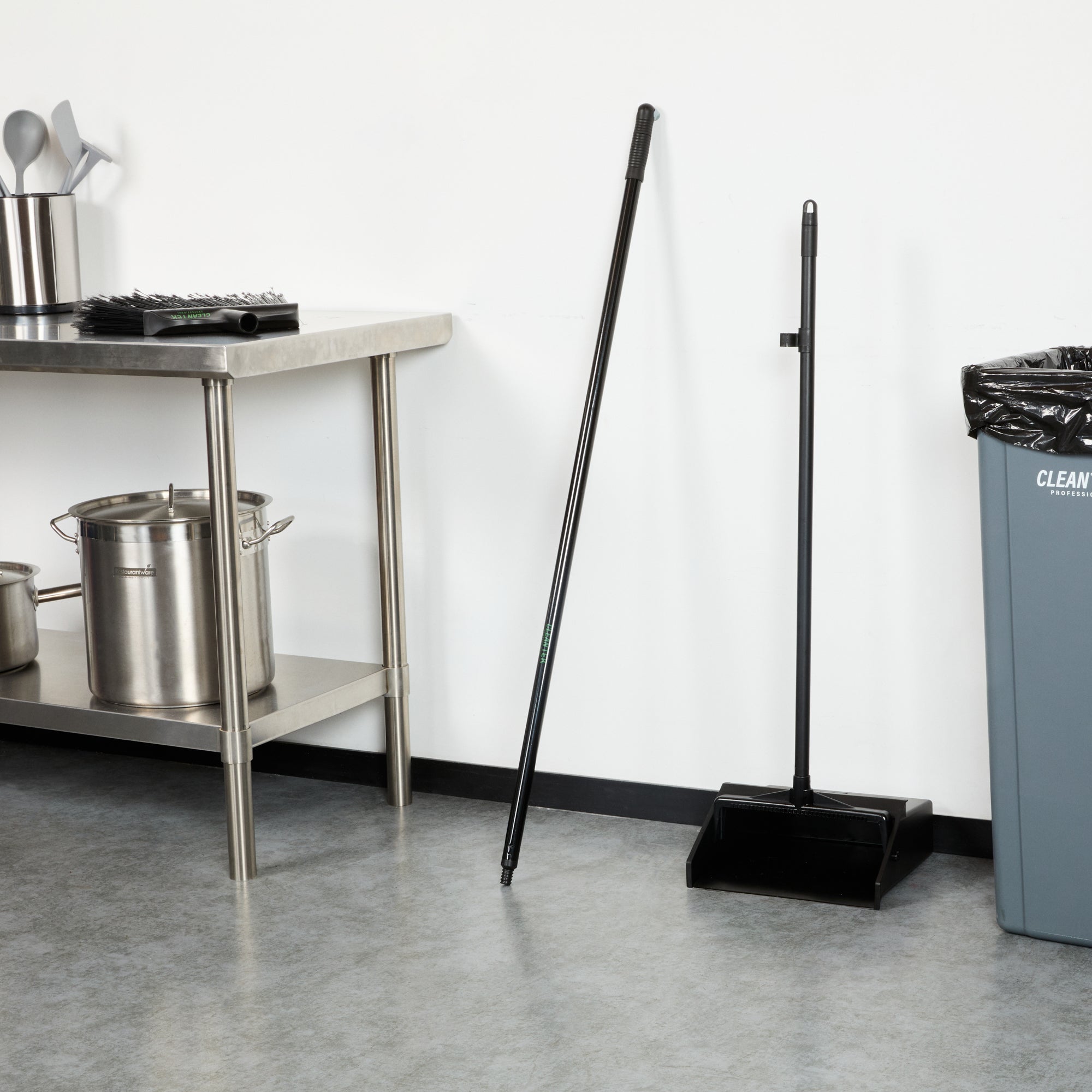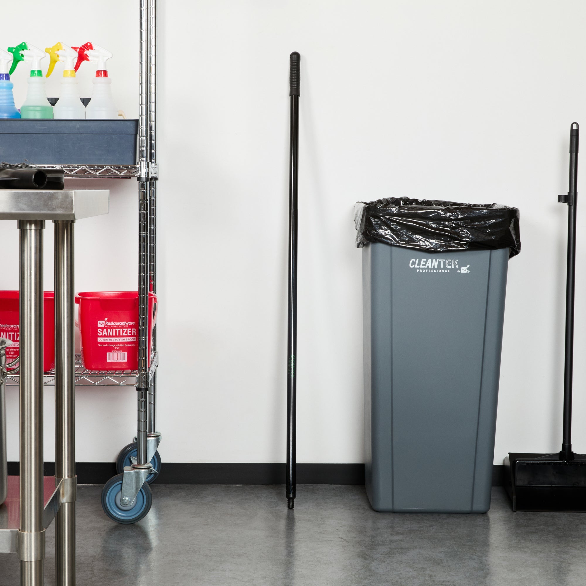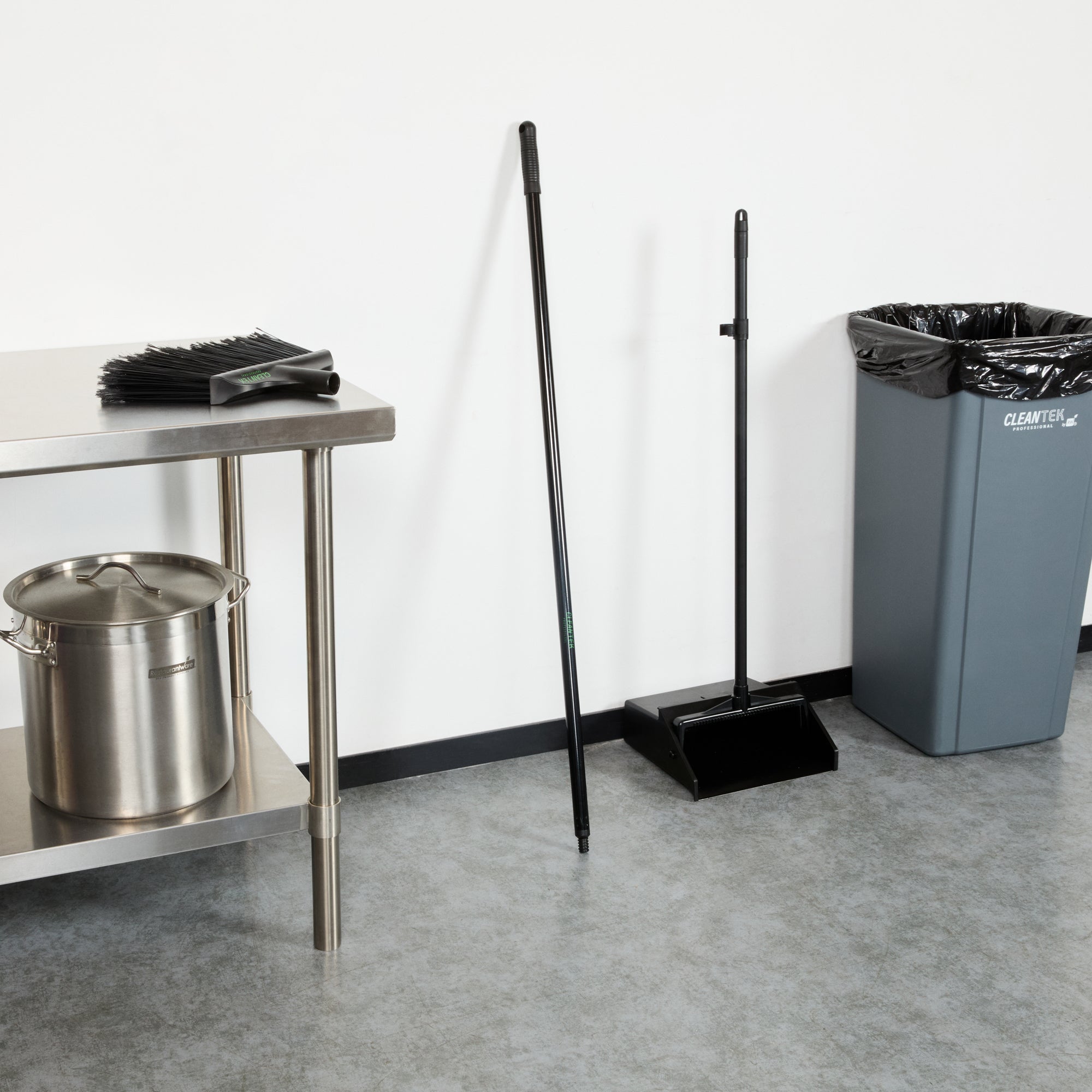 Elevate your cleaning standards with our Clean Tek Professional Black Steel Wide Angled Broom Handle. Featuring a universal threaded tip, this broom handle ensures easy installation of a compatible broom head (SKU: RWT1882B), making it ideal for maintaining the highest cleanliness in your business. Crafted from premium steel, this metal handle withstands daily use, offering long-lasting performance. With an ergonomic design, this push broom handle provides a comfortable grip, reducing hand strain for extended use with minimal discomfort. The sleek black finish of this metal broom stick adds a modern look to your cleaning equipment while enhancing durability and tolerance to wear and tear. Measuring 47.24 inches in length, this steel handle offers optimal reach and control, making it easy to clean both low and high areas effortlessly. Sold in a 1 count box. Broom head is available and sold separately.