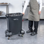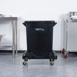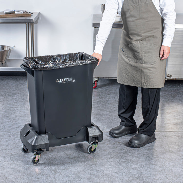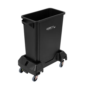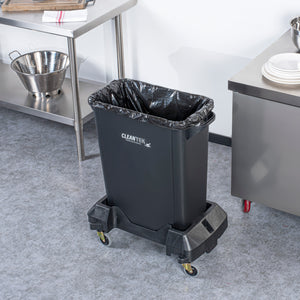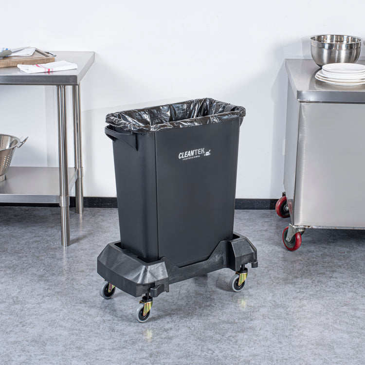 Upgrade your facility's efficiency with our Clean Tek Professional Black Trainable Dolly. This trash can dolly can be paired with our collection of Clean Tek Professional compatible trash cans to provide mobility to your storage bins for easy transportation throughout your facility. Equipped with 4 swivel wheels, this garbage can dolly offers exceptional maneuverability, allowing you to transport heavy bins effortlessly in any direction. This smooth-rolling dolly is crafted from durable plastic, ensuring it withstands heavy-duty use for long-lasting performance. Designed with rounded edges, this garbage bin dolly prevents damage to surrounding surfaces while navigating through tight spaces. The smooth-rolling wheels of this trash bin dolly glide effortlessly over virtually any surface, eliminating loud or squeaky noises that could disrupt your staff or guests. Measuring 24.41 inches in length by 15.75 inches in width by 8.27 inches in height, this drum dolly caters to various storage needs. Sold in a 1 count box. Trash cans are available and sold separately.