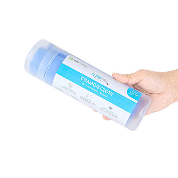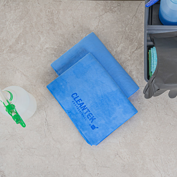 Experience unparalleled cleaning efficiency with our Clean Tek Professional Blue Chamois Cloths. Crafted from PVA microfiber, these cleaning cloths harden when they dry, preventing bacteria growth and ensuring long-lasting use. These microfiber rags are highly-absorbent to tackle spills and messes effectively. Ideal for various cleaning tasks, these wiping rags are multipurpose and can be used for various household or professional cleaning applications. These cleaning rags come with a storage tube to keep the cloth damp and clean. Boasting a lint-free fabric, these chamois cloths ensure a spotless finish on any surface. The zero-pilling design of these dusting rags minimizes the formation of fuzzy balls for increased longevity and durability. These blue cleaning cloths are scratch-free, ensuring a gentle and effective cleaning experience while safeguarding surfaces from potential scratches or damage during use. Machine washable, these multipurpose cleaning rags offer effortless maintenance and can be reused multiple times. The blue finish of these dusting rags ensures easy identification, reducing the risk of mix-ups and ensuring efficient use for various dusting tasks. Measuring 25.25 inches in length by 17 inches in width, these cleaning towels provide ample space for tackling even the largest cleaning tasks. Sold in a 20 count box.