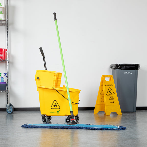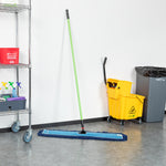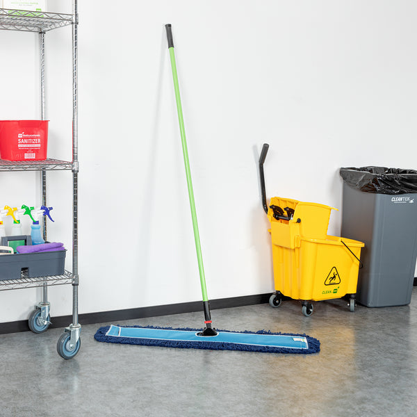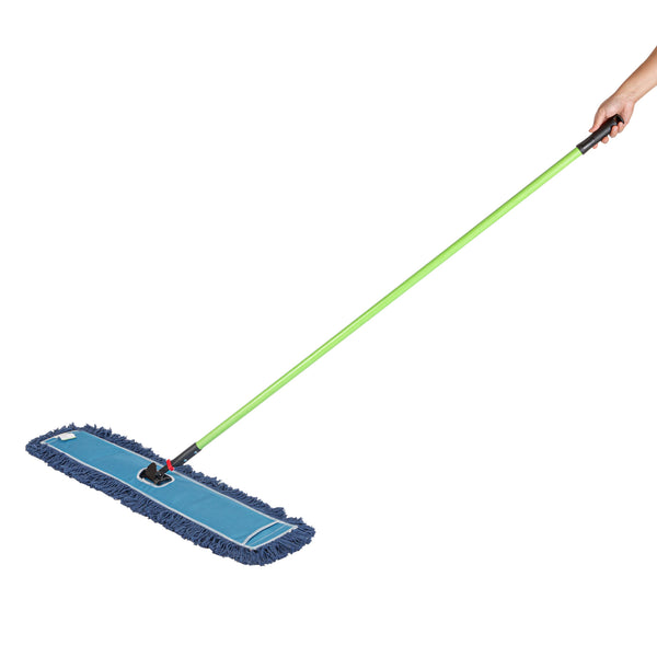 Effortlessly maintain immaculate floors in your establishment with our Clean Tek Professional Blue Cotton-Poly Blend Dust / Dry Mop. This commercial dust mop set includes a dusting head, handle, and frame, providing a comprehensive solution for tackling hard-to-reach areas with ease. The 64-inch handle of this floor dust mop enhances your reach, allowing you to clean expansive areas and hard-to-reach spots effortlessly, minimizing the need for bending or stretching. Crafted from a durable cotton-poly blend, this floor dust mop efficiently captures dust and fine particles, ensuring your floors remain clean without the hassle. Each machine washable mop head is designed for easy cleaning and reuse, providing a convenient solution for maintaining cleanliness. Designed for continuous use across multiple surfaces, this dry mop ensures longevity and reliability in any cleaning routine. Featuring a sturdy iron mop frame, this floor duster minimizes bending or warping, offering consistent performance even with frequent use. Measuring 35.83 inches in length by 5 inches in width by 64.96 inches in height, this dust mop is perfectly sized for optimal coverage and storage. Sold in a 1 count box.