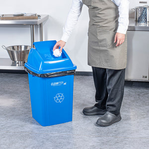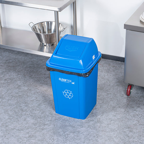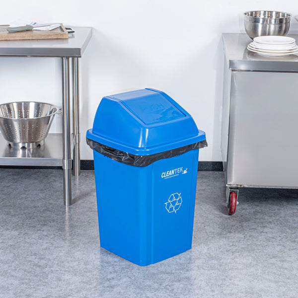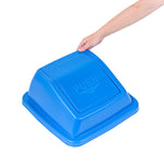 Effortlessly manage waste in your establishment with our Clean Tek Professional Blue Dome Top Lid. These flaps of this trash can lid swing downwards for easy access, allowing for quick disposal of waste while keeping the contents hidden. Pair this garbage can lid with its compatible dust bins (SKUs: RWT2017BL and RWT2016BL) for an efficient waste management solution. Made from premium plastic, this bin lid is durable and withstands heavy-duty use at your foodservice establishment. The sleek contemporary design of this plastic lid makes it ideal for front-of-house applications and even outdoor use. With a blue finish, this storage bin lid promotes quick identification for proper waste disposal. This plastic lid measures 16.14 inches in length by 16.34 inches in width by 7.09 inches in height. Sold in a 1 count box. Trash cans are available and sold separately.