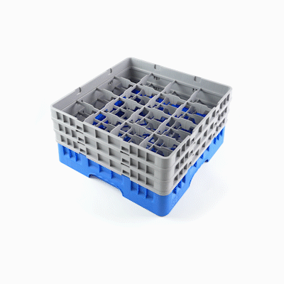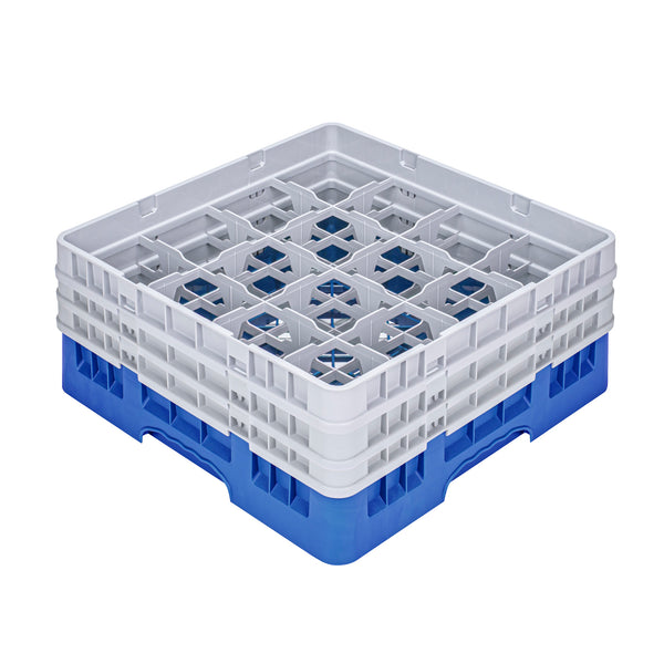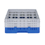 BLUE GLASS RACK - 16 COMPARTMENTS, 1 FULL AND 2 HALF DROP EXTENDERS