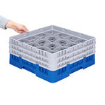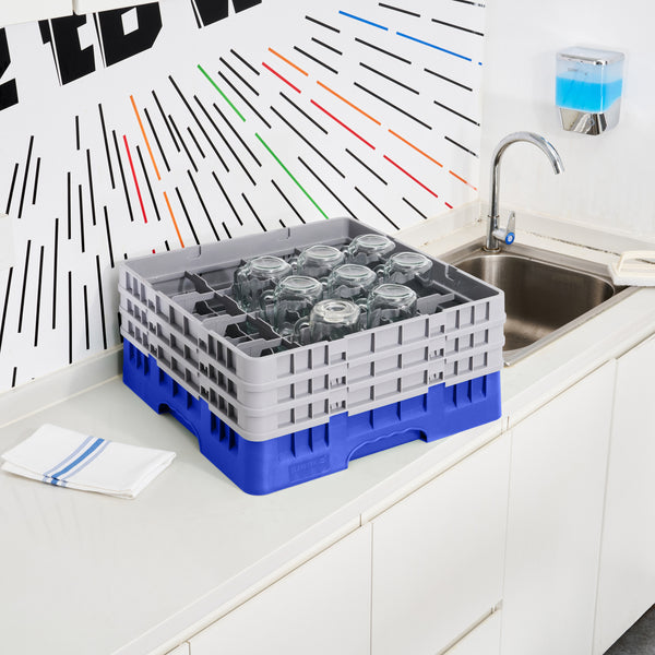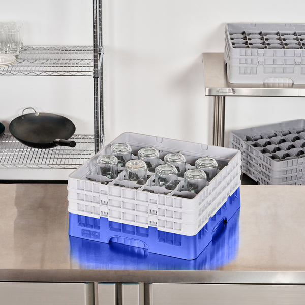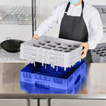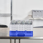 Clean Tek Professional Blue Glass Rack - 16 Compartments, 1 Full Drop and 2 Half Drop Extenders - 19 3/4