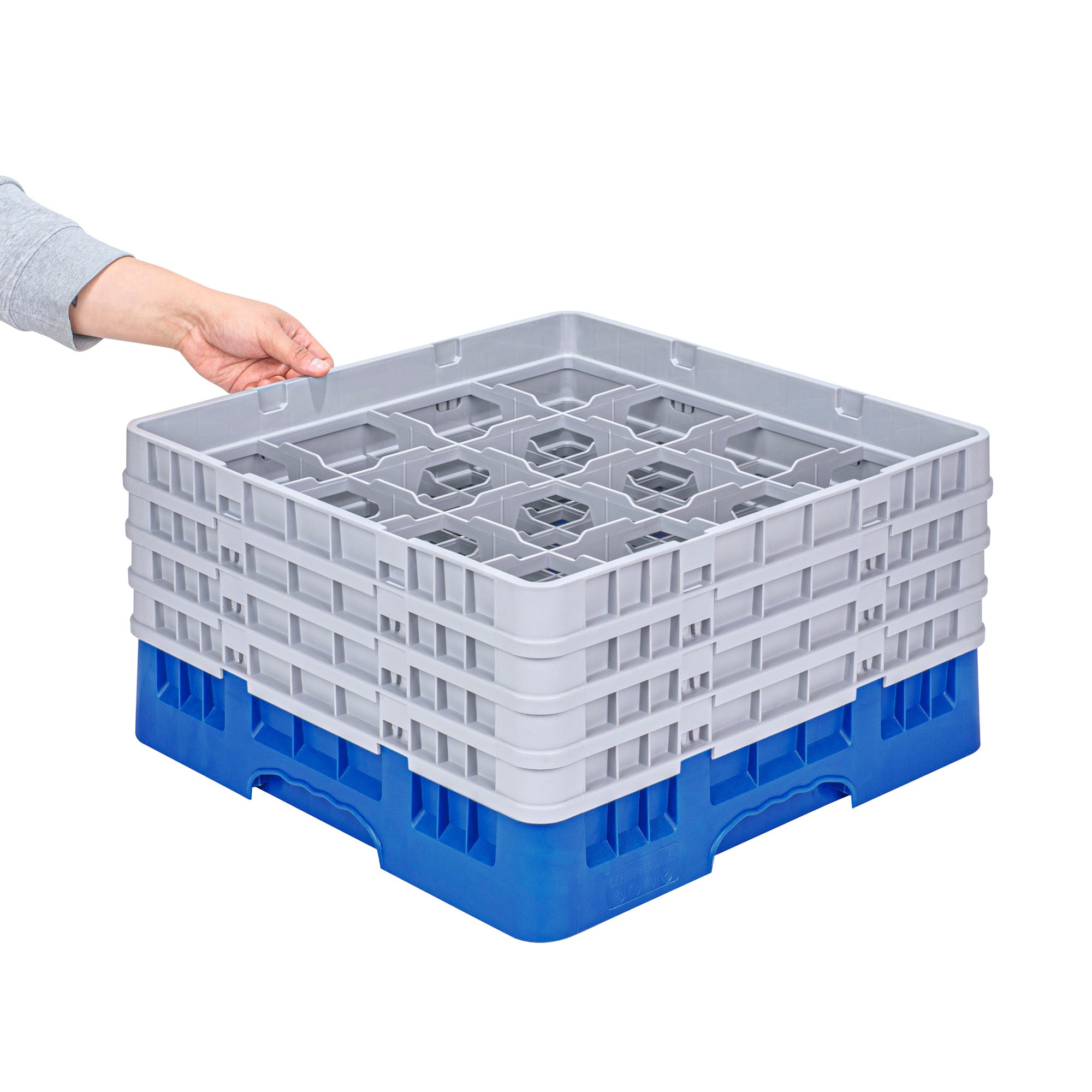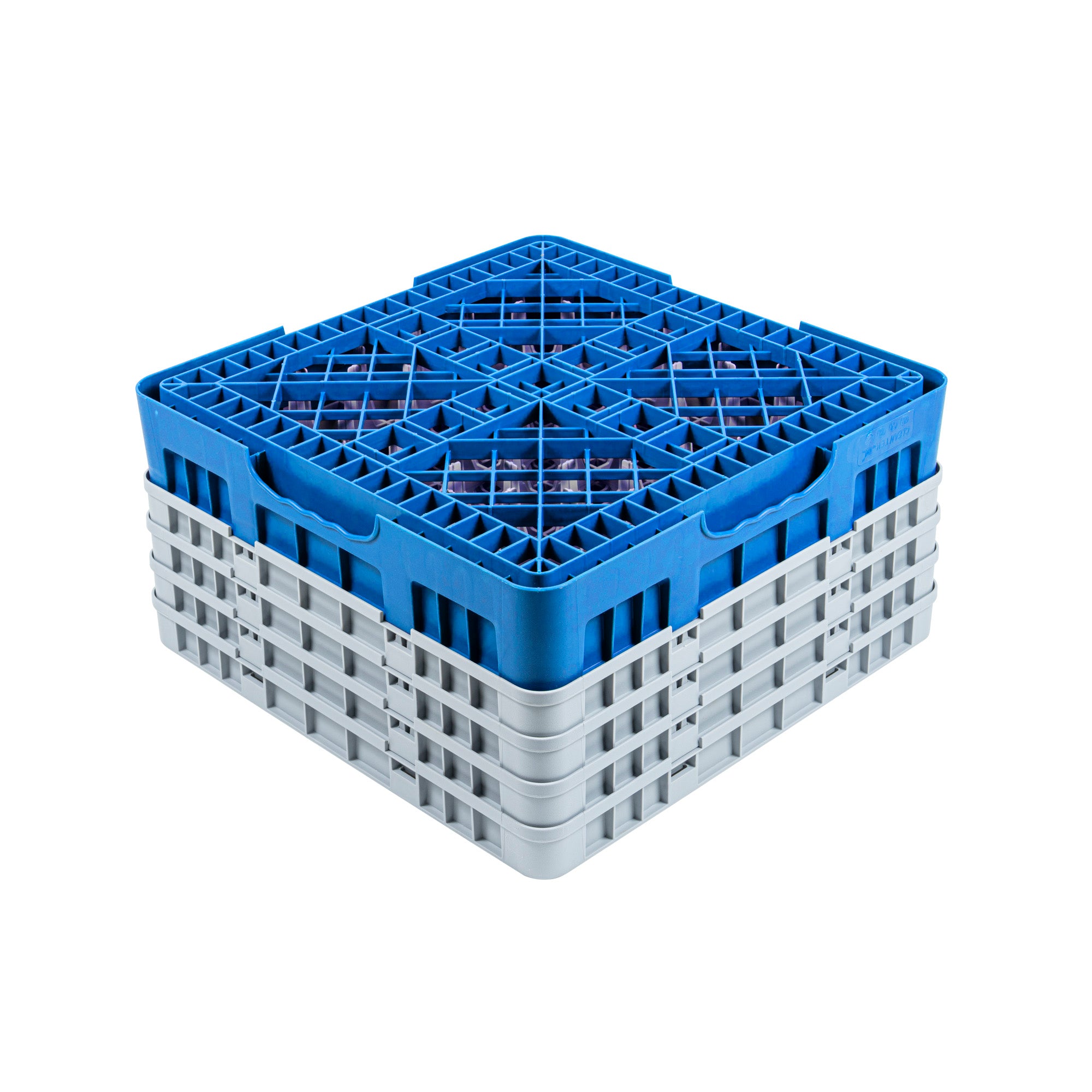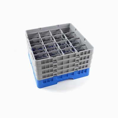 BLUE GLASS RACK - 16 COMPARTMENTS, 1 FULL AND 3 HALF DROP EXTENDERS
