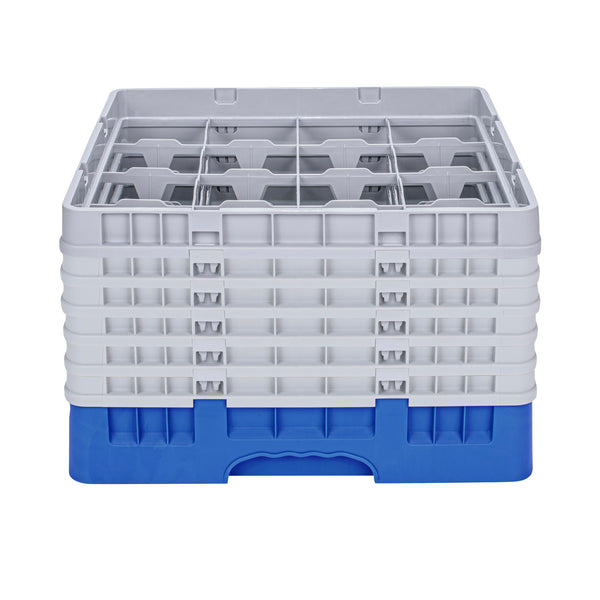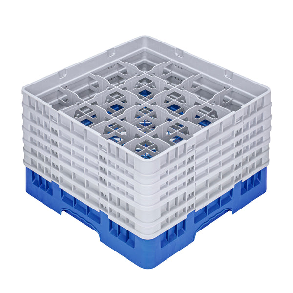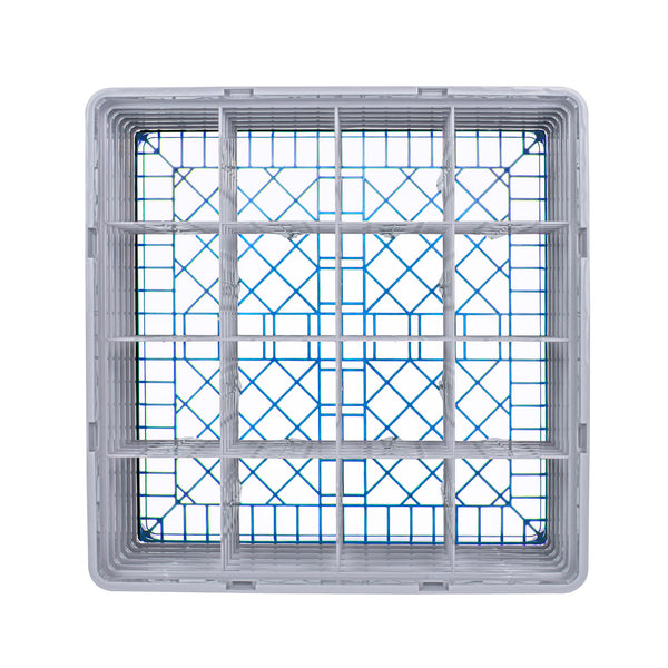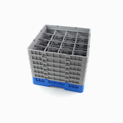 BLUE GLASS RACK - 16 COMPARTMENTS, 1 FULL AND 5 HALF DROP EXTENDERS