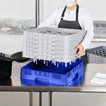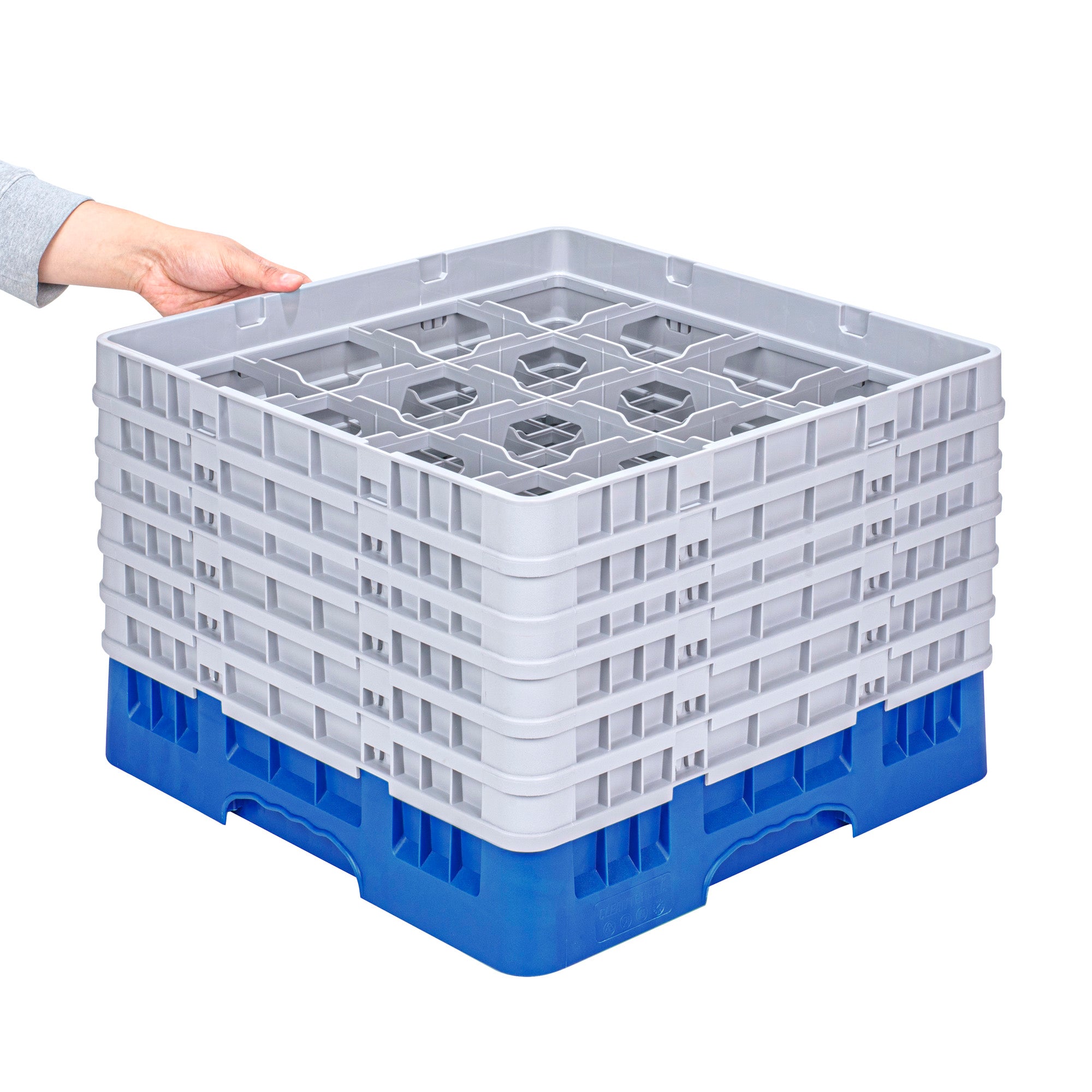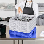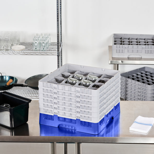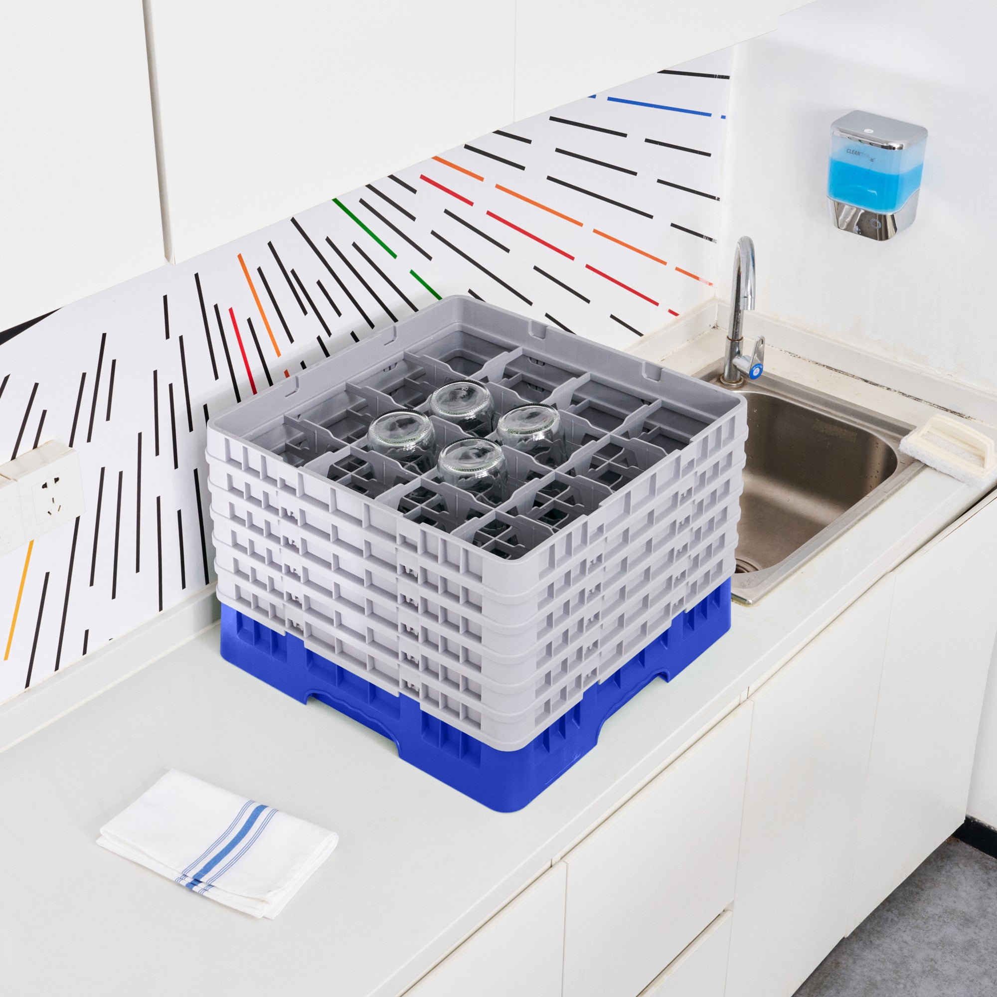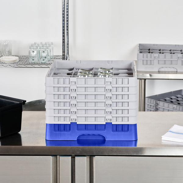 Our Clean Tek Professional Blue Glass Rack is the ultimate solution for efficient glassware storage in bustling foodservice settings. Featuring 16 compartments, this dishwasher rack ensures each glass is securely cradled, reducing breakage during washing. Equipped with a full drop extender, this compartment rack allows for versatile stacking, accommodating a variety of glass heights. With five half drop extenders, this barware organizer offers customizable configurations to fit different glass sizes seamlessly. Constructed from durable PP, this commercial glass rack withstands the rigors of daily use, providing long-lasting reliability. The easy-to-handle design makes transporting this rack a breeze, optimizing workflow in busy kitchens and bars. Open interior compartments promote thorough cleaning, ensuring each glass is spotless and ready for service. Solid external walls add an extra layer of protection, preventing glasses from slipping or falling during transport. Measuring 19.69 inches in length by 19.69 inches in width by 13.74 inches in height, this glass rack fits standard dishwasher sizes, maximizing space and efficiency. Sold in a 1 count box.