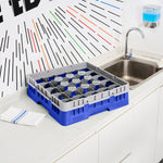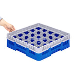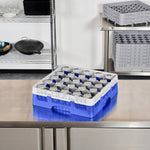 BLUE GLASS RACK - 25 COMPARTMENTS, 1 FULL DROP EXTENDER