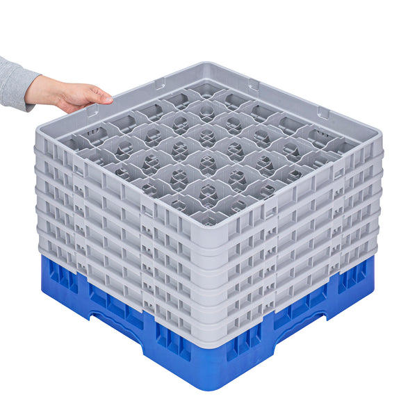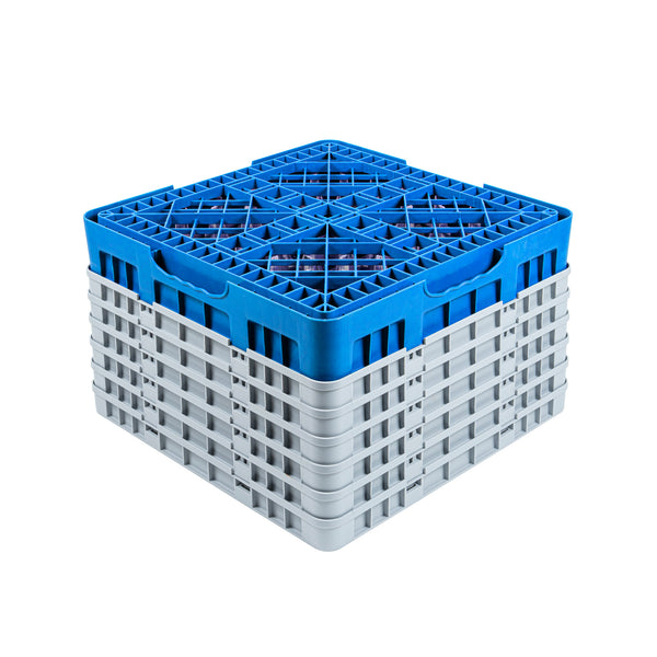 BLUE GLASS RACK - 36 COMPARTMENTS, 1 FULL AND 5 HALF DROP EXTENDERS