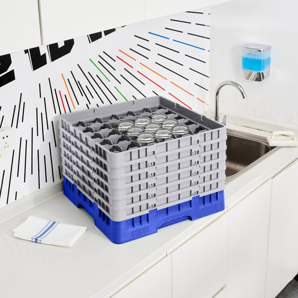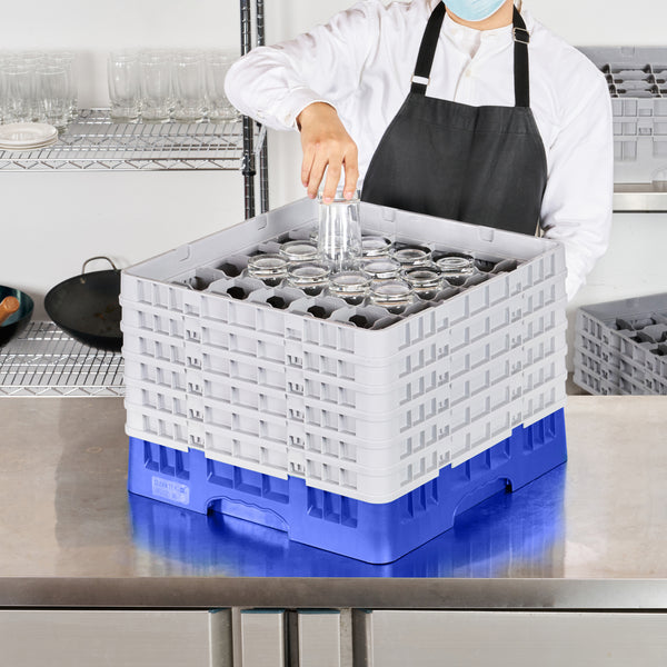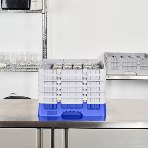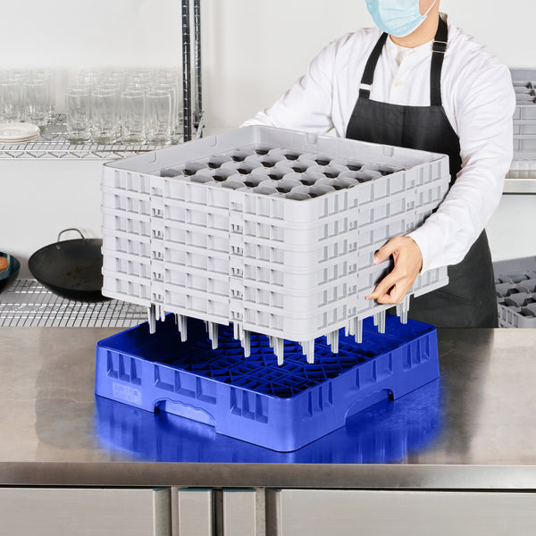 Organize your glassware efficiently with our Clean Tek Professional Blue Glass Rack. This commercial glass rack provides 36 compartments for optimal glassware storage. Designed with a full drop extender and five half drop extenders, this dishwasher rack can accommodate various glass heights with ease. Featuring durable PP construction, this glass rack is built to withstand the rigors of daily use. With an easy-to-handle design, this compartment rack simplifies the process of loading and unloading glassware. The open interior compartments allow for quick drying and effective cleaning, ensuring your barware organizer remains hygienic. Boasting solid external walls, this glass rack ensures the safety and stability of your glassware during transport. Measuring 19.69 inches in length by 19.69 inches in width by 13.74 inches in height, this rack fits seamlessly into your commercial kitchen setup. Sold in a 1 count box.