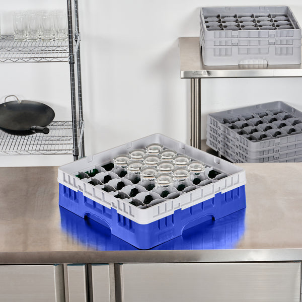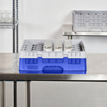 Efficiently organize and protect your glassware with our Clean Tek Professional Blue Glass Rack. This glassware storage rack features 36 compartments to securely hold and separate each glass, preventing damage during transport or washing. Designed with a full drop extender, this commercial glass rack accommodates taller barware for versatile use. Crafted from durable PP, this dishwasher rack withstands the rigors of frequent use in busy foodservice settings. With an easy-to-handle design, this compartment rack streamlines the washing process, making it ideal for bartenders and kitchen staff. The open interior compartments ensure thorough cleaning and quick drying, enhancing hygiene and efficiency. Solid external walls provide additional support and stability, safeguarding your glassware. Measuring 19.69 inches in length by 19.69 inches in width by 5.63 inches in height, this barware organizer fits seamlessly into commercial dishwashers and storage areas. Sold in a 1 count box.