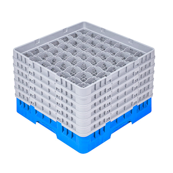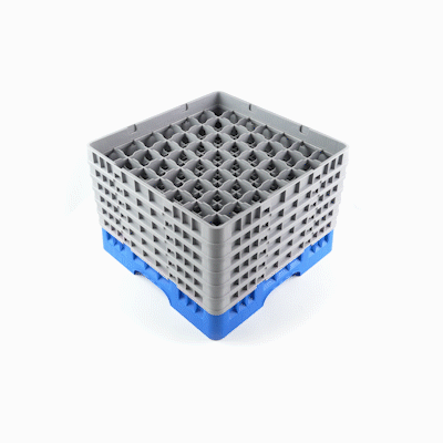 BLUE GLASS RACK - 49 COMPARTMENTS, 1 FULL AND 5 HALF DROP EXTENDERS