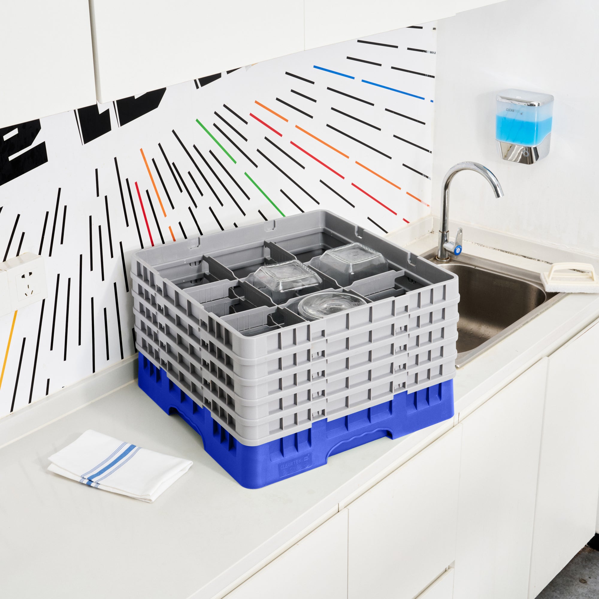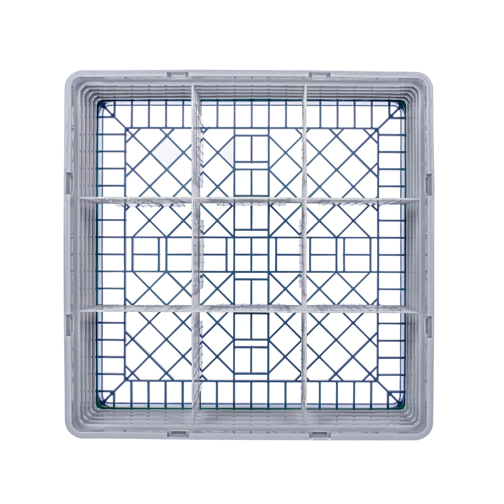 Optimize your glassware storage with our Clean Tek Professional Blue Glass Rack. Featuring 9 compartments, this commercial glass rack provides ample space to organize your barware efficiently. Equipped with 1 full drop extender and 4 half drop extenders, this dishwasher rack ensures flexibility and versatility for all your glassware needs. Constructed from durable PP, this compartment rack is built to withstand the demands of a busy kitchen. The easy-to-handle design of this glass rack simplifies the process of loading and unloading glassware. With open interior compartments, this barware organizer allows for thorough cleaning and quick drying. Solid external walls offer added protection to prevent any accidental breakage of delicate items. Measuring 19.69 inches in length by 19.69 inches in width by 12.13 inches in height, this glass rack fits seamlessly into any commercial kitchen layout. Sold in a 1 count box.