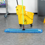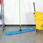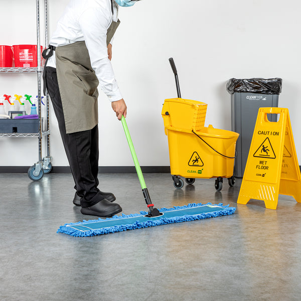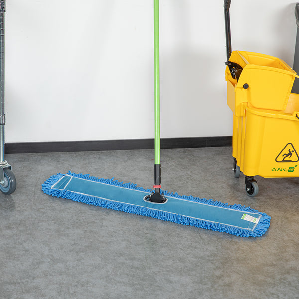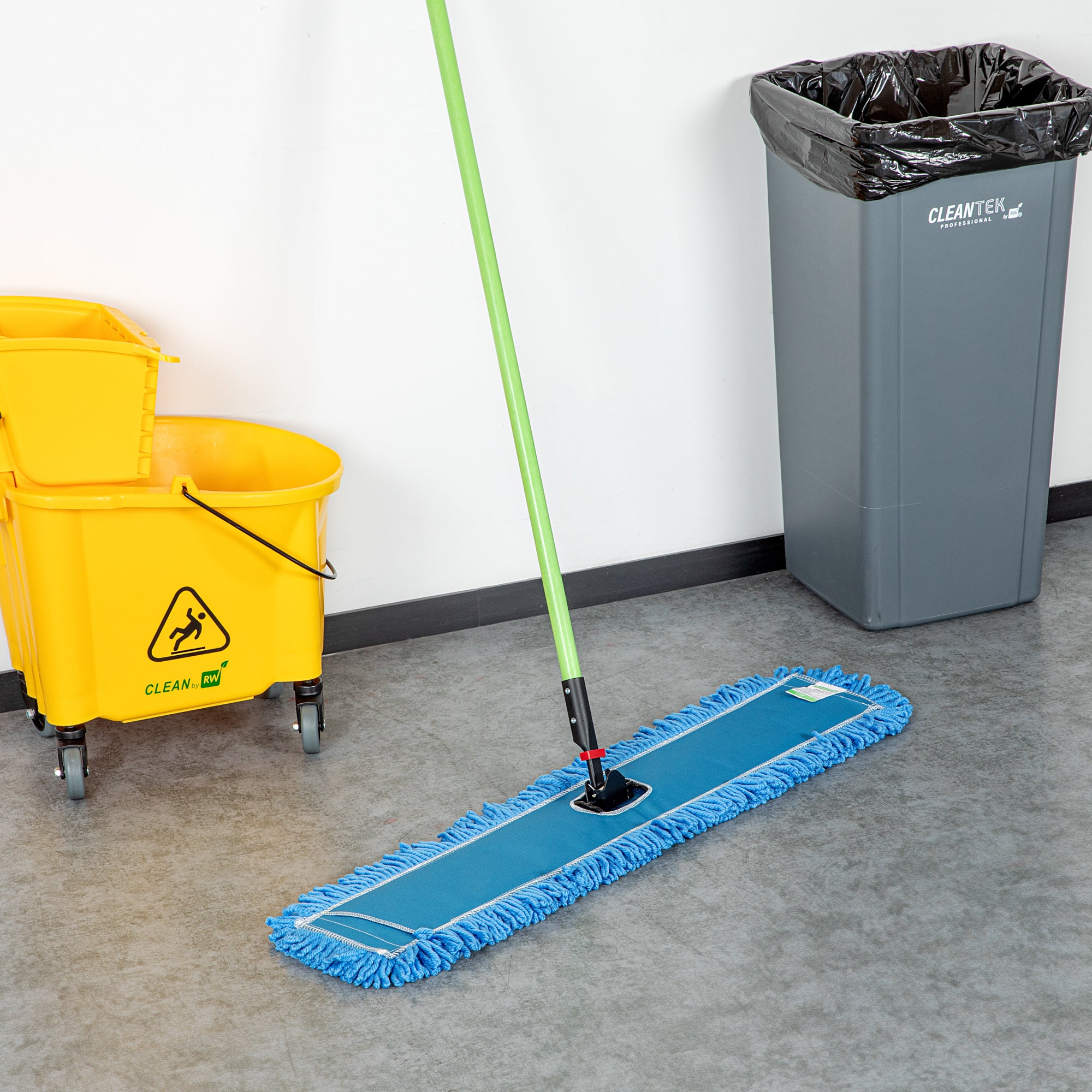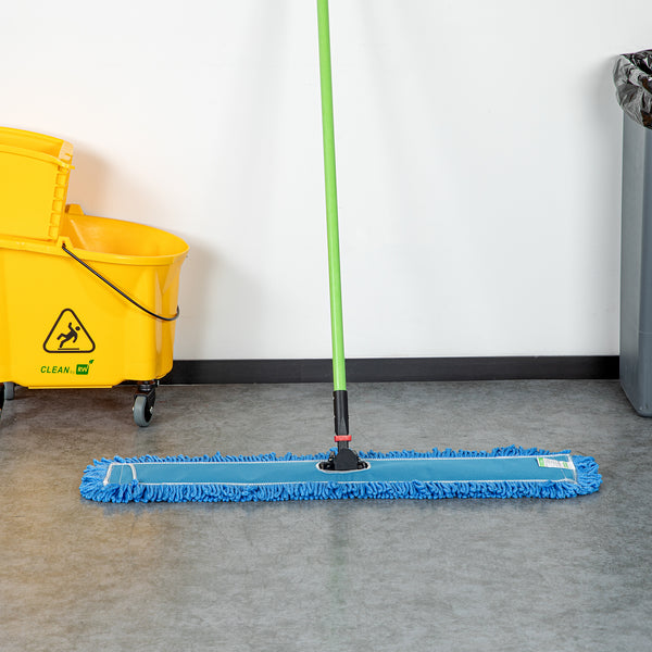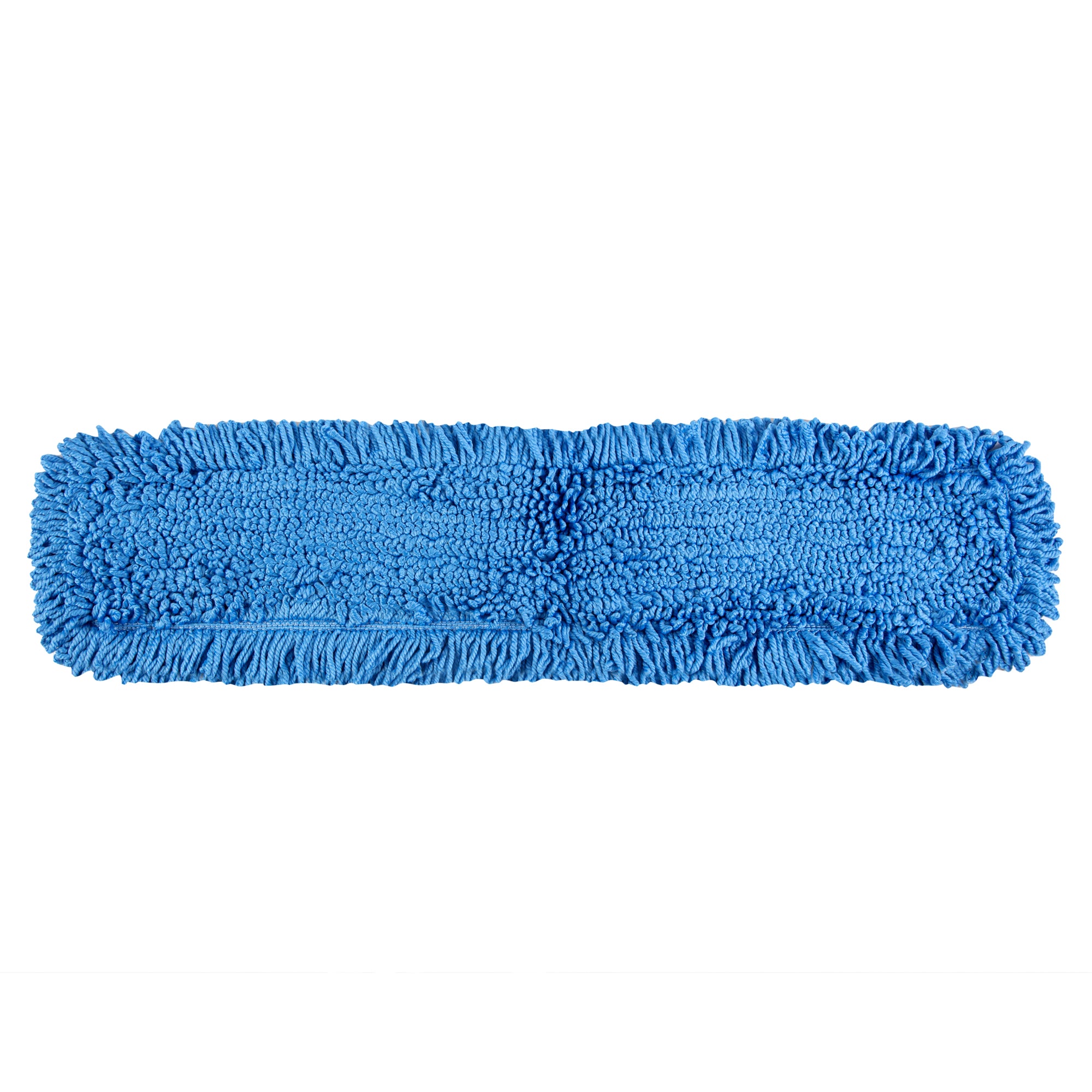 Achieve pristine floors with our Clean Tek Professional Blue Microfiber Dust / Dry Mop Head. The looped end of this blue mop head minimizes fraying, extending its overall lifespan. Pair this mop head with our collection of matching Clean Tek Professional mop frames and handles for an all-in-one cleaning solution that enhances your cleaning experience. Made from premium microfiber, this dust mop head efficiently whisks away and retains dust and dirt, allowing you to clean your floors faster and more thoroughly. Featuring a secure attachment style, this microfiber mop head stays firmly in place, ensuring it won't shift during use. Designed for longevity, this industrial dust mop is machine washable and reusable, providing an easy maintenance routine. With dimensions of 35.83 inches in length by 5 inches in width, this mop head replacement fits seamlessly into your cleaning arsenal. Sold in a 1 count box. Mop frame and handle are available and sold separately.
