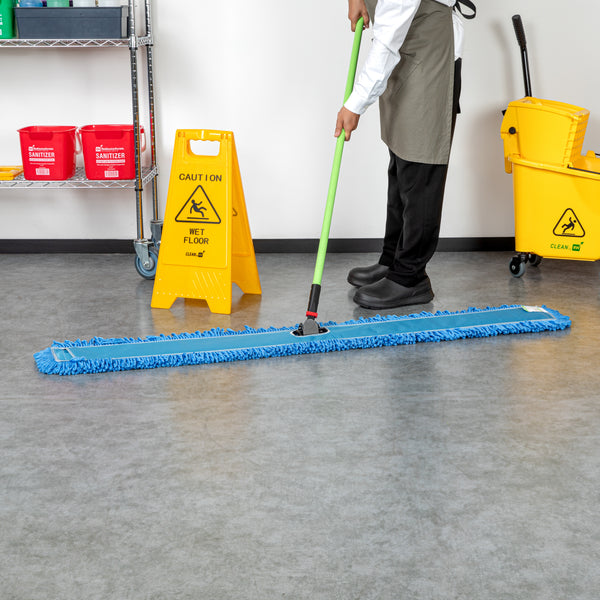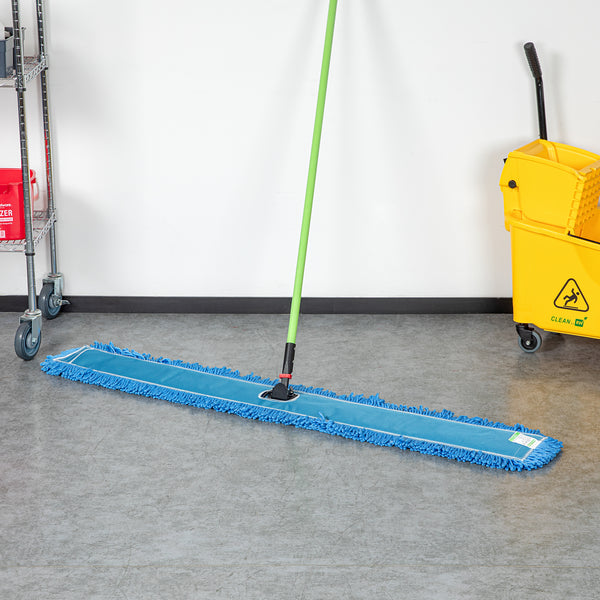 Upgrade your cleaning routine with our Clean Tek Professional Blue Microfiber Dust / Dry Mop Head. With a looped end design, this mop head replacement prevents unraveling, ensuring long-lasting use and reliable performance during cleaning tasks. This microfiber mop head pairs seamlessly with our collection of matching Clean Tek Professional mop frames and handles for an all-in-one cleaning solution that ensures an excellent cleaning experience. Made from premium microfiber, this dust mop head effortlessly whisks away and retains dust and dirt, allowing you to clean your floors faster. The secure attachment style of this blue mop head ensures it stays in place during use. Machine washable and reusable, this industrial dust mop head offers easy maintenance. Measuring 59.84 inches in length by 5 inches in width, this mop head fits perfectly in various cleaning scenarios. Sold in a 1 count box. Mop frame and handle are available and sold separately.