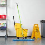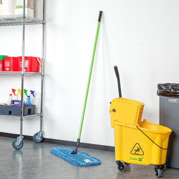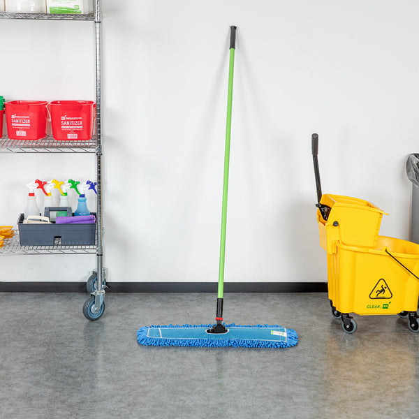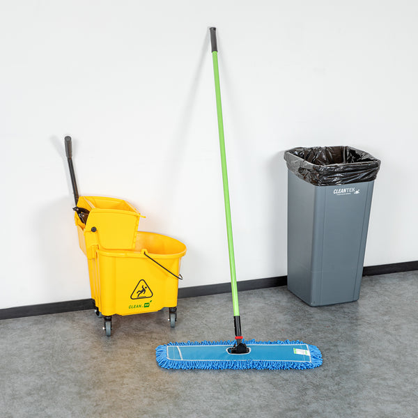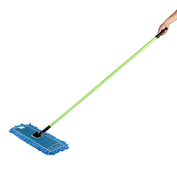 Enhance your cleaning routine with our Clean Tek Professional Blue Microfiber Dust / Dry Mop. This comprehensive set includes a mop head, handle, and frame, making it ideal for capturing dust in hard-to-reach areas. Designed from durable microfiber, this dry mop efficiently captures dust and fine particles, ensuring an immaculate clean across various surfaces. Featuring an iron mop frame, this commercial dust mop is built to withstand frequent use without bending or warping, ensuring long-lasting performance. With its 64-inch handle, this floor dust mop provides an extended reach, allowing you to clean large areas and tight spots effortlessly, without the need for bending or stretching. The microfiber mop head of this floor duster is machine washable and reusable, making maintenance a breeze. Measuring 24.02 inches in length by 5 inches in width by 64.96 inches in height, this dust mop is perfectly sized for any cleaning task. Sold in a 1 count box.