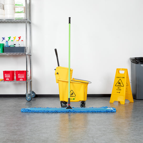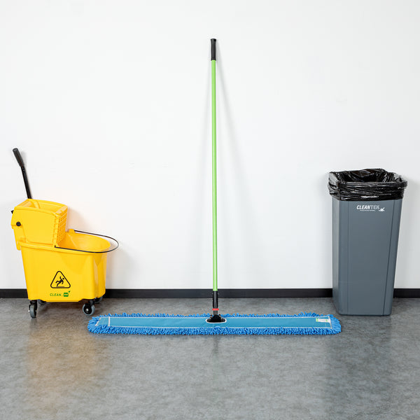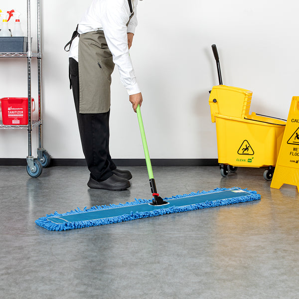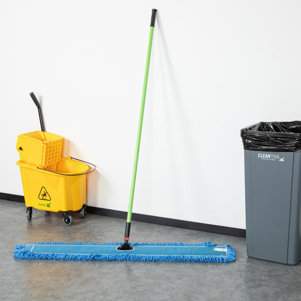 Elevate your cleaning routine with our Clean Tek Professional Blue Microfiber Dust / Dry Mop, a revolutionary tool designed for superior dust and floor care. This set includes a durable dusting mop head, handle, and frame, providing a comprehensive solution for efficiently tackling hard-to-reach areas. Crafted from premium microfiber, this dry mop captures dust and fine particles effortlessly, ensuring a spotless clean across multiple surfaces. Featuring an iron mop frame, this floor duster resists bending or warping with frequent use, providing long-lasting performance. The impressive 64-inch handle of this floor dust mop offers an extended range, making it easier to clean expansive areas and difficult spots without unnecessary bending or stretching. For added convenience, the microfiber mop head of this dust mop is machine washable and reusable, allowing for easy maintenance. Measuring 48.03 inches in length by 5 inches in width by 64.96 inches in height, this commercial dust mop is designed to handle extensive cleaning tasks with ease. Sold in a 1 count box.