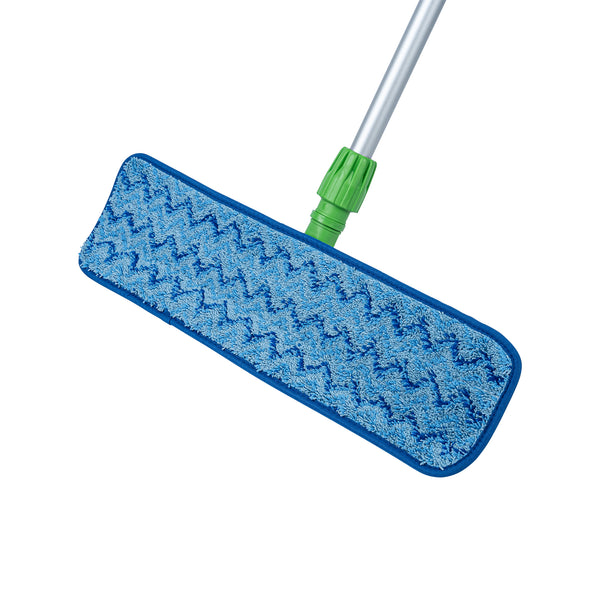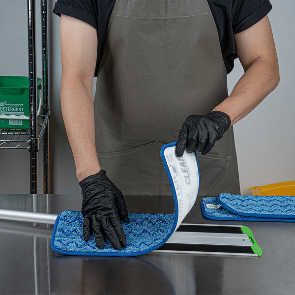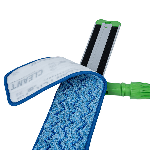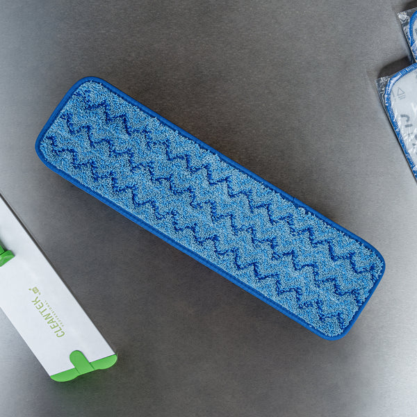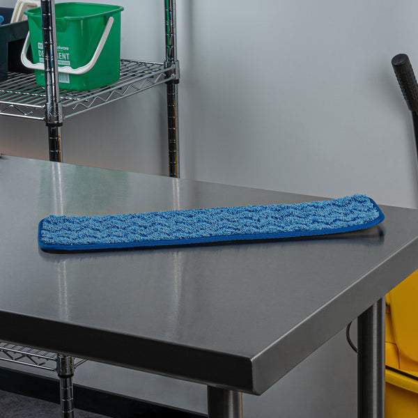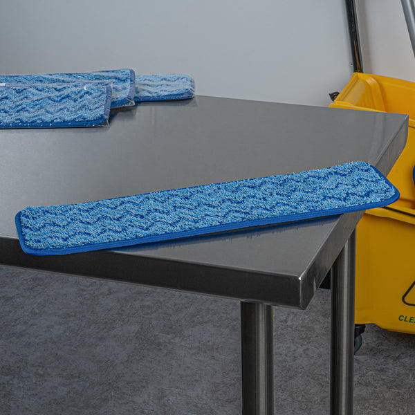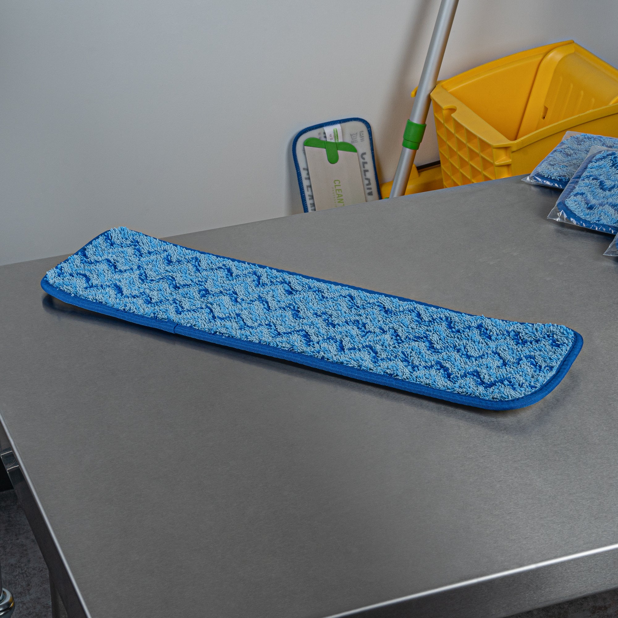 Tackle your toughest cleaning tasks with our Clean Tek Professional Blue Microfiber Hook and Loop Wet / Dry Mop Pad. Equipped with a zig zag pattern, this microfiber mop pad enhances cleaning performance by increasing the contact area, capturing and holding more dirt, dust, and debris. Pair this reusable mop pad with its matching mop frame (SKU: RWT1751G) and handle (SKU: RWT1753G) for an all-in-one cleaning solution that delivers excellent results. The hook-and-loop backing of this mop pad ensures secure placement and prevents slippage during use. Featuring a vibrant blue color, this microfiber wet mop can be used for color-coordinating cleaning tasks in your establishment. Measuring 19.5 inches in length by 5.5 inches in width, this dry mop pad is perfect for covering large surfaces quickly and efficiently. Sold in a 1 count box. Mop frame and handle are available and sold separately.