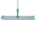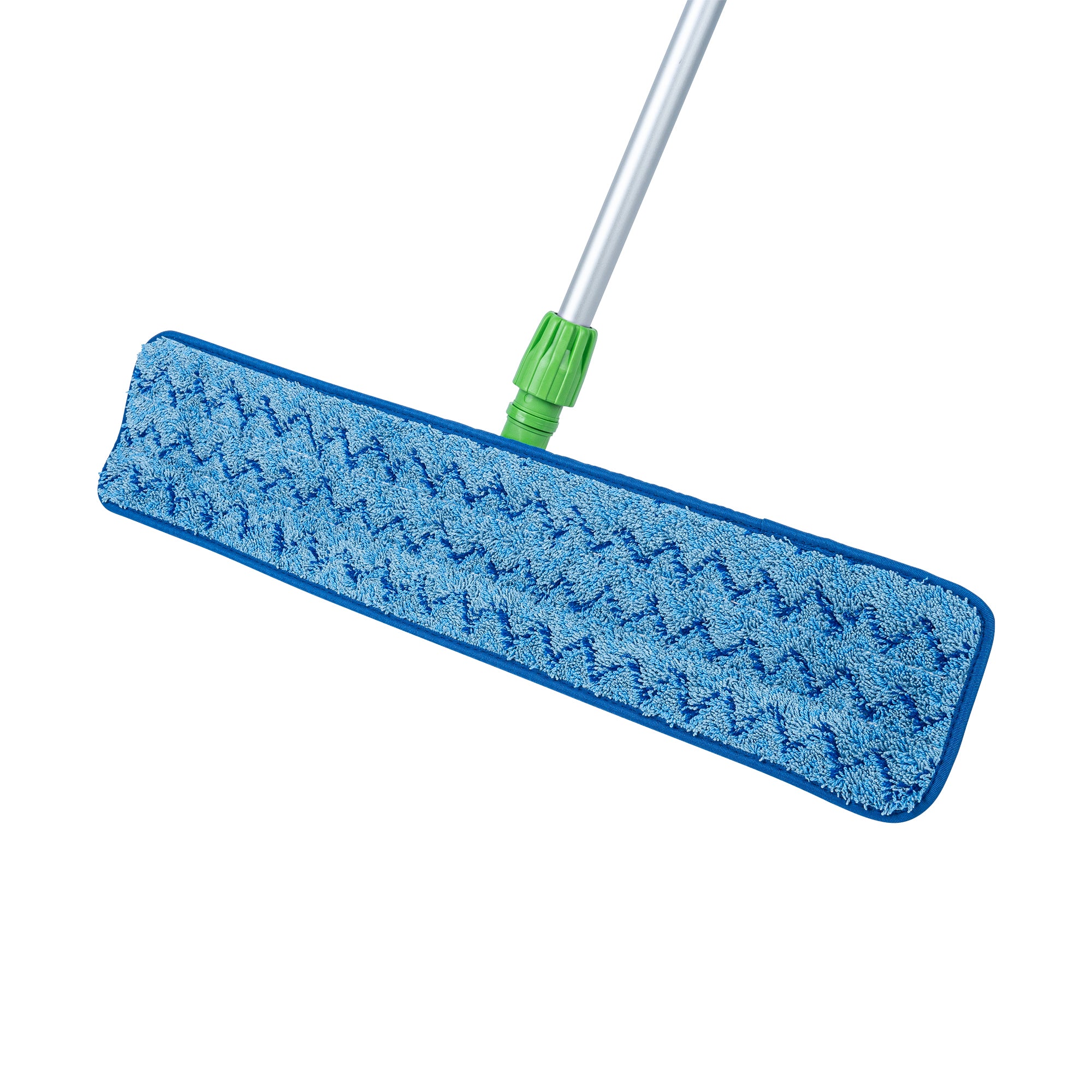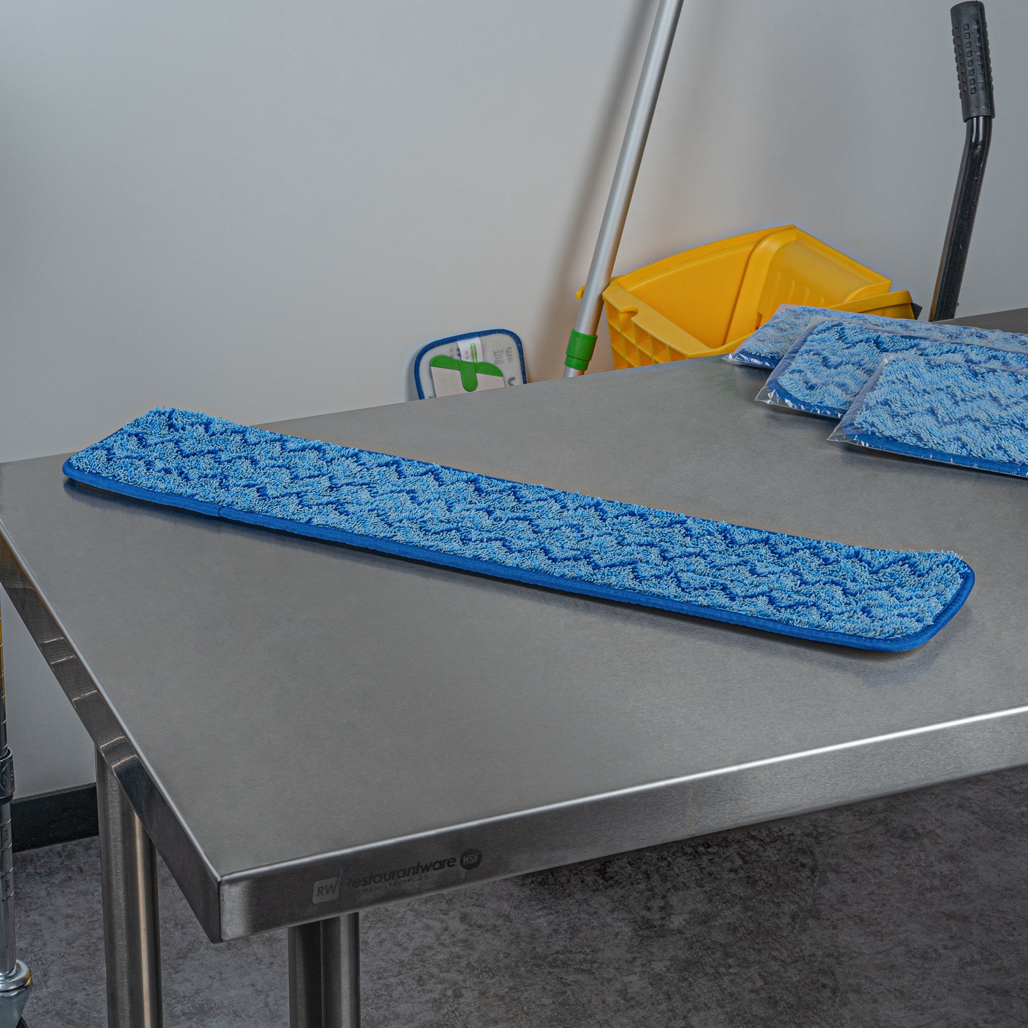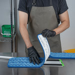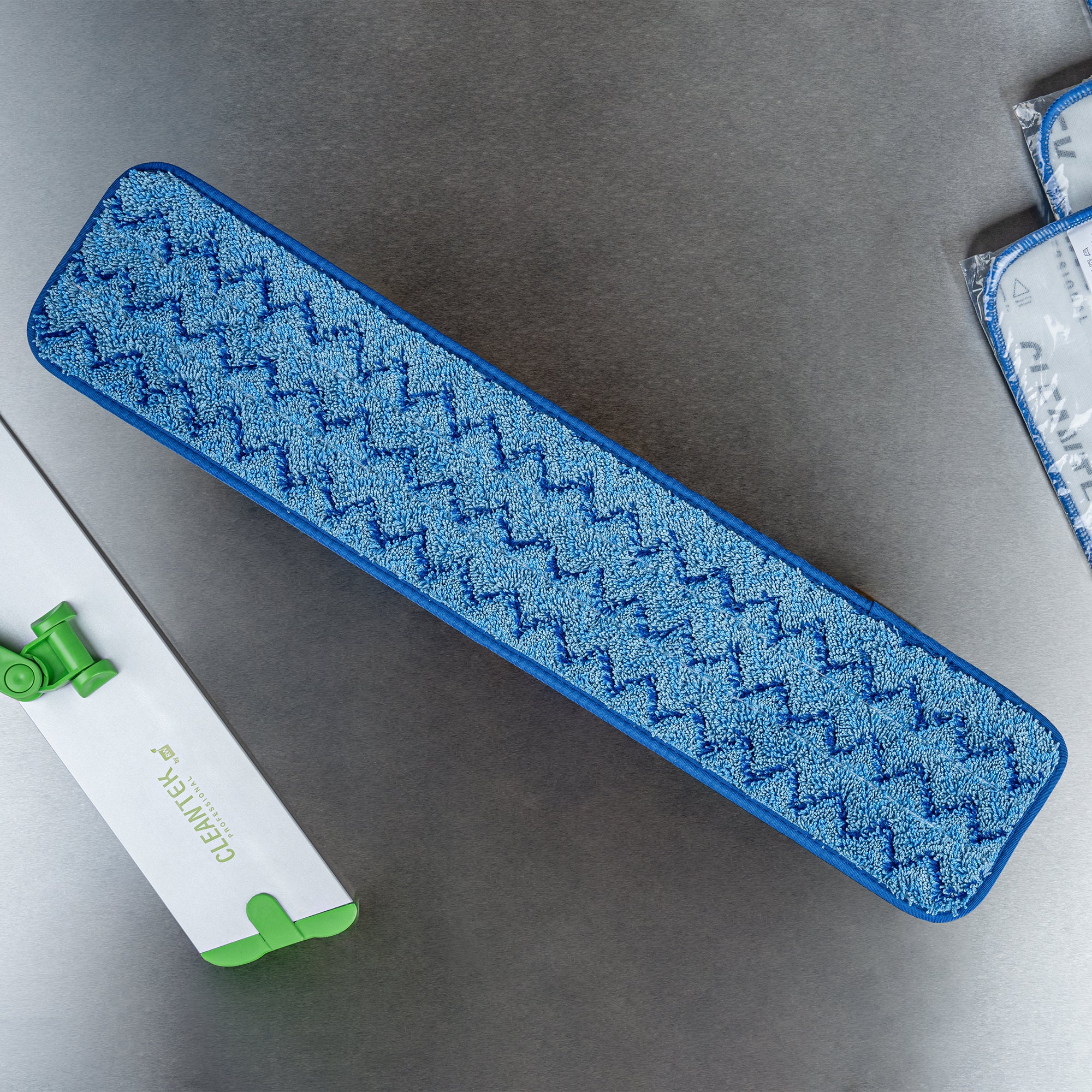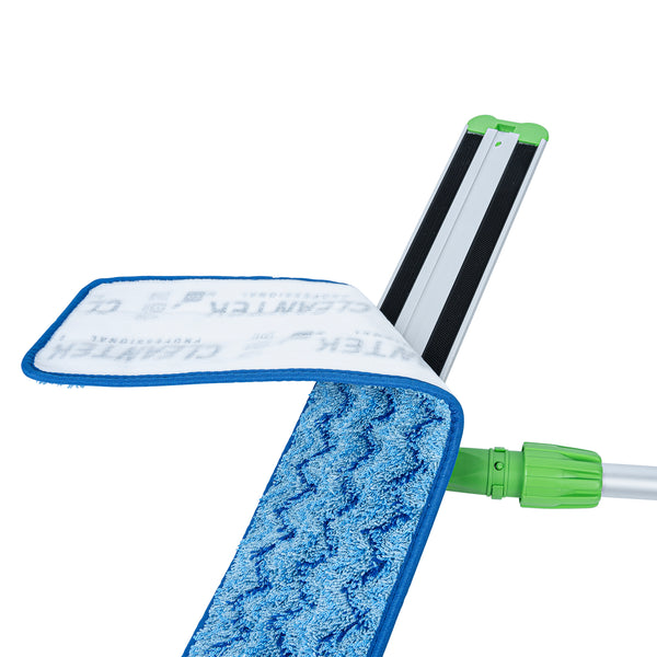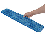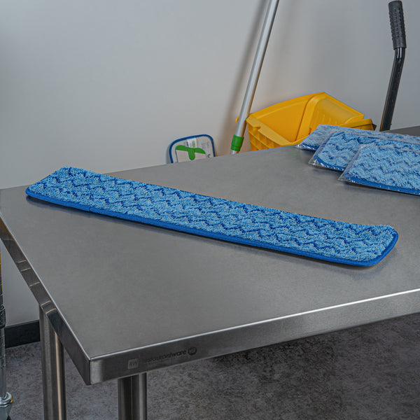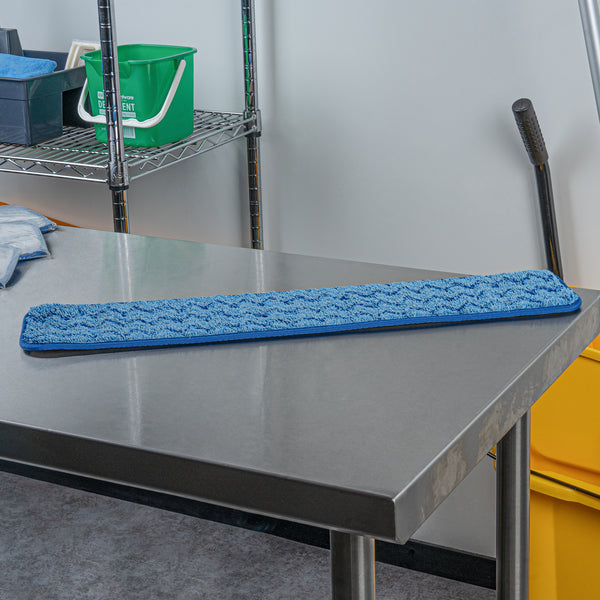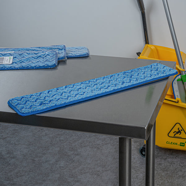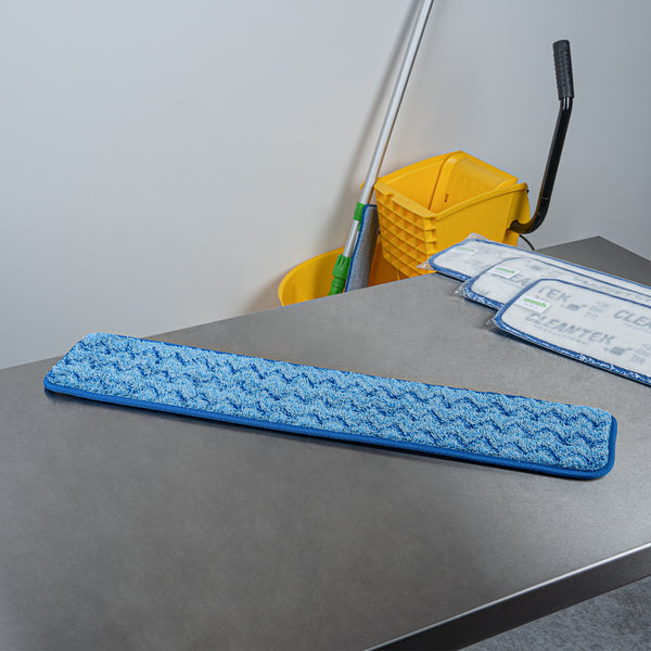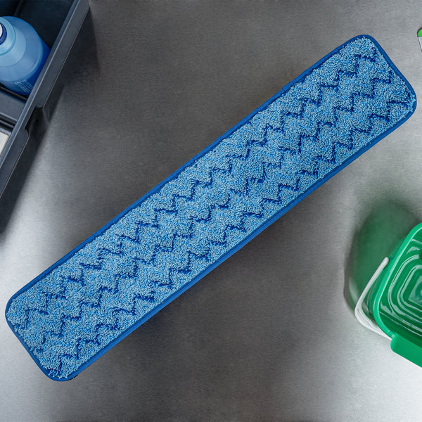 Transform your cleaning routine with our Clean Tek Professional Blue Microfiber Hook and Loop Wet / Dry Mop Pad. Enhanced by a zig zag pattern, this microfiber mop pad maximizes the contact area to capture more dirt, dust, and debris. Featuring split microfibers, this reusable mop pad excels at tackling the toughest cleaning tasks. Designed for versatility, this microfiber wet mop can be paired with a matching mop frame (SKU: RWT1752G) and handle (SKU: RWT1753G) for a comprehensive cleaning solution. The innovative hook-and-loop backing of this blue mop pad ensures secure placement, preventing slippage during use. Ideal for color-coordinated cleaning tasks, this mop pad has a blue finish and provides easy identification in busy environments. Measuring 25.5 inches in length by 5.5 inches in width, this dry mop pad offers substantial coverage for all your cleaning needs. Sold in a 1 count box. Mop frame and handle are available and sold separately.