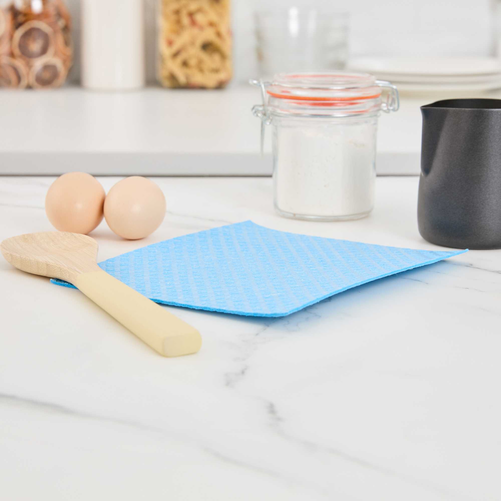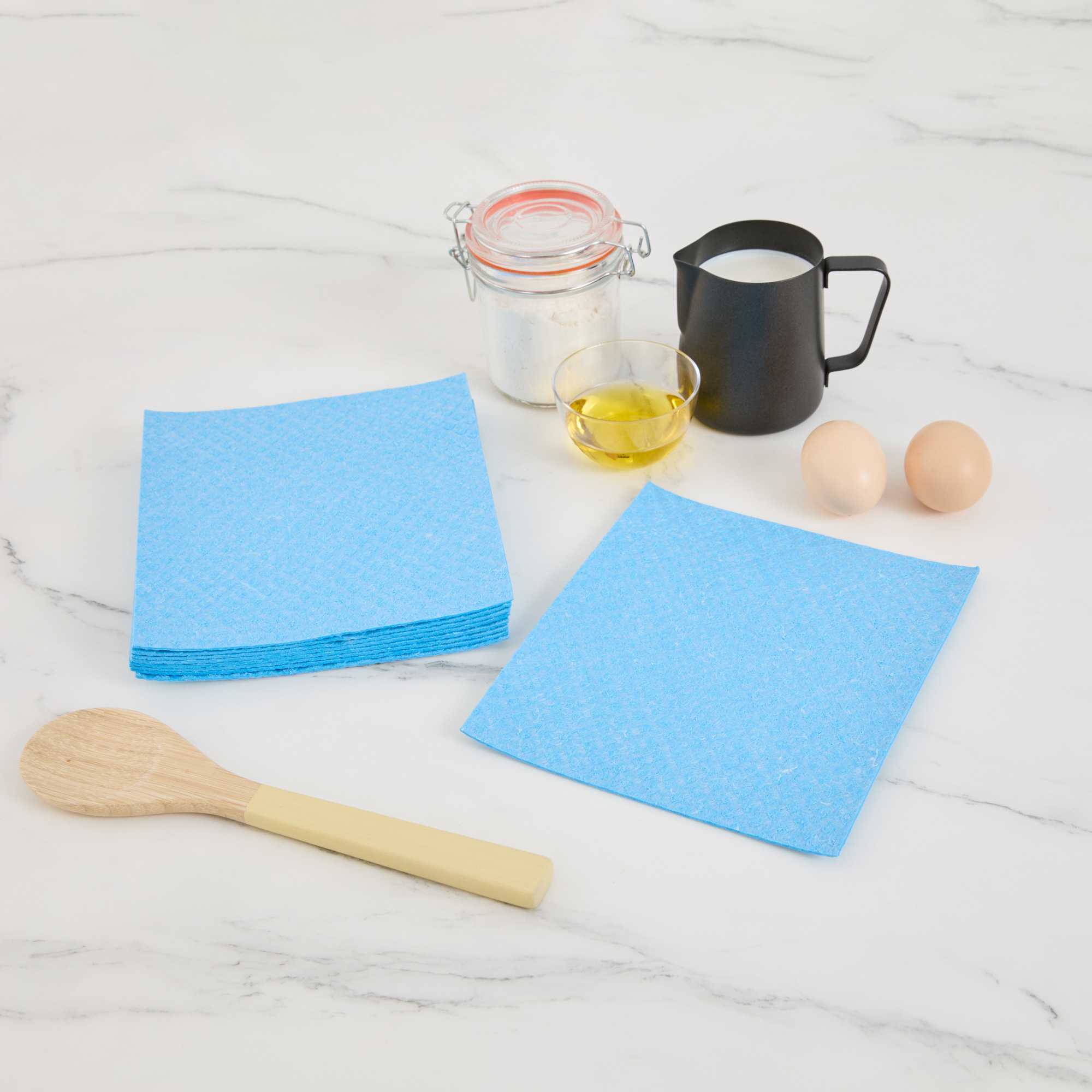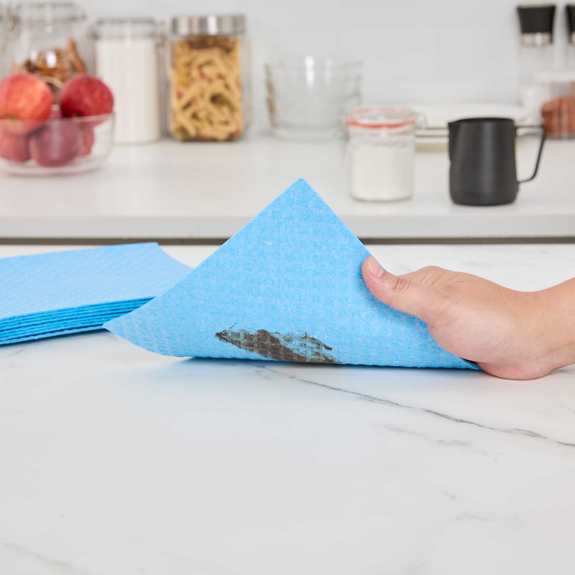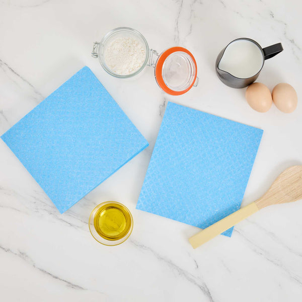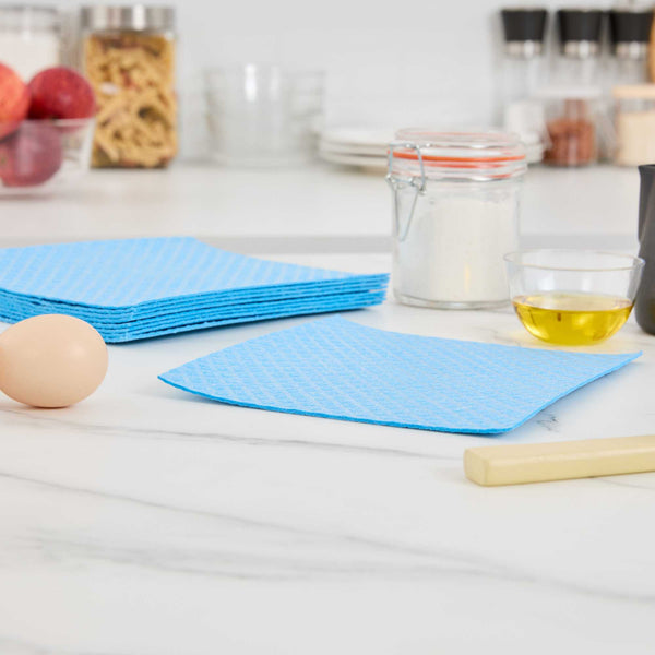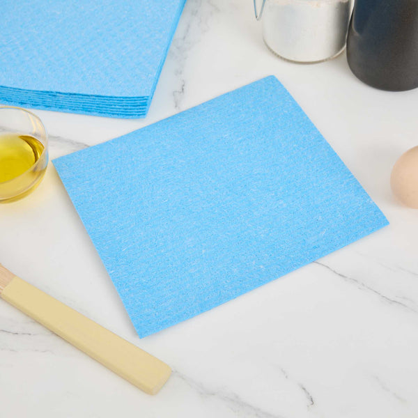 Improve cleaning productivity with our Clean Tek Professional Blue Reusable Swedish Dishcloths. Crafted from highly absorbent cellulose, these blue Swedish dishcloths tackle spills, grease, and residue with ease, making them essential for fast-paced kitchens. Designed to soften when wet and firm up when dry, these dishcloths adapt to light wiping or heavy scrubbing as needed. Their reusable and biodegradable construction helps reduce waste, offering an eco-conscious alternative to traditional paper towels. Built to withstand repeated use, these commercial-grade cloths support green cleaning practices without compromising durability. Easily sanitized in the dishwasher, these cloths simplify maintenance and ensure a hygienic work environment. Measuring 6.77 inches long by 7.68 inches wide, they provide efficient surface coverage for a variety of cleaning tasks. Sold in a 10 count box.