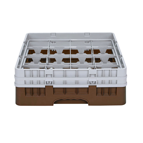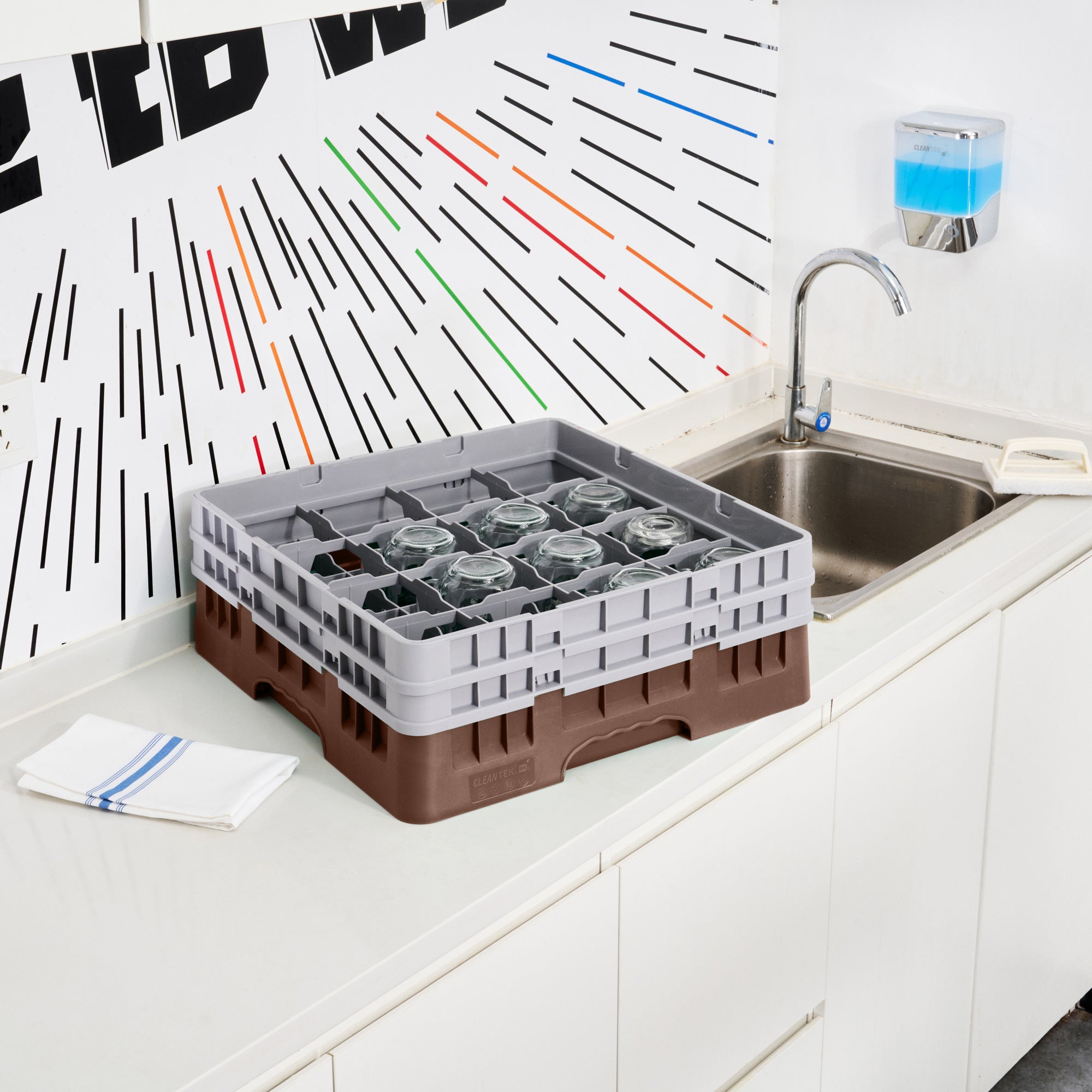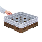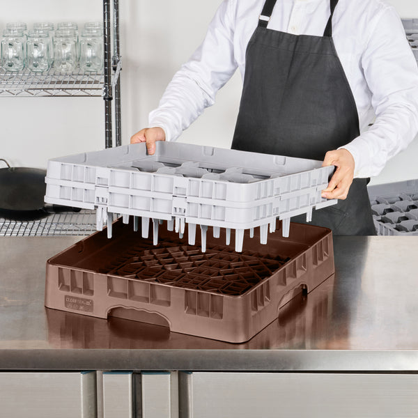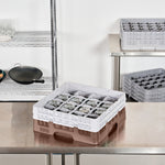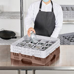 Clean Tek Professional Brown Glass Rack - 16 Compartments, 1 Full Drop and 1 Half Drop Extender - 19 3/4