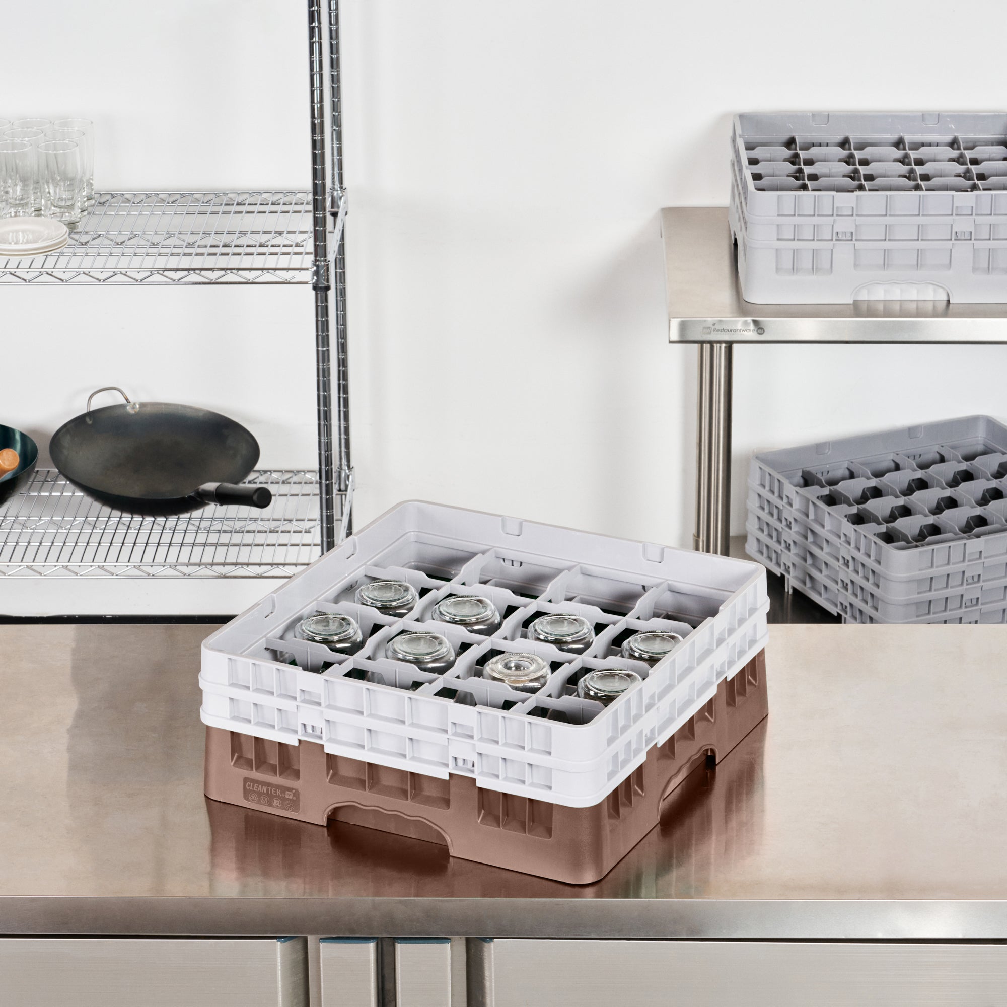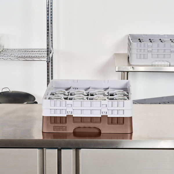 Enhance your glassware storage with our Clean Tek Professional Brown Glass Rack. Featuring 16 compartments, this dishwasher rack provides ample space for your barware organizer needs. Constructed with durable PP, this commercial glass rack ensures long-lasting use in busy settings. The easy-to-handle design of this compartment rack makes it simple to transport and load. Open interior compartments of this rack allow for efficient drying and cleaning of glassware. The solid external walls of this glass rack offer exceptional protection and stability during storage. Measuring 19.69 inches in length by 19.69 inches in width by 7.24 inches in height, this rack fits seamlessly into standard dishwasher setups. Sold in a 1 count box.