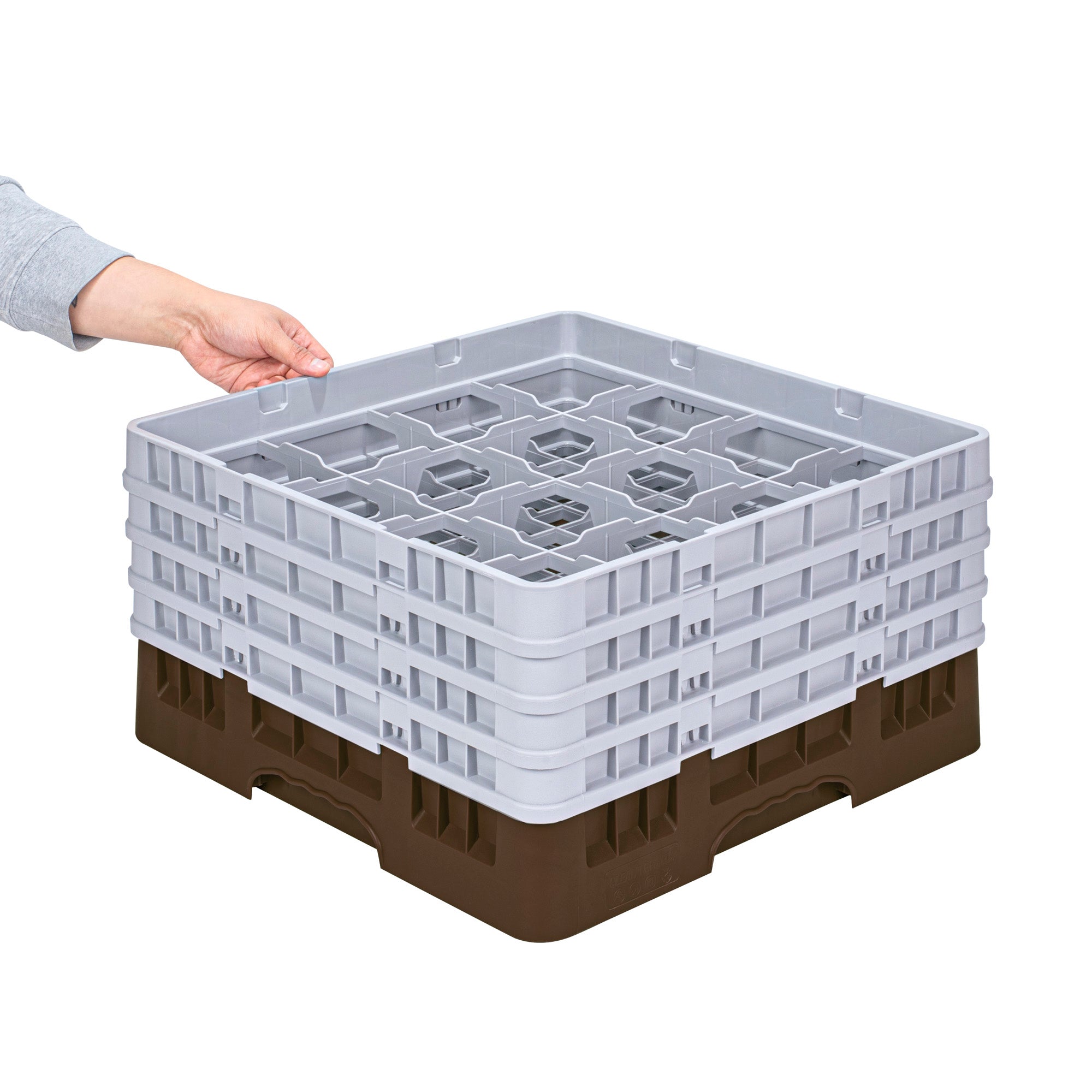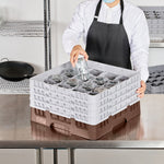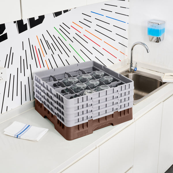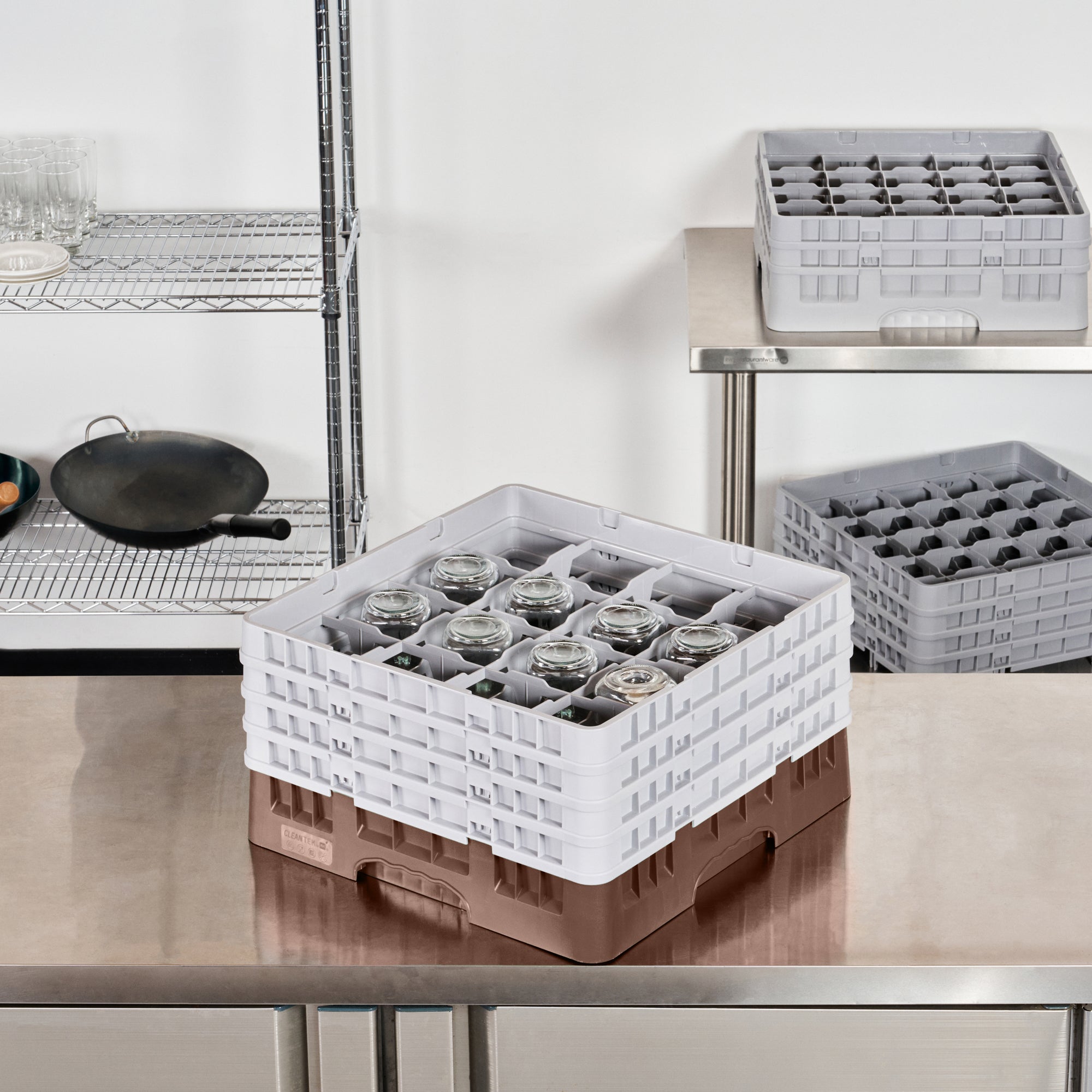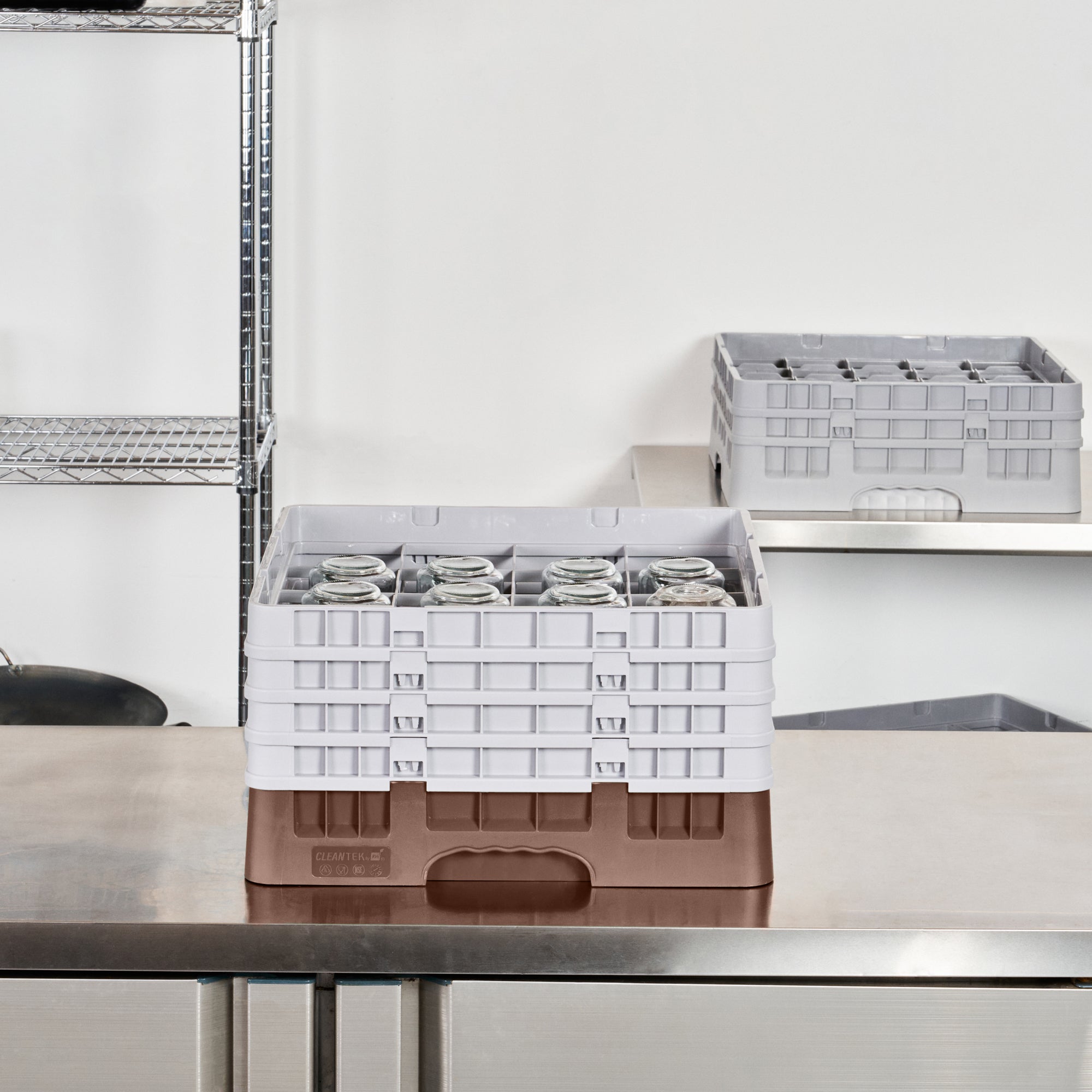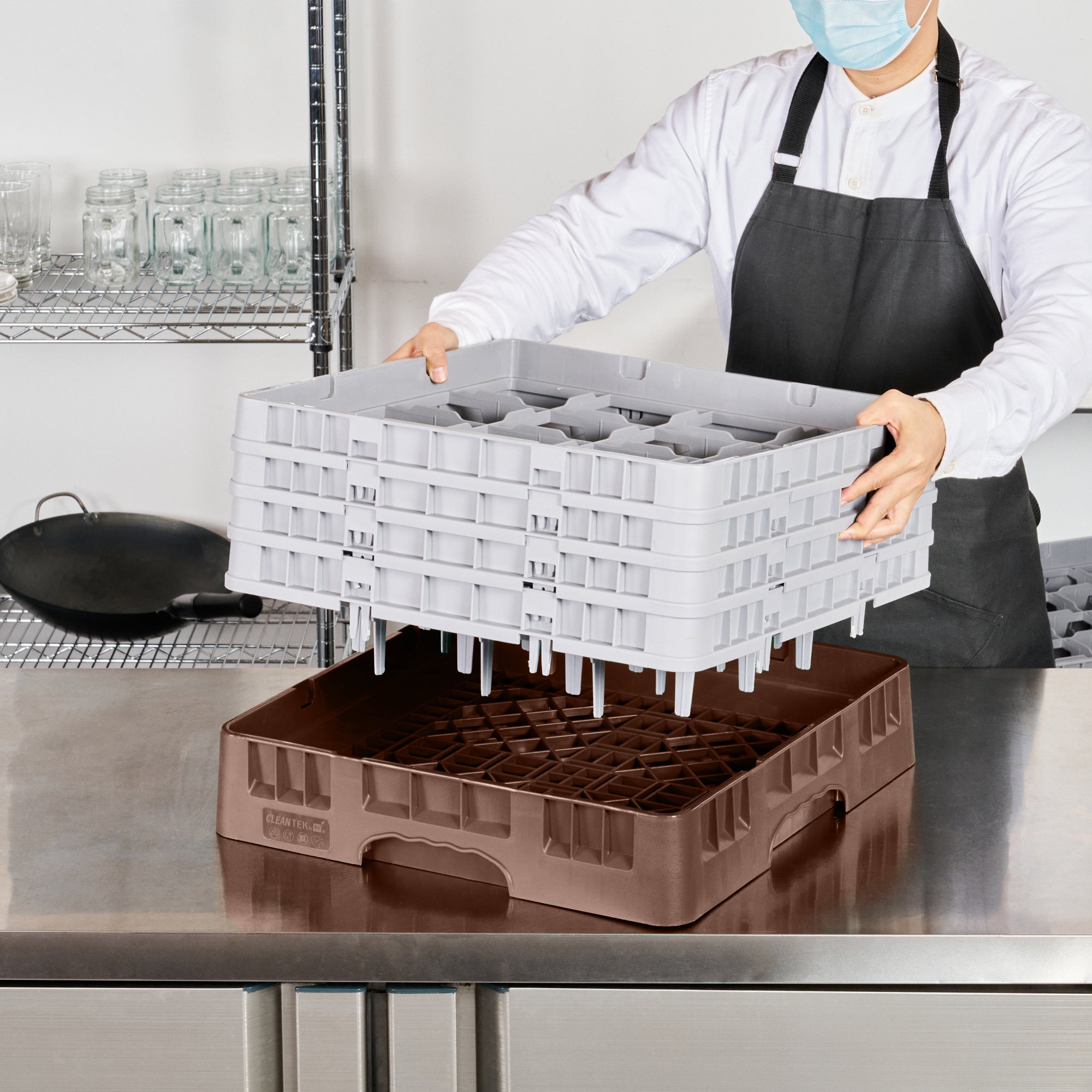 Optimize glassware storage and improve efficiency with our Clean Tek Professional Brown Glass Rack. This commercial glass rack features 16 compartments, making them perfect for organizing barware. With 1 full drop extender and 3 half drop extenders, this rack adapts to varying glass heights. Constructed from durable PP, this dishwasher rack ensures long-lasting use in busy kitchens. Designed with an easy-to-handle structure, this compartment rack simplifies the transport of glassware. Open interior compartments allow for thorough cleaning, while solid external walls provide added protection. Measuring 19.69 inches in length by 19.69 inches in width by 10.51 inches in height, this barware organizer fits seamlessly in most commercial dishwashers. Sold in a 1 count box.