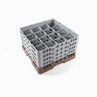 BROWN GLASS RACK - 16 COMPARTMENTS, 1 FULL AND 3 HALF DROP EXTENDERS