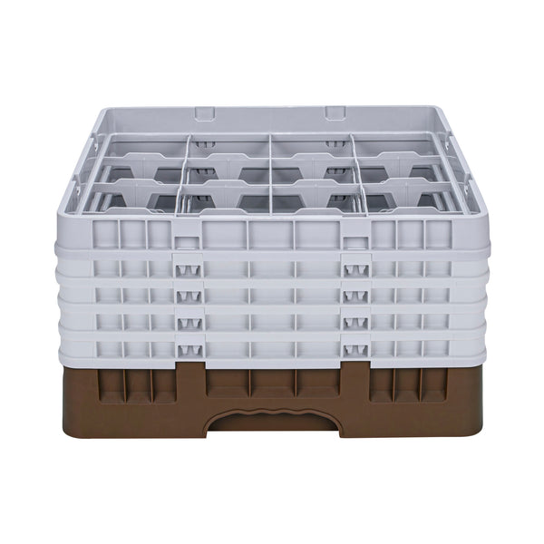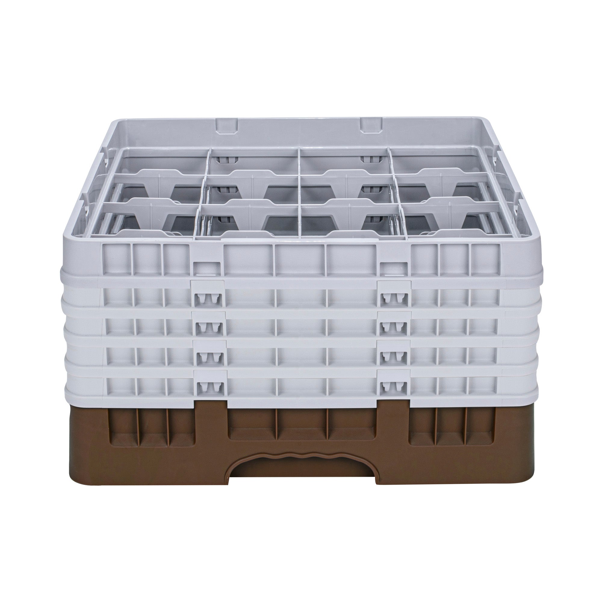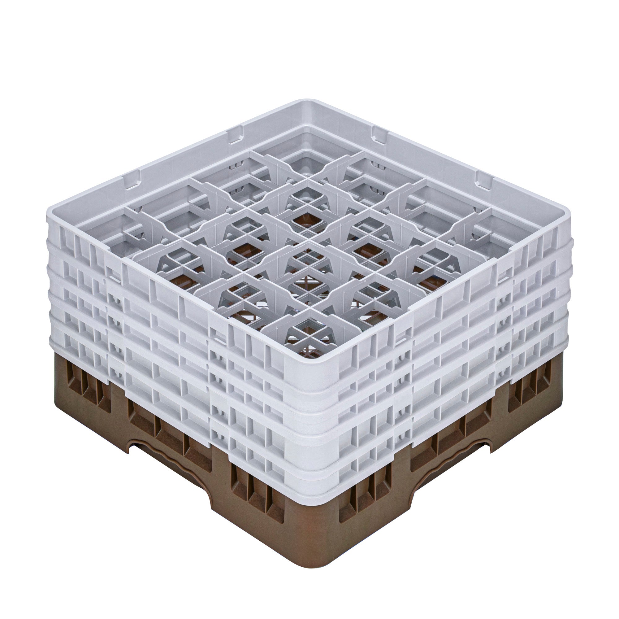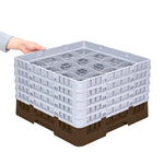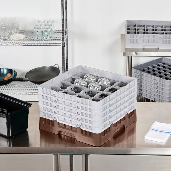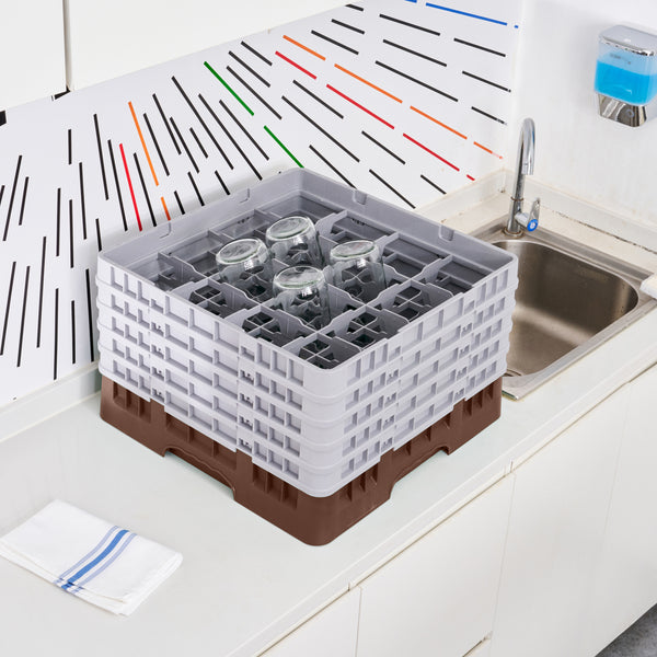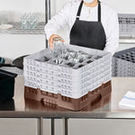 Clean Tek Professional Brown Glass Rack - 16 Compartments, 1 Full Drop and 4 Half Drop Extenders - 19 3/4
