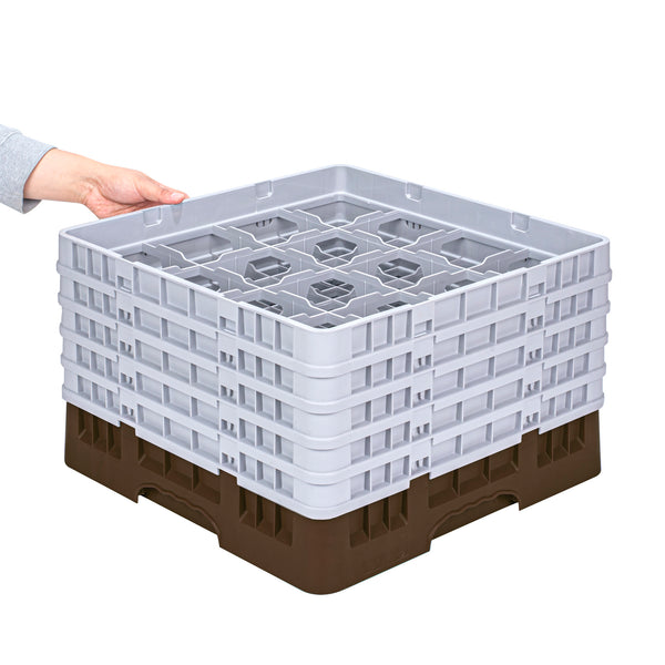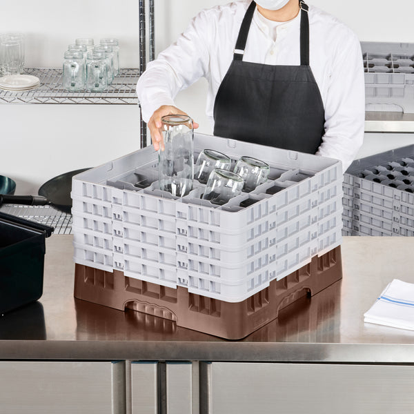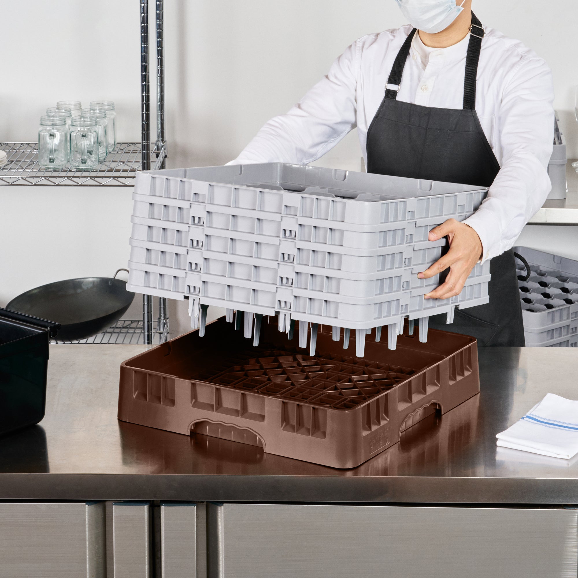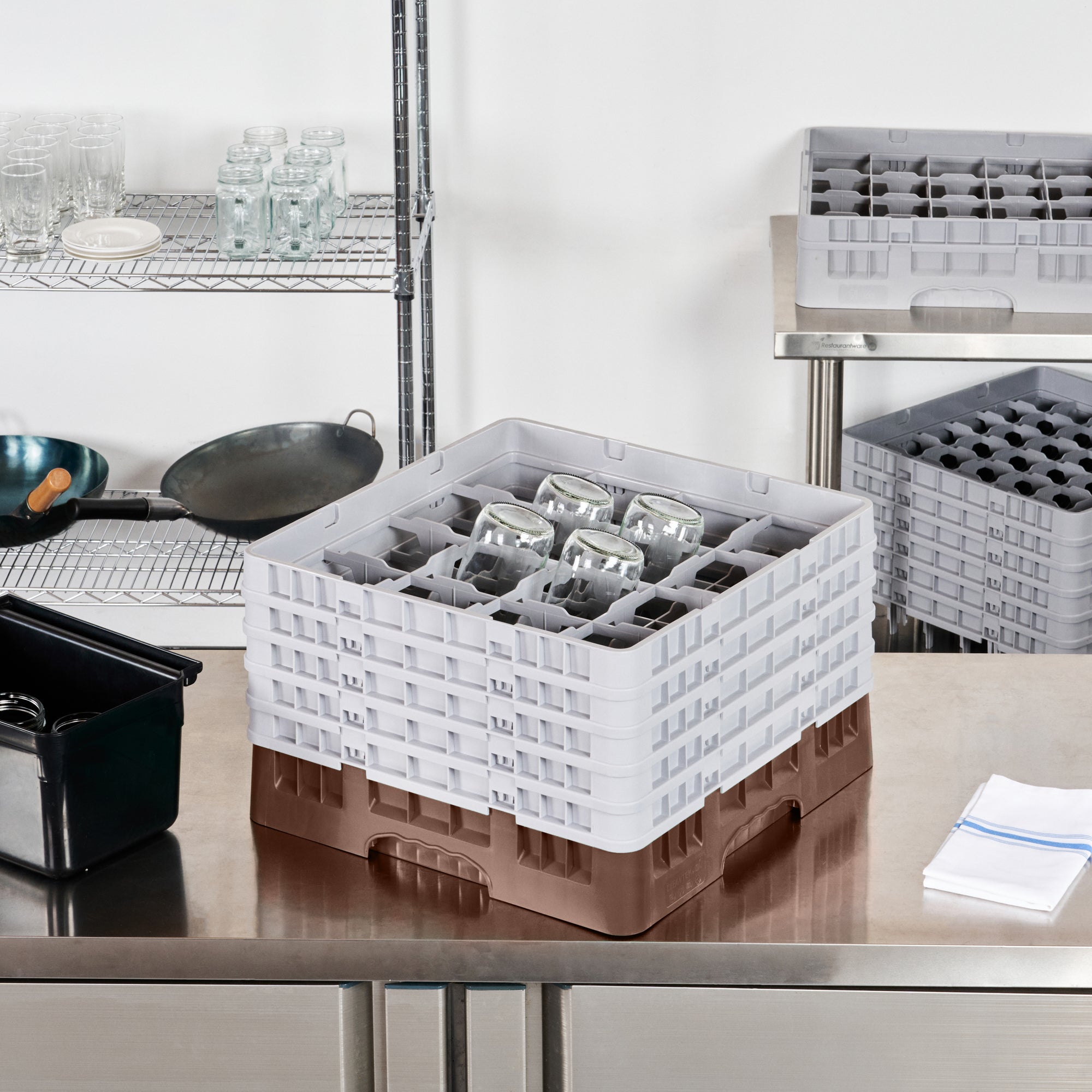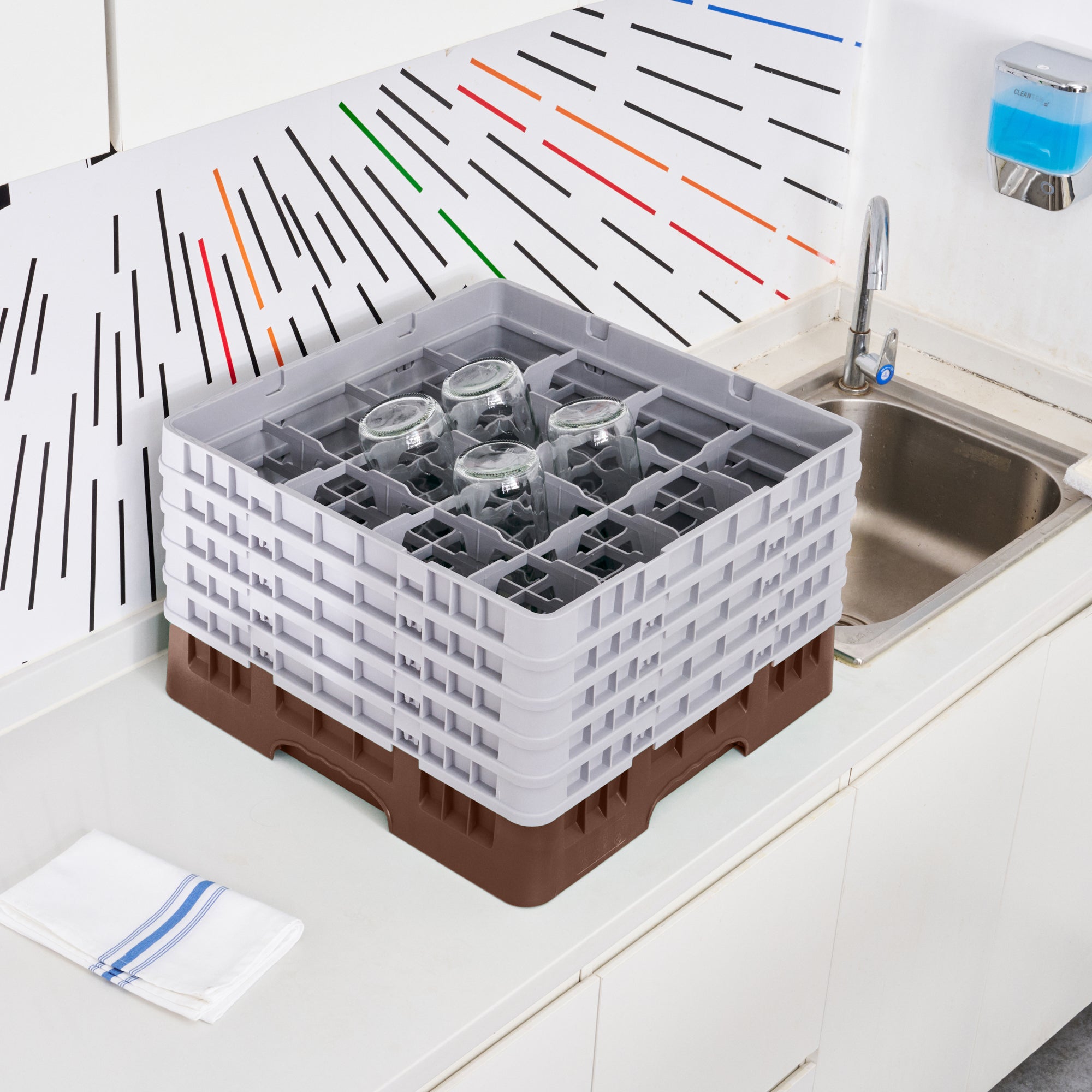 Maximize your glassware storage with our Clean Tek Professional Brown Glass Rack. This glass rack features 16 compartments, making it an ideal dishwasher rack for busy kitchens. Designed with a full drop extender and four half drop extenders, this compartment rack accommodates various glass sizes effortlessly. Crafted from durable PP, this barware organizer ensures long-lasting use. The easy-to-handle design of this commercial glass rack ensures smooth and efficient transport. Featuring open interior compartments, this glass rack provides optimal airflow and thorough cleaning. Solid external walls offer additional protection, ensuring your glassware remains intact during handling. Measuring 19.69 inches in length by 19.69 inches in width by 12.13 inches in height, this glassware storage solution fits seamlessly into most commercial dishwashers. Sold in a 1 count box.