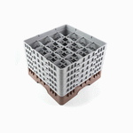 BROWN GLASS RACK - 16 COMPARTMENTS, 1 FULL AND 4 HALF DROP EXTENDERS