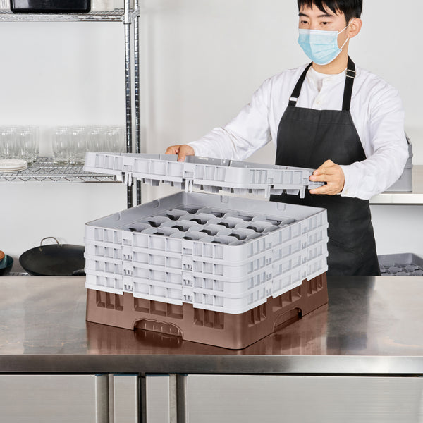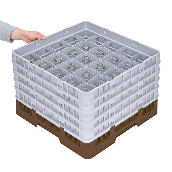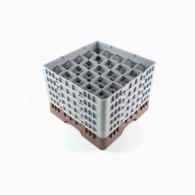BROWN GLASS RACK - 25 COMPARTMENTS, 1 FULL AND 4 HALF DROP EXTENDERS