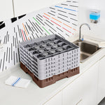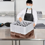 Effortlessly protect your wine glasses with our efficient glass rack. The Clean Tek Professional Easy-Clean Glass Rack for Wine Glasses offers open interior compartments, allowing for thorough and stress-free cleaning, ensuring your glass rack for wine glasses remains spotless. Crafted from durable plastic, its solid external walls provide robust protection for delicate glassware, even in the busiest of kitchens, making it an ideal dishwasher glass rack. Measuring 19.69 inches in both length and width with a height of 12.13 inches, this rack is designed to be easy to handle, enabling swift service during peak dining hours, which is essential for catering glassware transport. Its interstackable design maximizes space and efficiency, perfect for high-volume foodservice establishments. Invest in this glass rack to streamline your operations and protect your investment in glassware. Each order includes 1 Clean Tek Professional Easy-Clean Glass Rack for Wine Glasses.