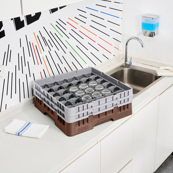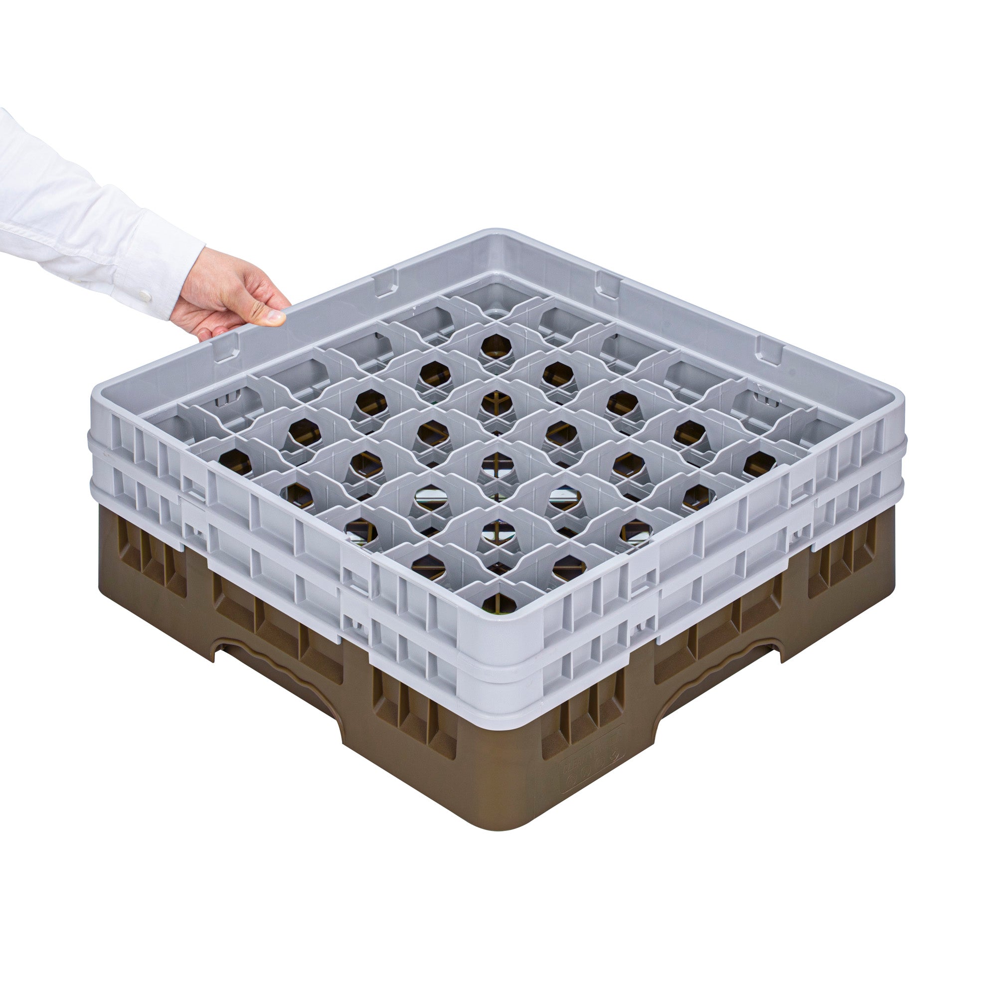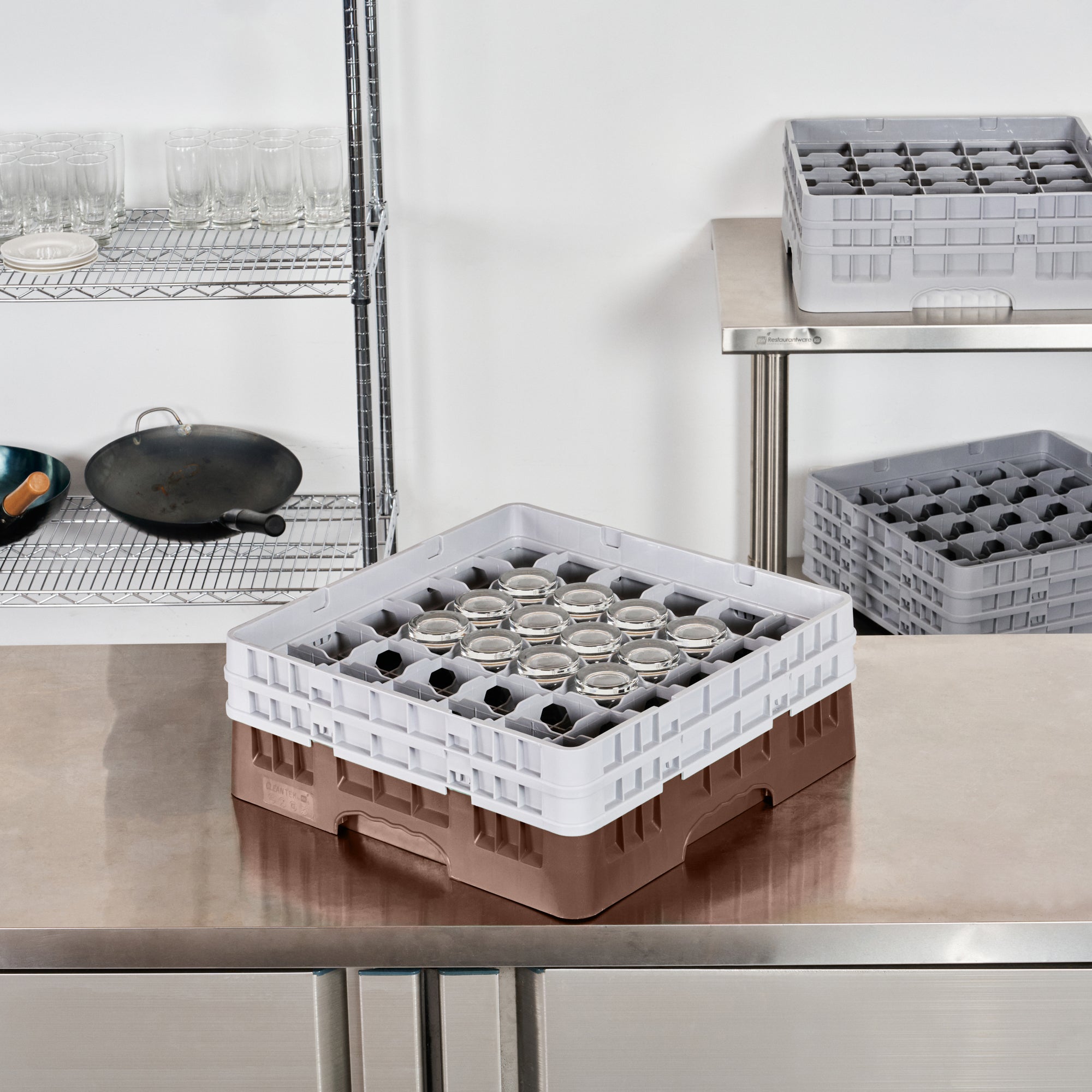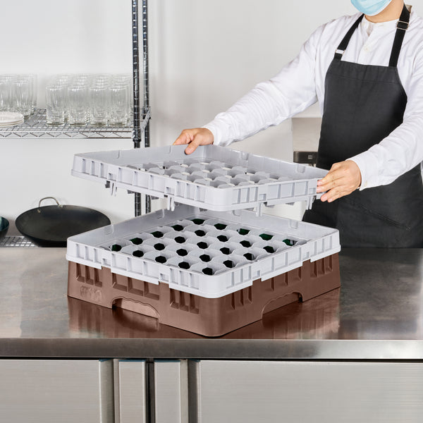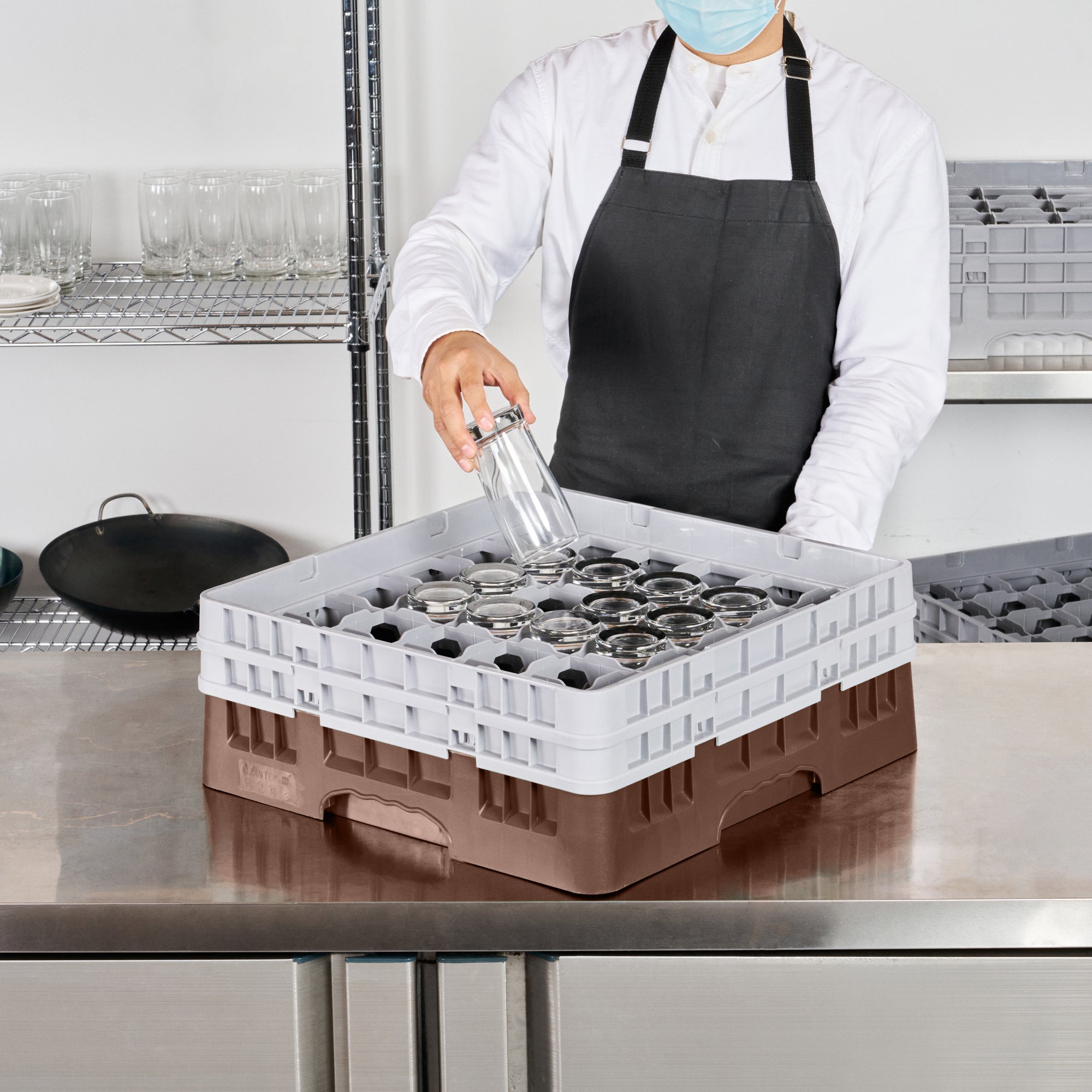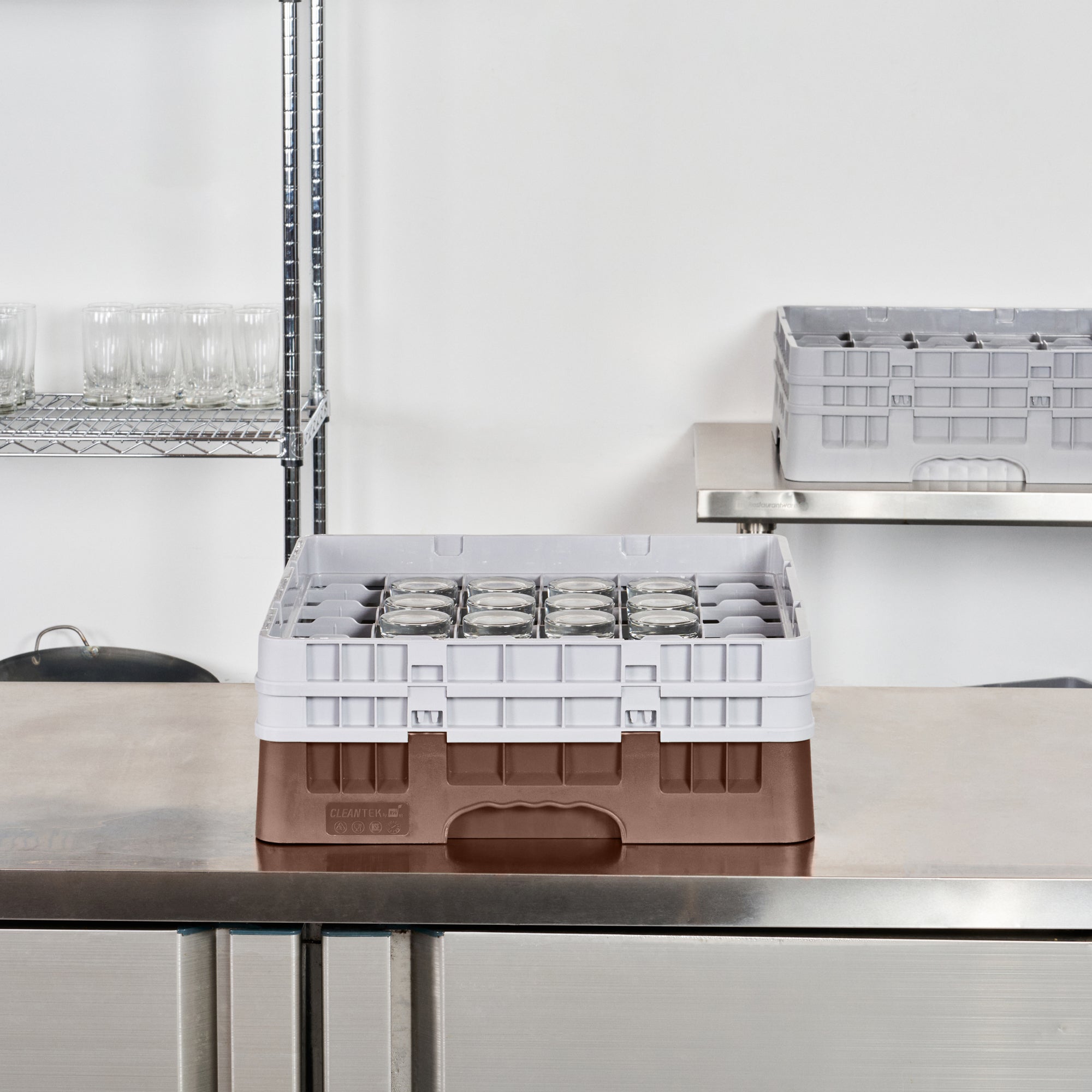 Efficiently organize your glassware with our Clean Tek Professional Brown Glass Rack. Featuring 36 compartments, this commercial glass rack provides ample space for glassware storage. Ideal for busy kitchens, this dishwasher rack includes a full drop extender to accommodate taller glasses. Designed with a half drop extender, this compartment rack is versatile for various glass sizes. The durable PP construction of this barware organizer ensures long-lasting use in any foodservice environment. For easy handling, this commercial glass rack has an ergonomic design. The open interior compartments of this glassware storage rack allow for quick drying and efficient cleaning. Enclosed by solid external walls, this dishwasher rack offers secure and stable storage. Measuring 19.69 inches in length by 19.69 inches in width by 7.24 inches in height, this barware organizer fits easily into commercial dishwashers. Sold in a 1 count box.