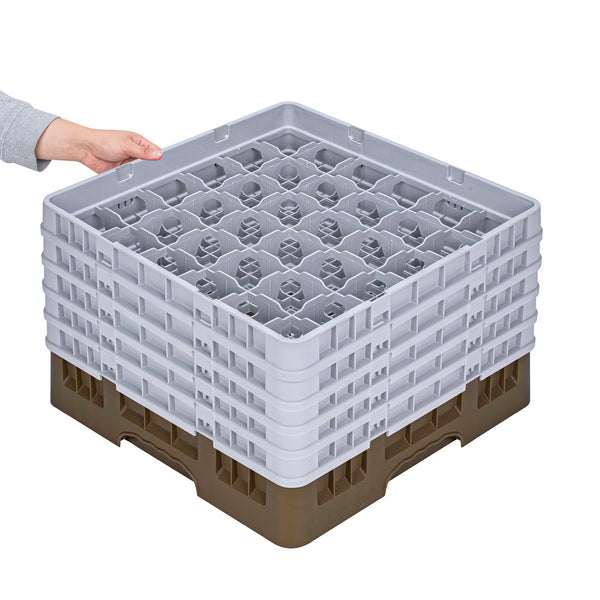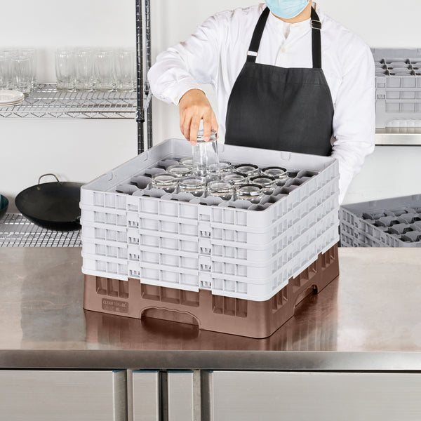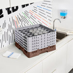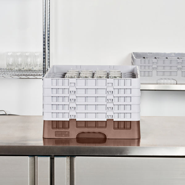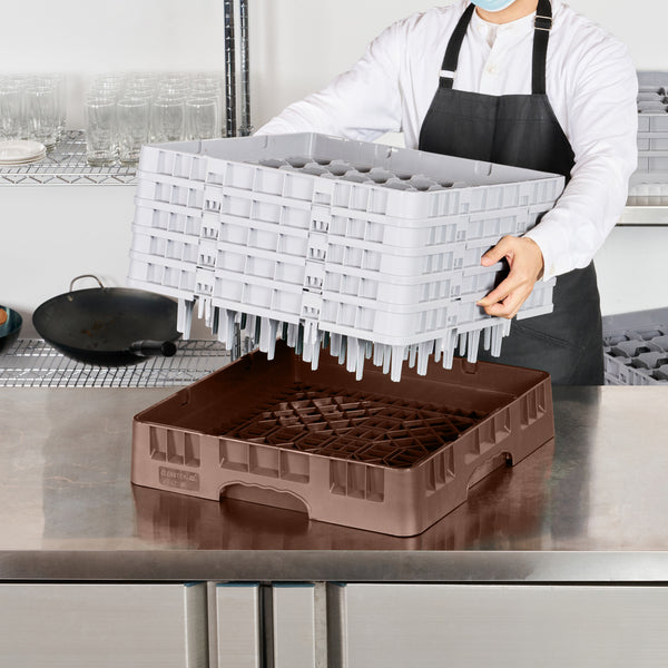 Enhance your glassware storage solutions with our Clean Tek Professional Brown Glass Rack, designed specifically to optimize organization and efficiency in busy foodservice settings. Featuring 36 compartments, this dishwasher rack ensures that each piece of glassware is securely held in place during cleaning cycles. The inclusion of 1 full drop extender and 4 half drop extenders in this compartment rack allows for flexible customization to accommodate various glass sizes and shapes. Crafted from durable PP material, this commercial glass rack is built to withstand the rigors of constant use while maintaining its integrity. An easy-to-handle design makes this barware organizer a convenient choice for quick transport and setup. Open interior compartments in this rack promote efficient water and air circulation, facilitating faster drying times and reducing cleaning spots. Solid external walls offer added protection, ensuring that your valuable glassware remains safe from accidental impacts. Measuring 19.69 inches in length by 19.69 inches in width by 12.13 inches in height, this commercial glass rack optimally fits into standard dishwasher dimensions, maximizing space without compromising on capacity. Sold in a 1 count box.