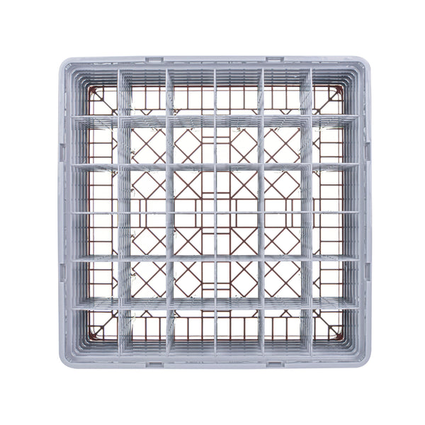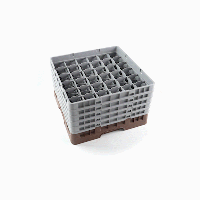 BROWN GLASS RACK - 36 COMPARTMENTS, 1 FULL AND 4 HALF DROP EXTENDERS