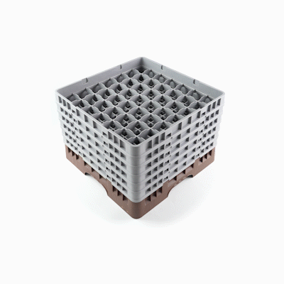BROWN GLASS RACK - 49 COMPARTMENTS, 1 FULL AND 5 HALF DROP EXTENDERS